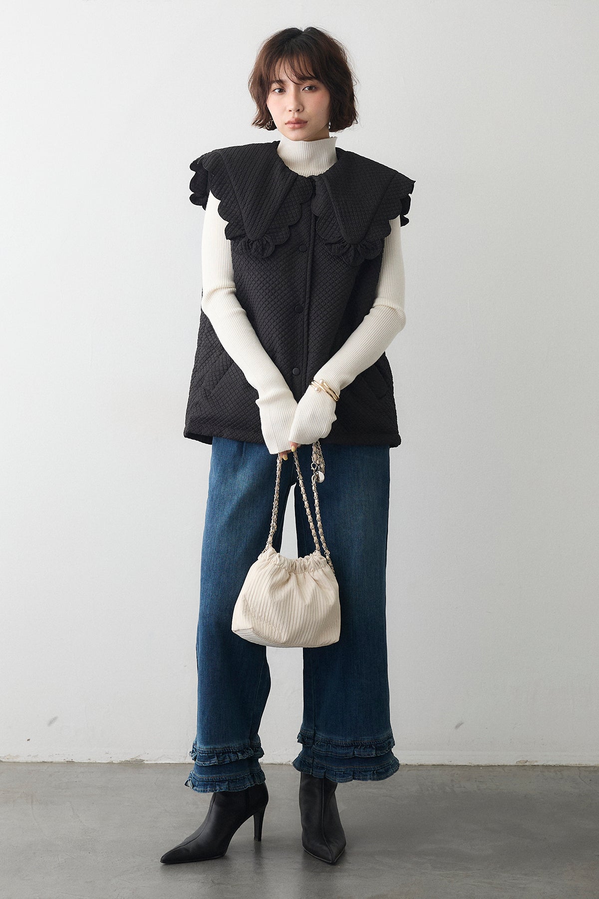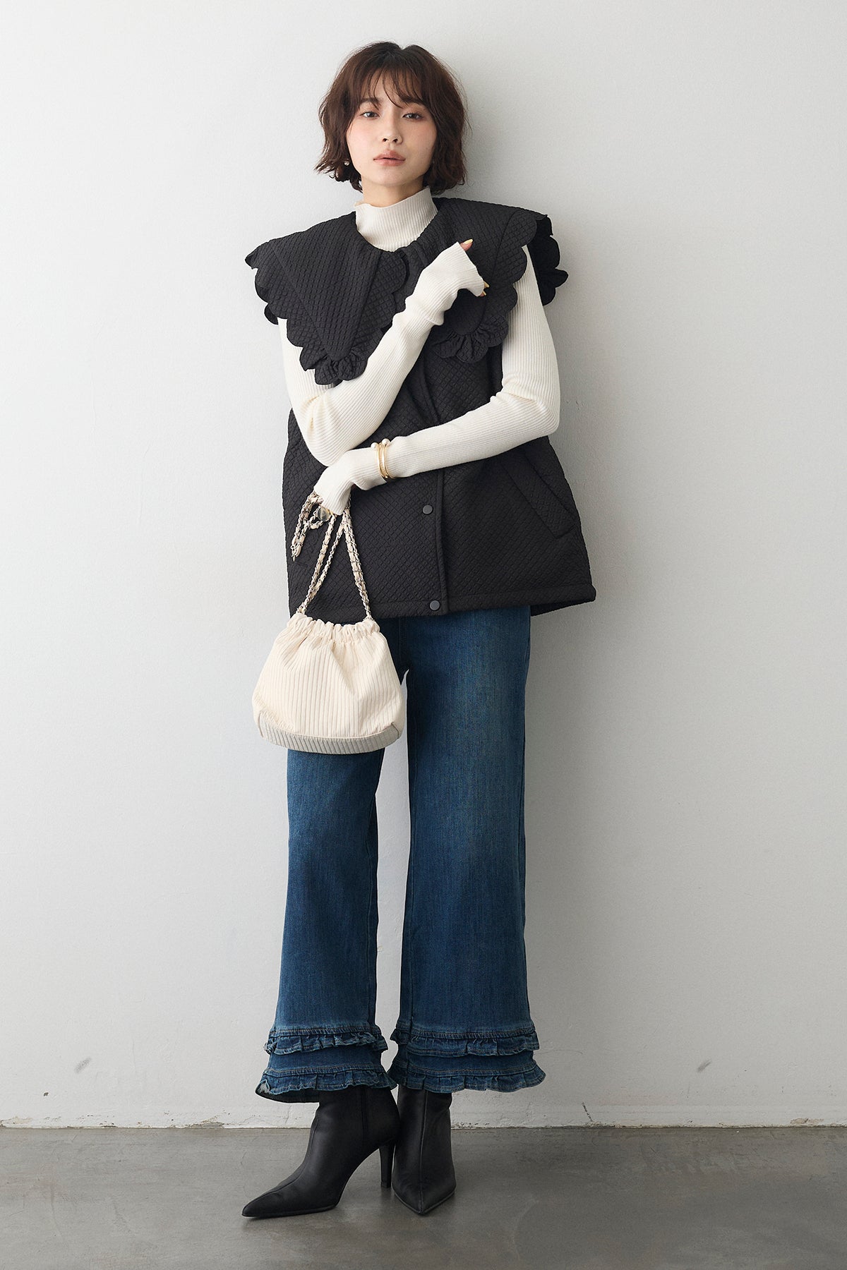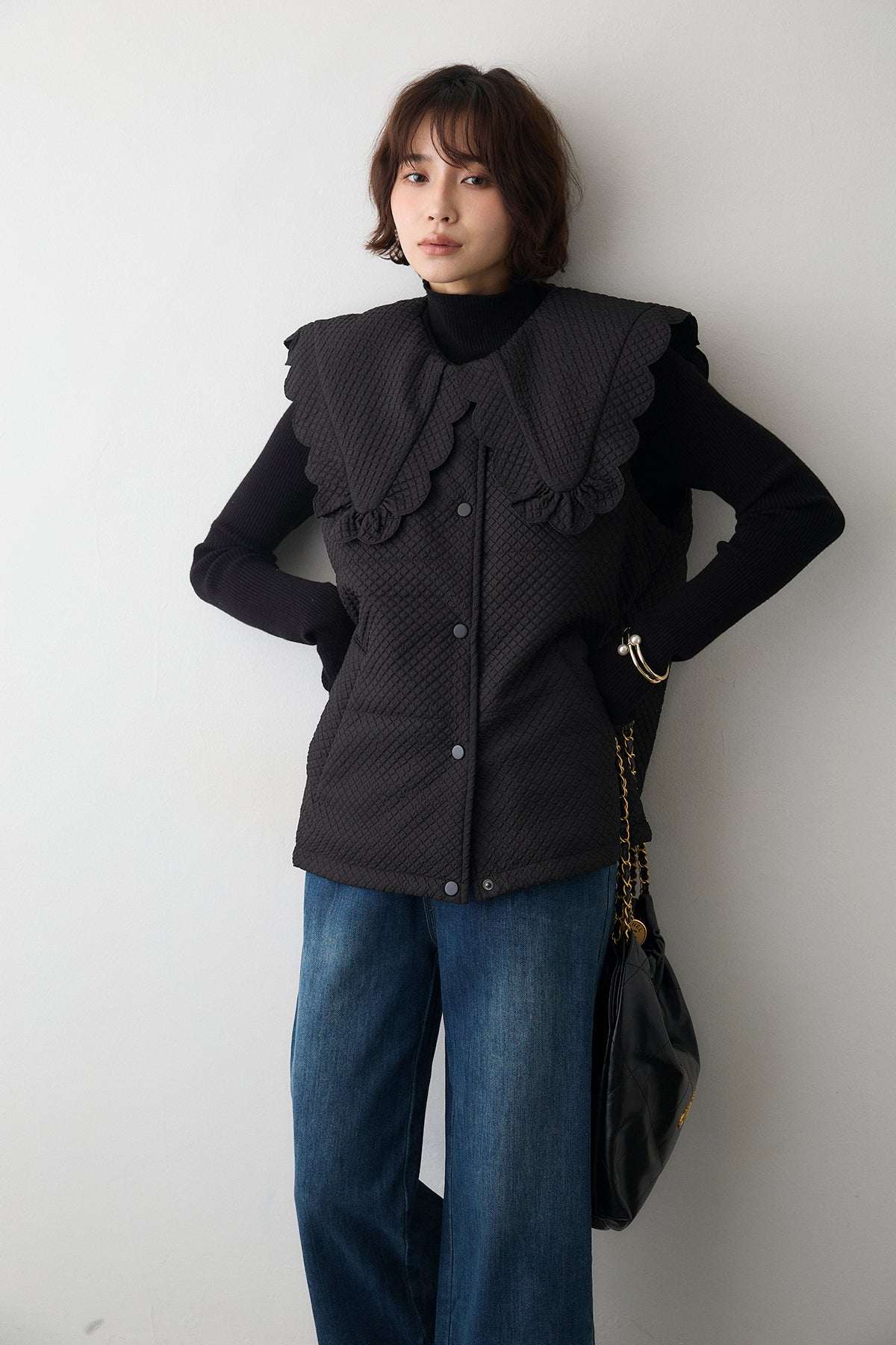 [予約/SET]ベーシックフィンガーホールリブニット+スカラップBIGカラーベスト(2set)