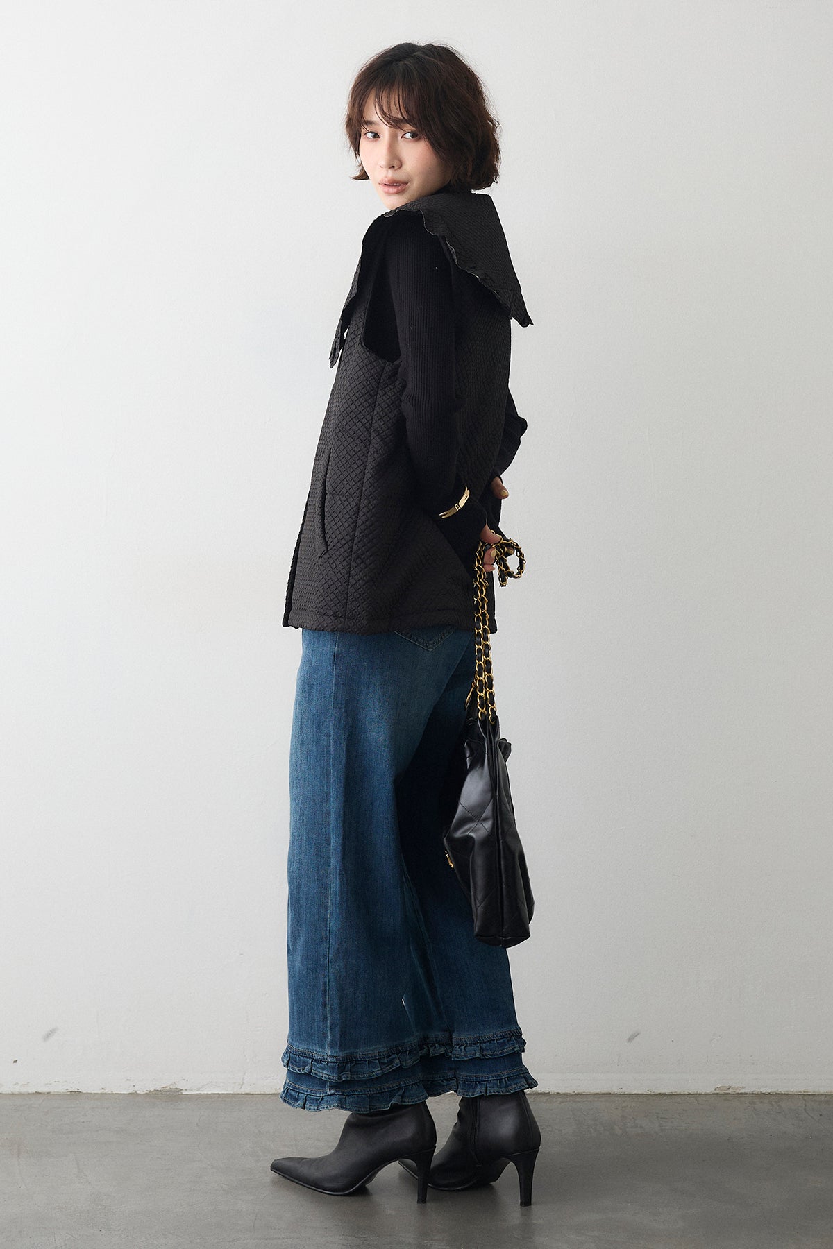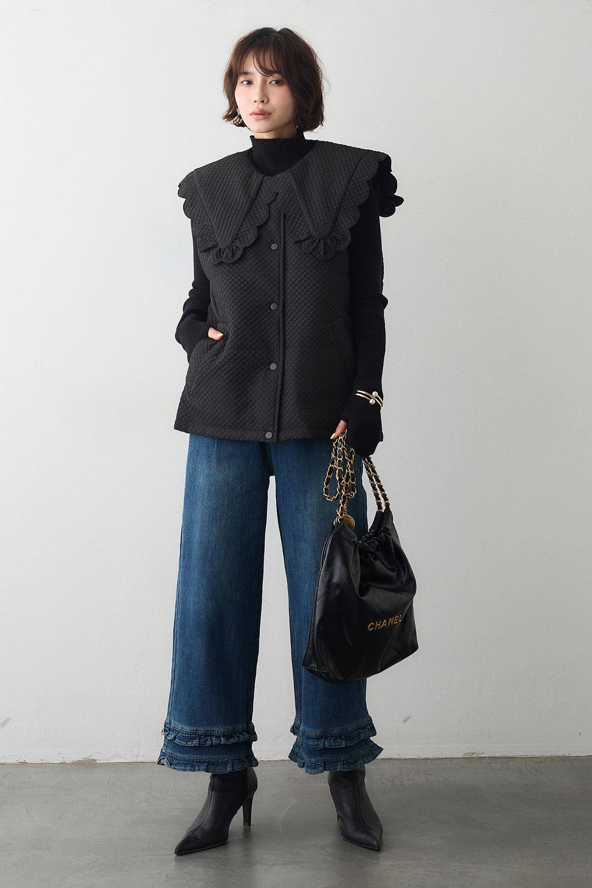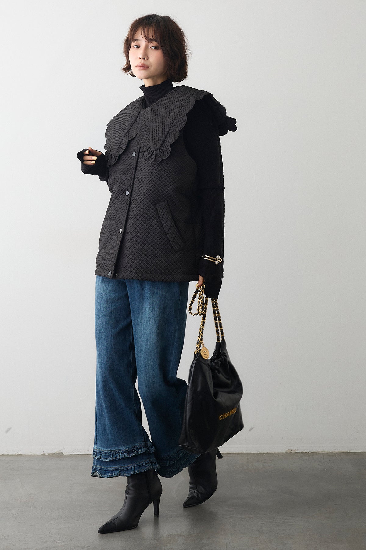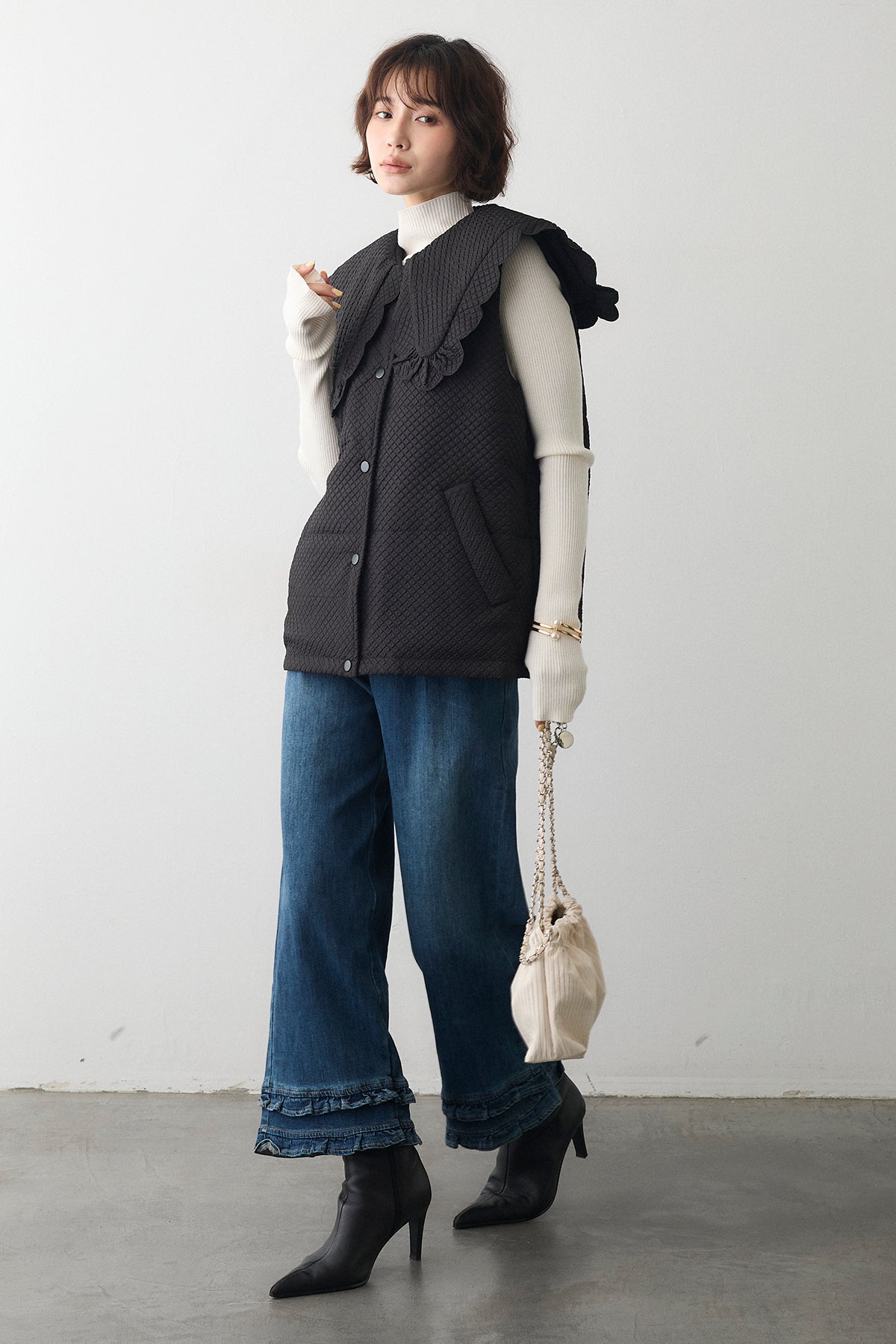 [予約/SET]ベーシックフィンガーホールリブニット+スカラップBIGカラーベスト(2set)