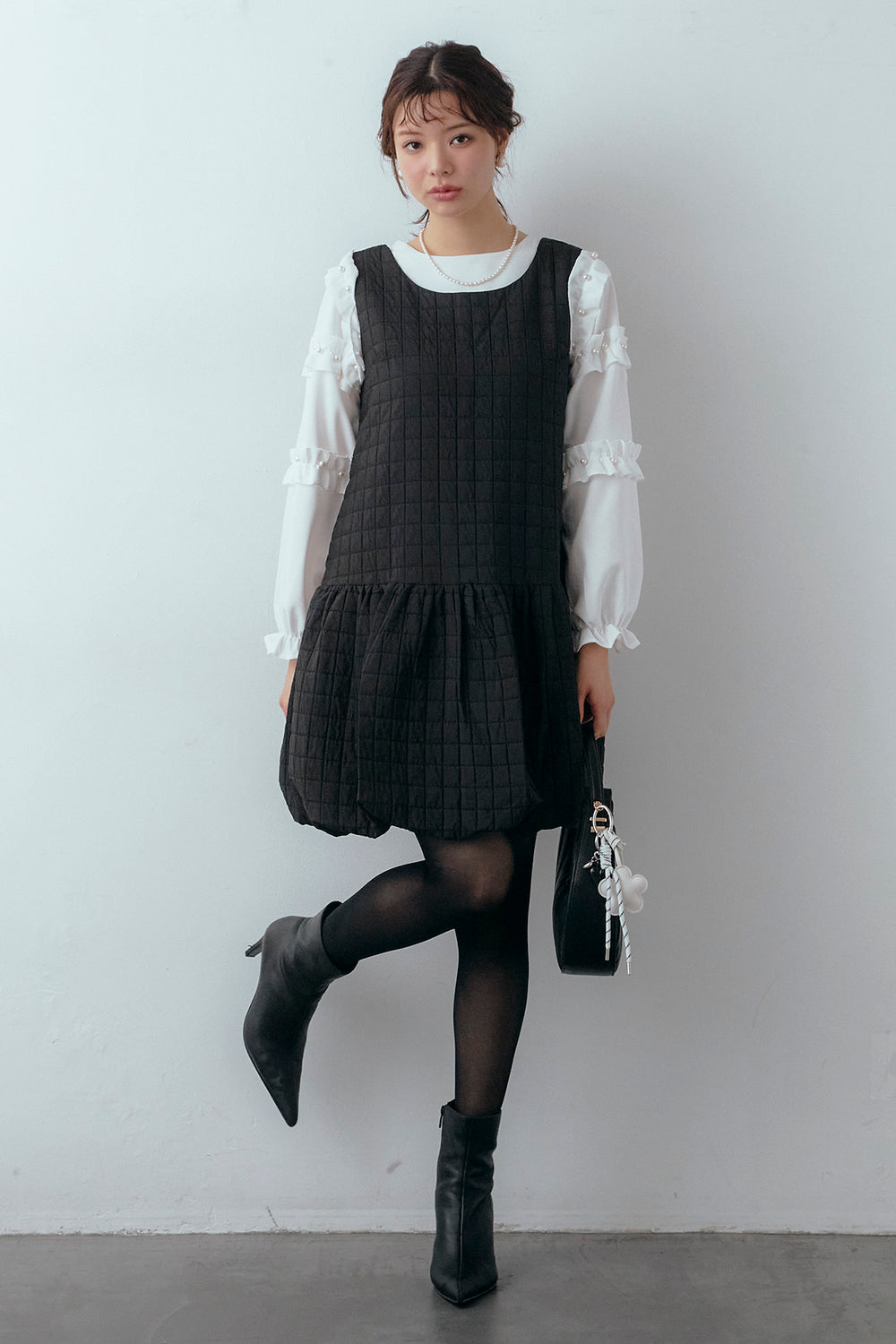 [予約/SET]フリルパールコンシャスブラウス+キルティングデザインミニジャンスカ(2set)