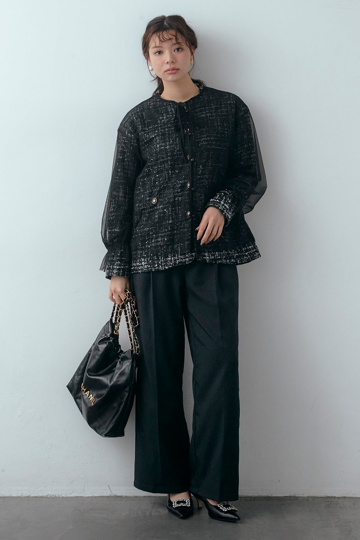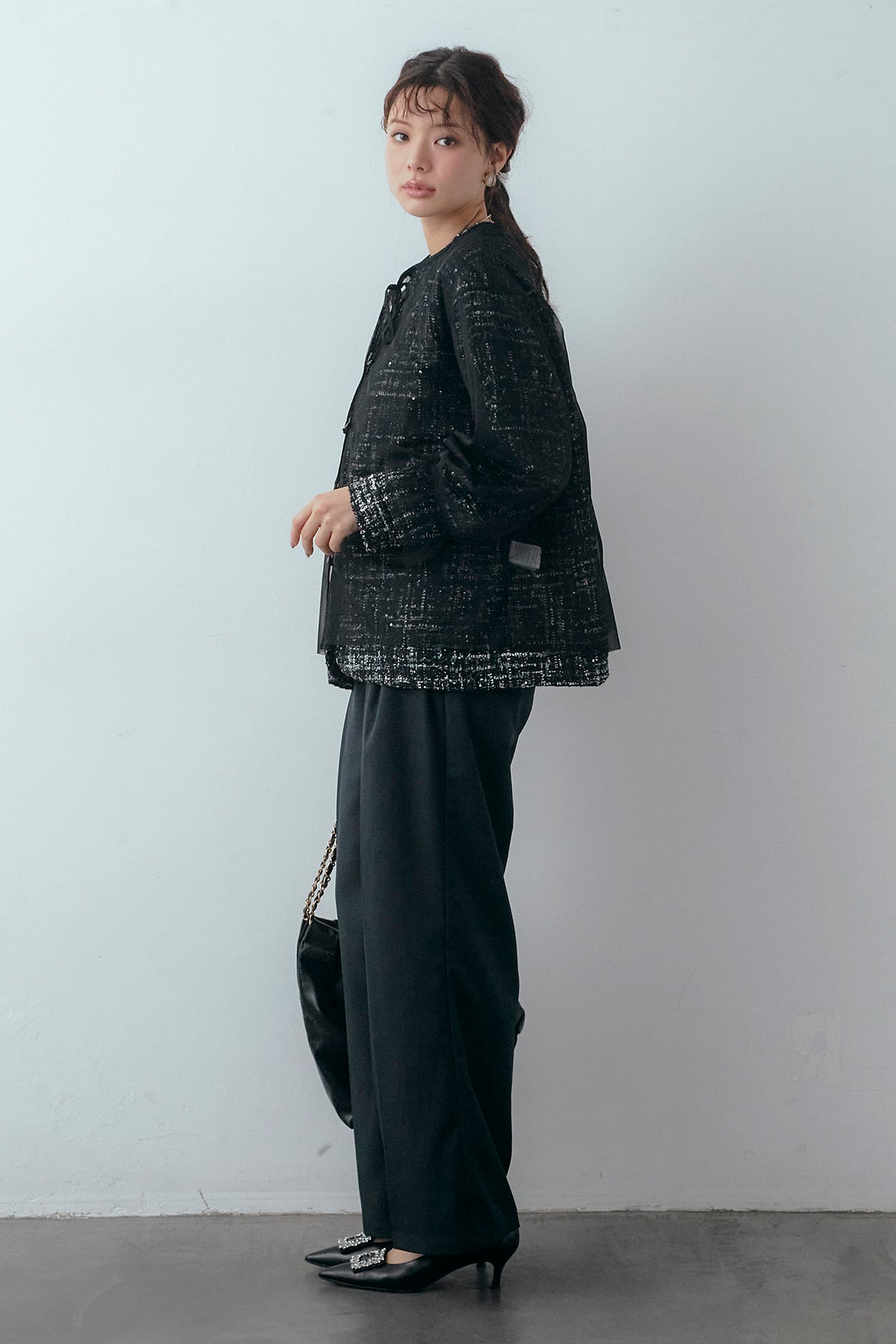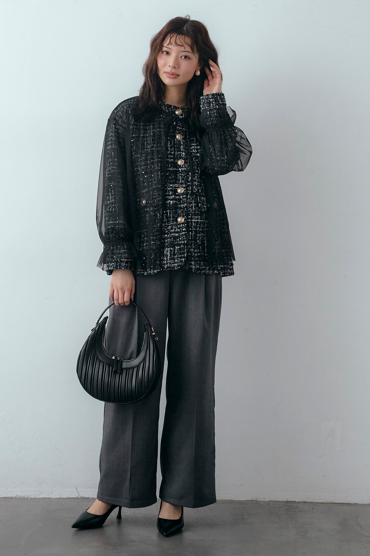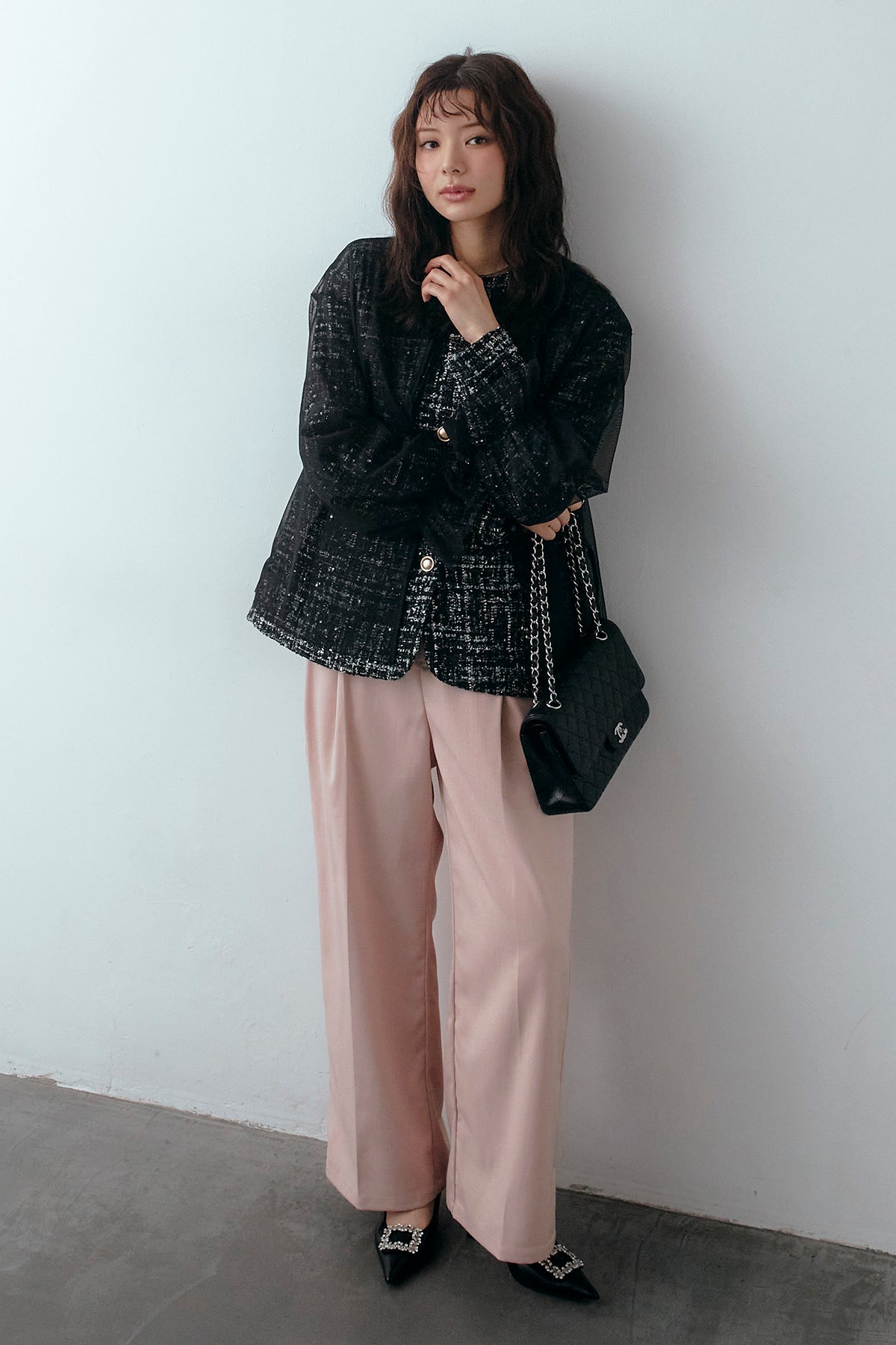 [予約/SET]2wayチュールレイヤードツイードジャケット+スプリングカラータックストレートパンツ(2set)