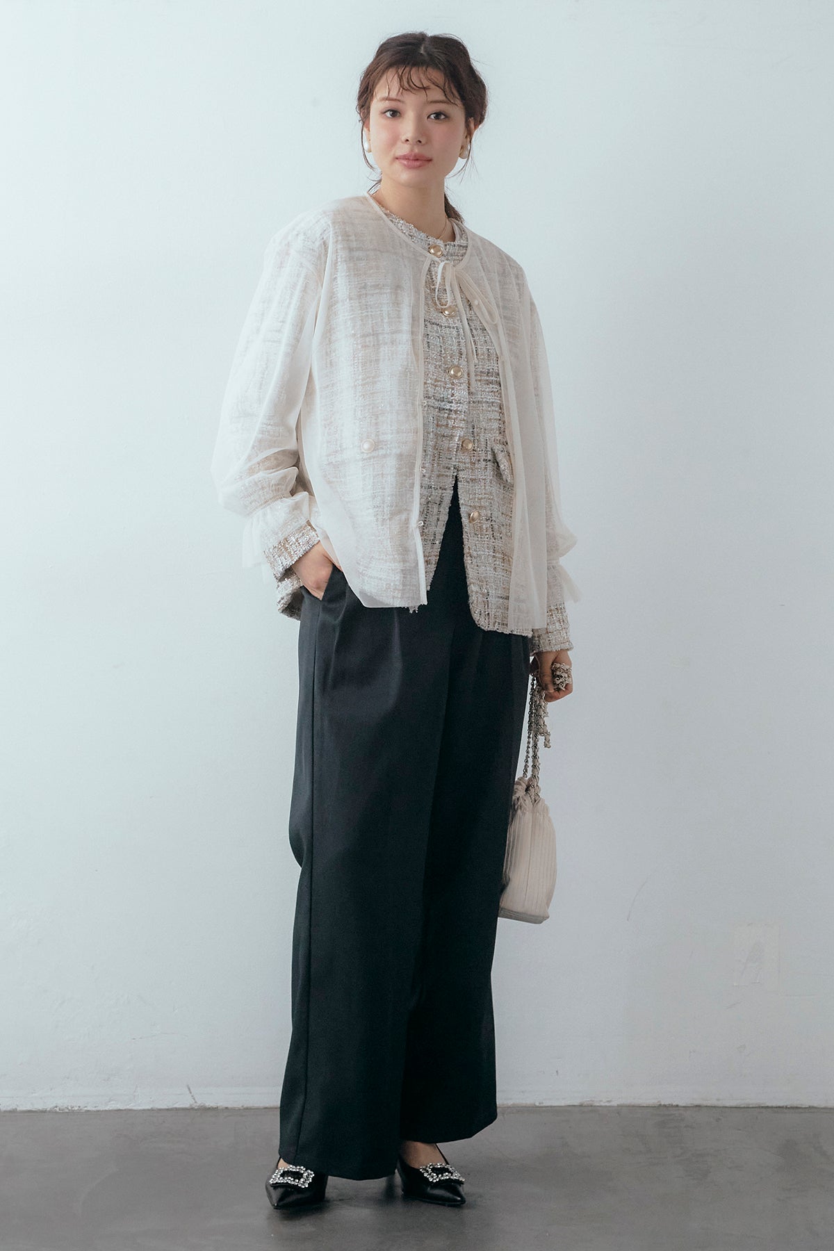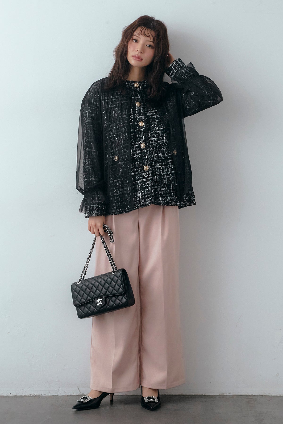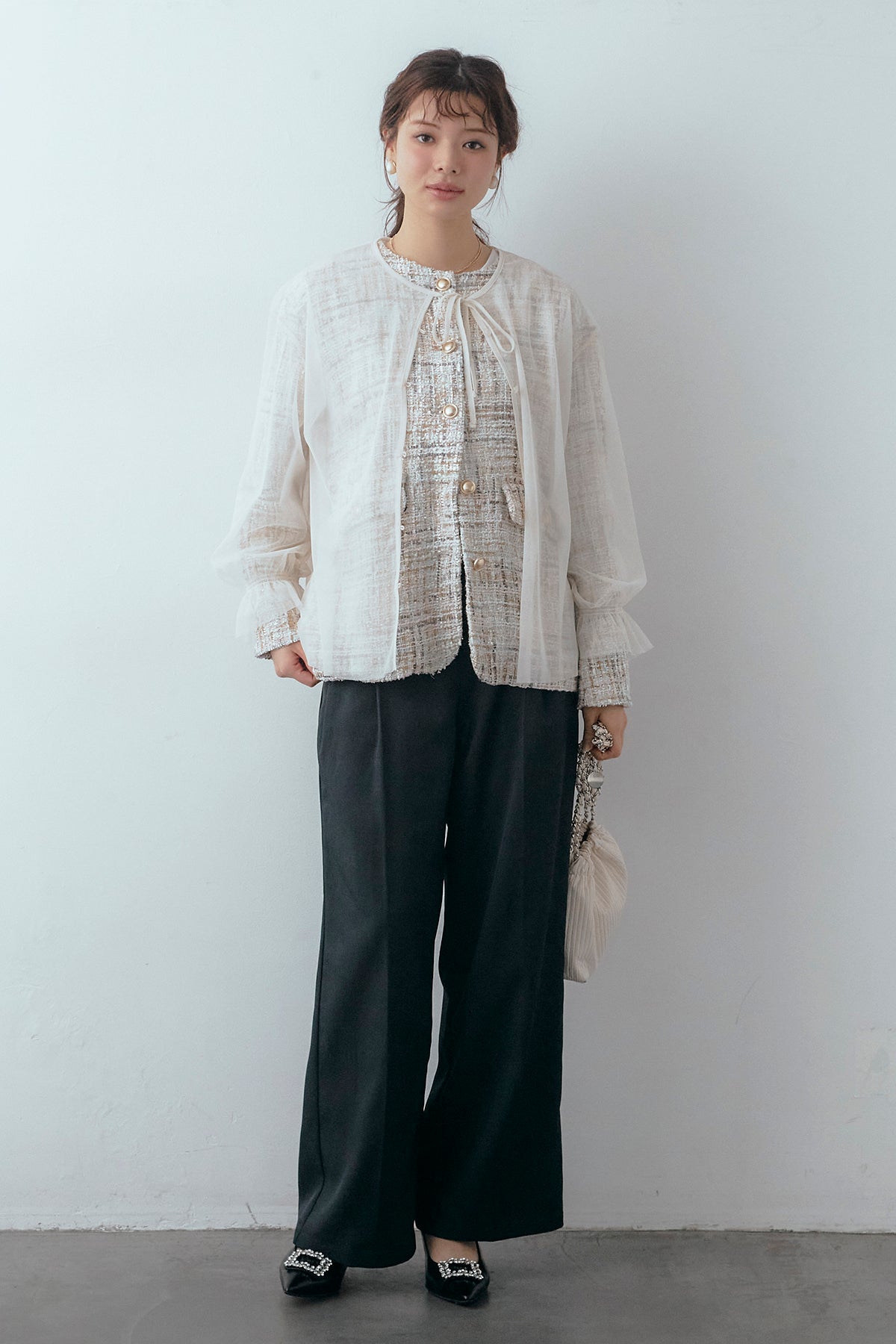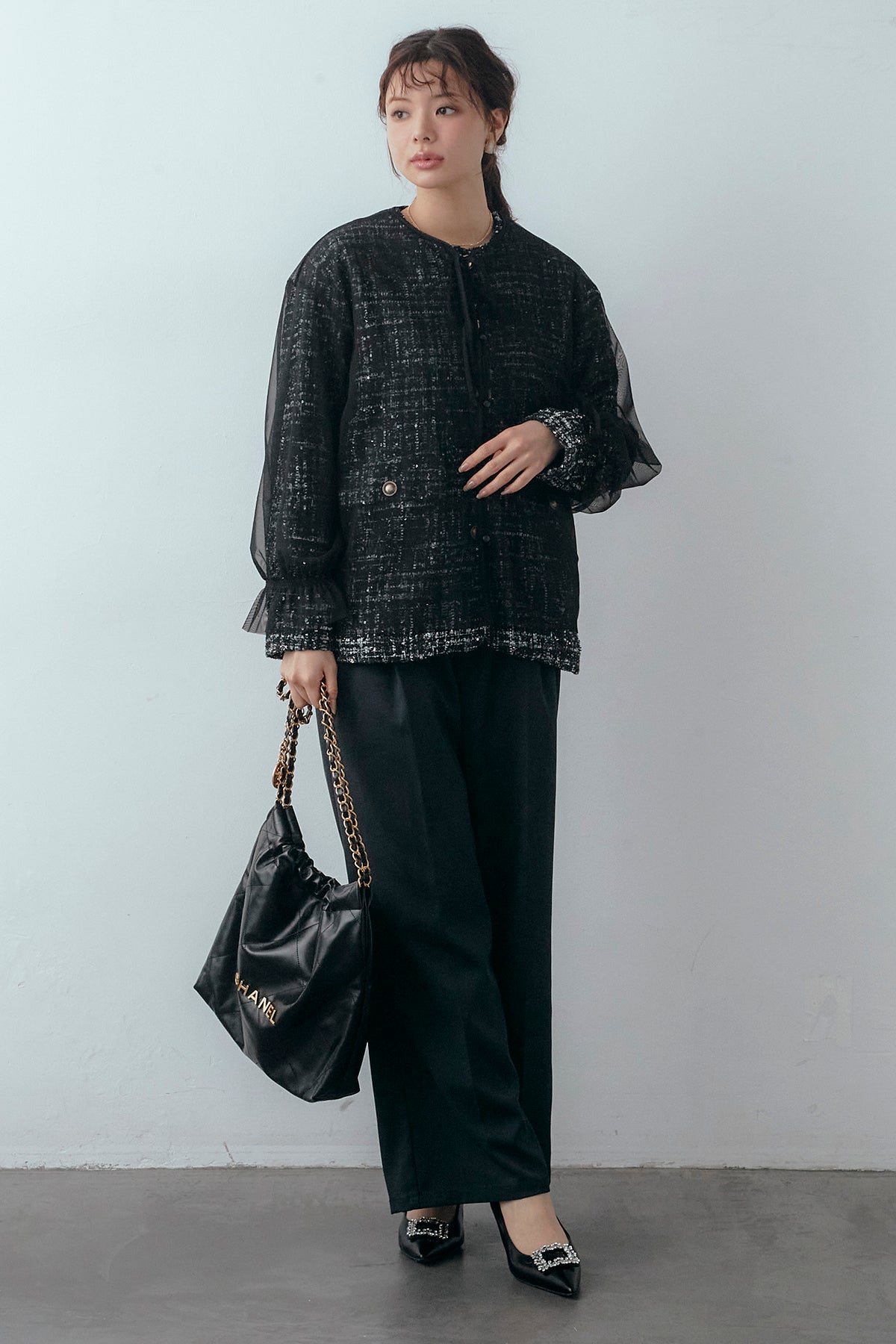 [予約/SET]2wayチュールレイヤードツイードジャケット+スプリングカラータックストレートパンツ(2set)