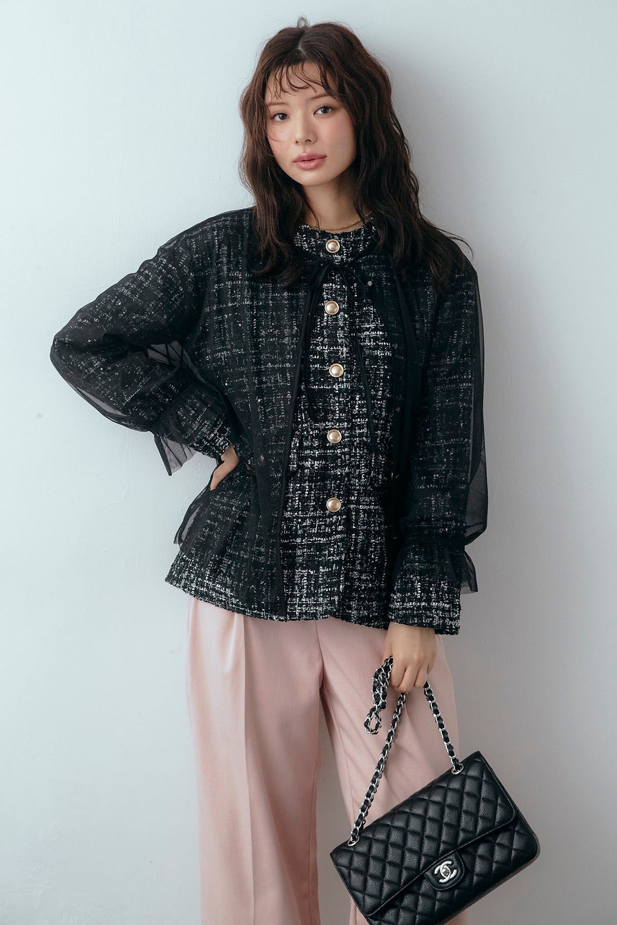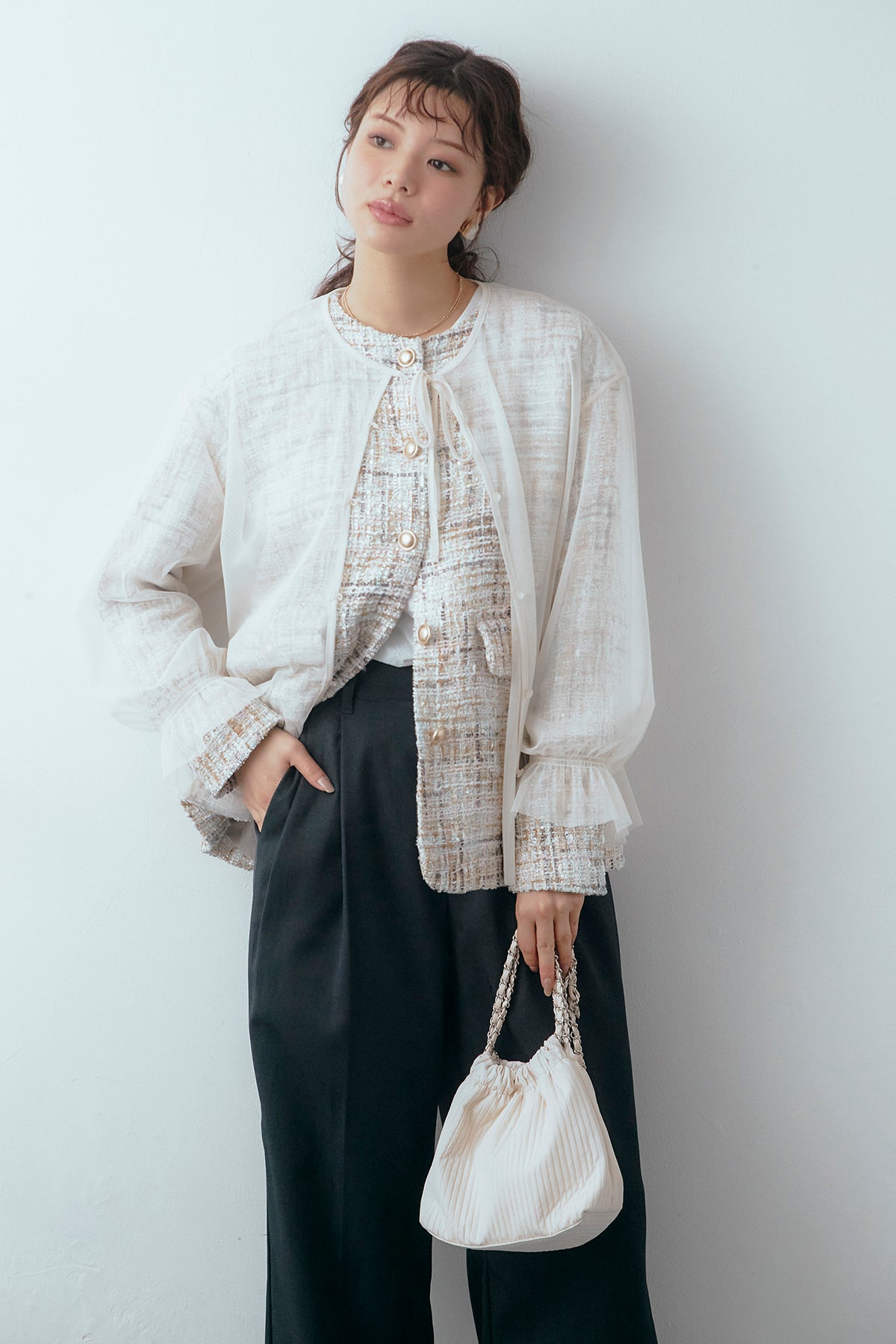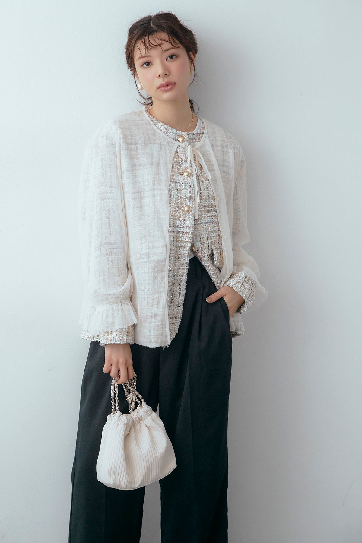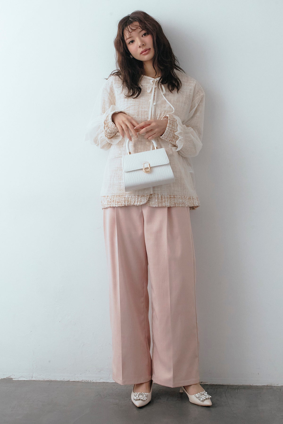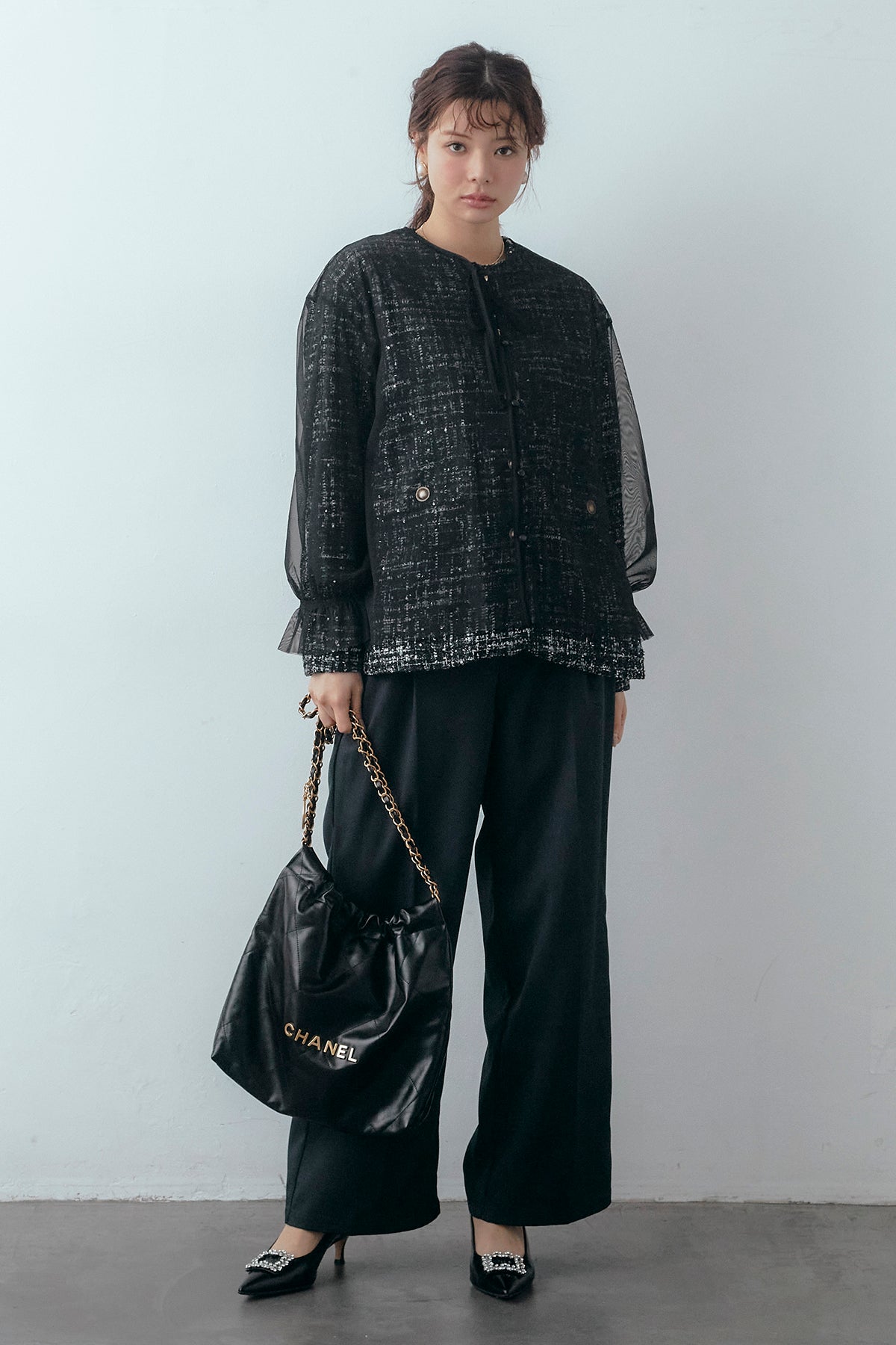 [予約/SET]2wayチュールレイヤードツイードジャケット+スプリングカラータックストレートパンツ(2set)