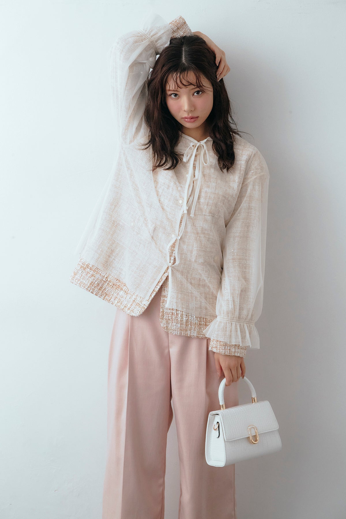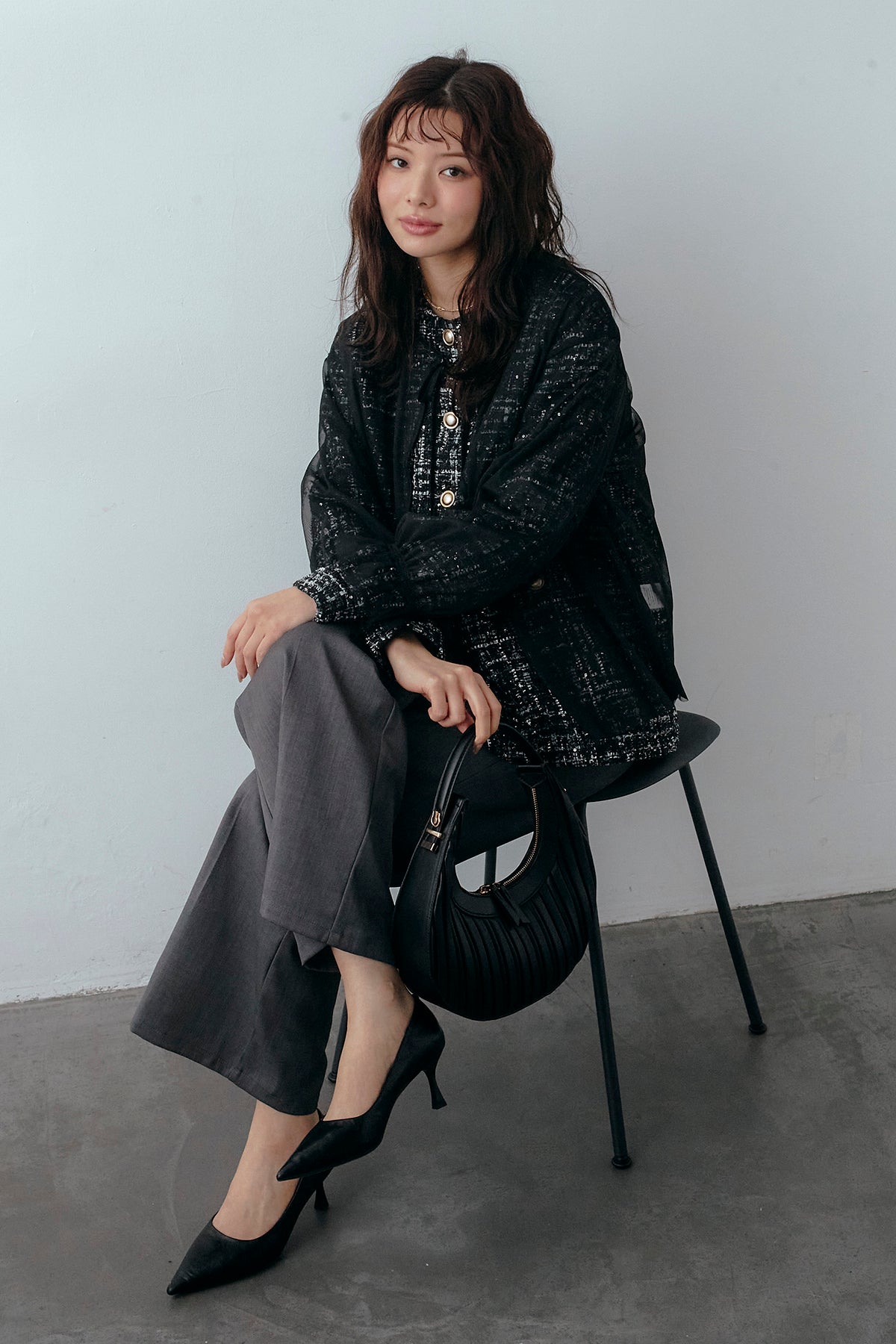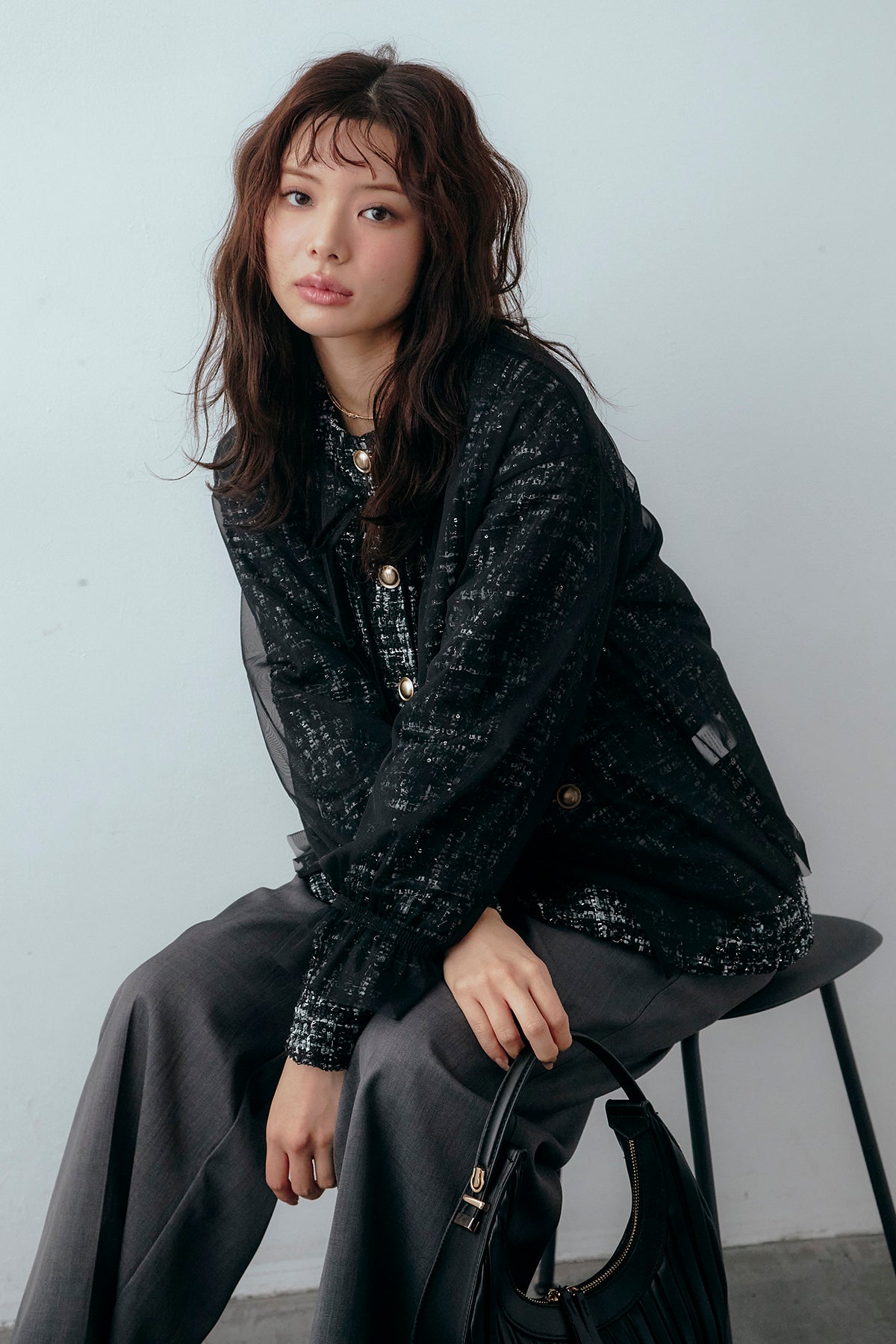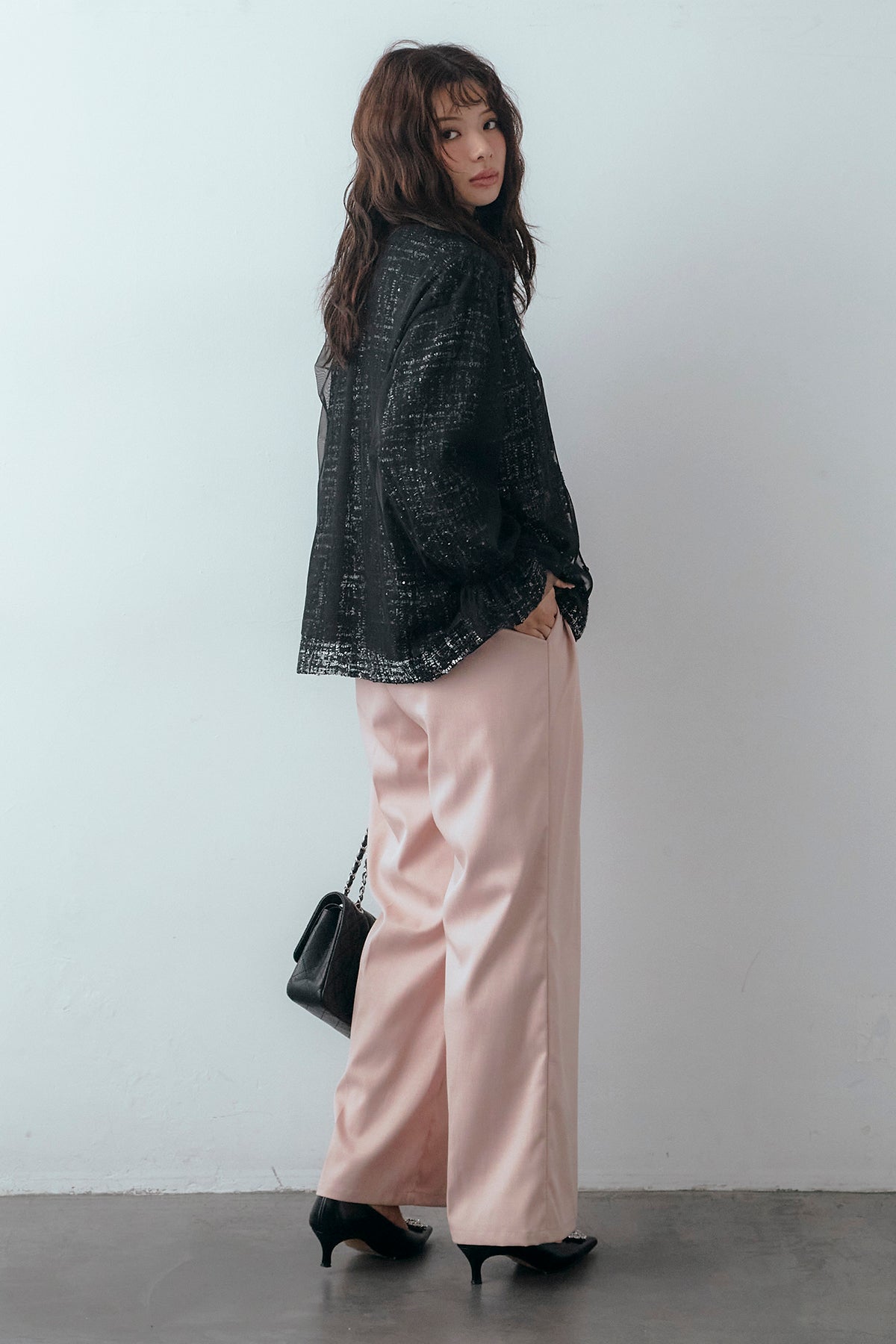 [予約/SET]2wayチュールレイヤードツイードジャケット+スプリングカラータックストレートパンツ(2set)