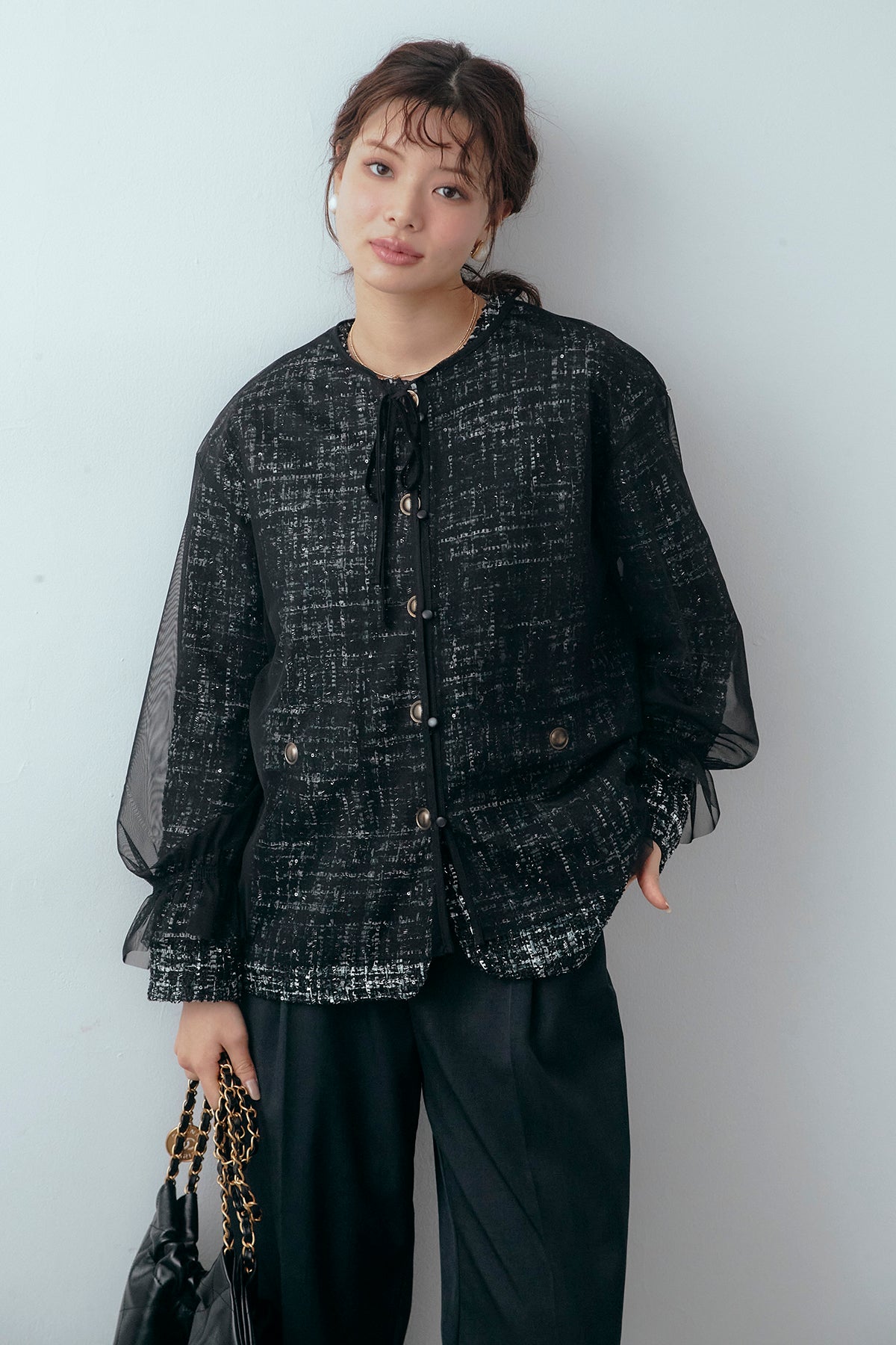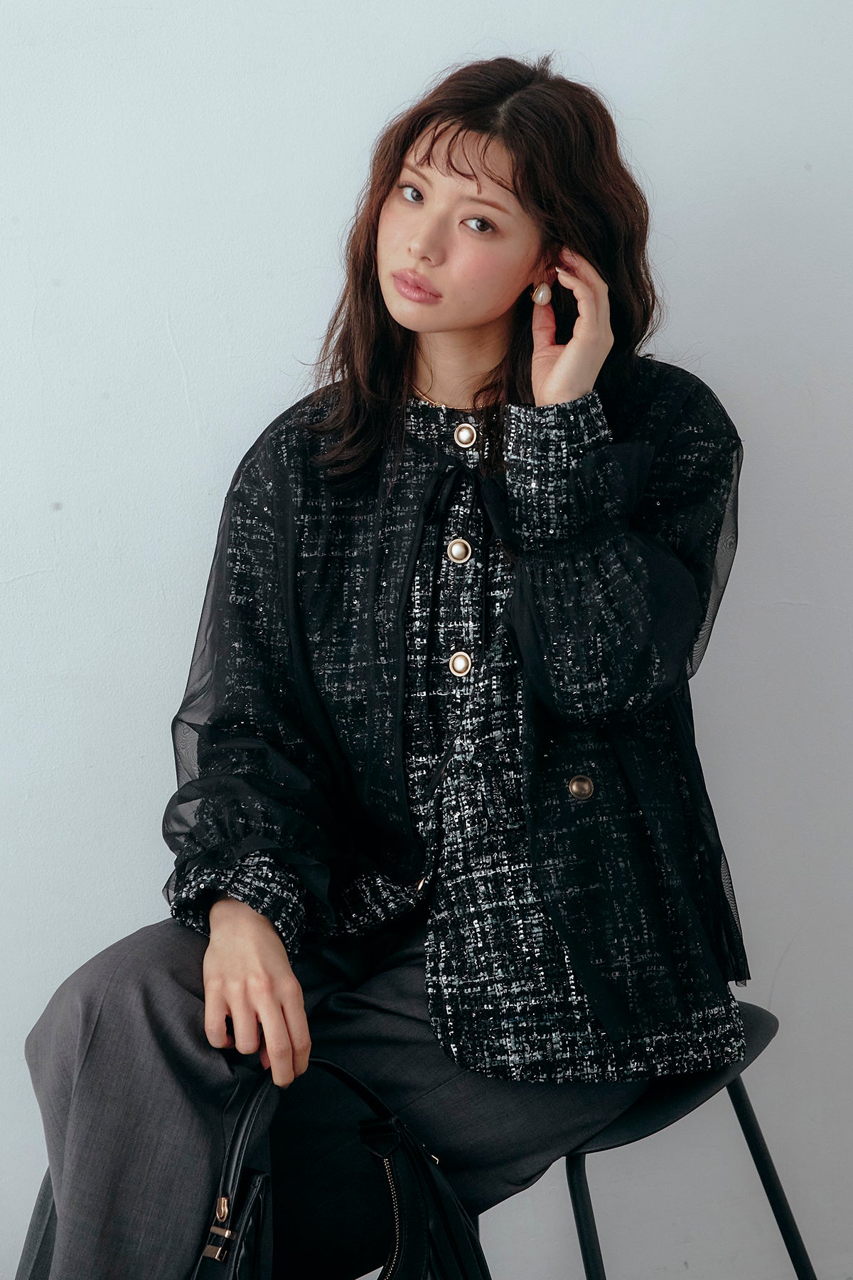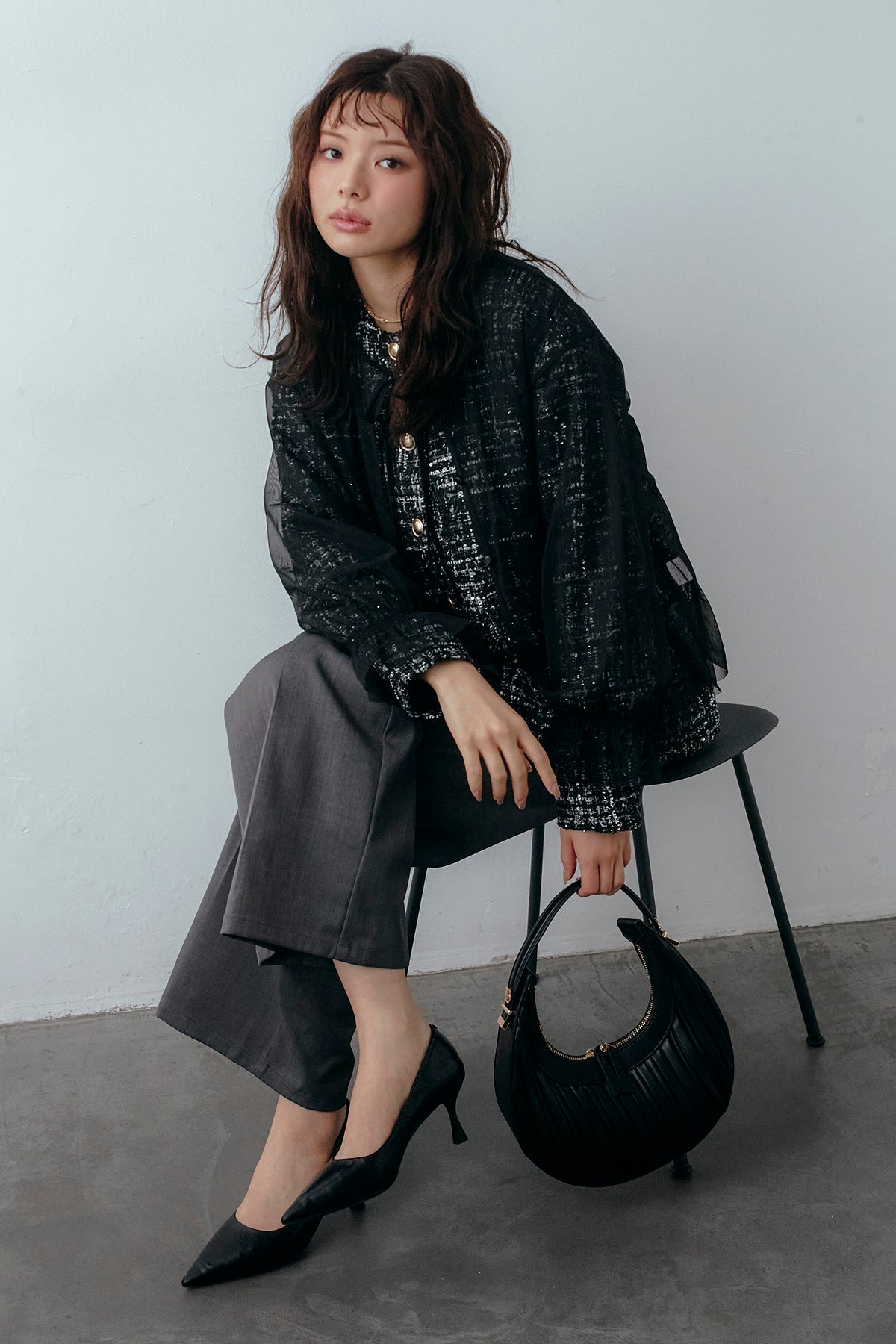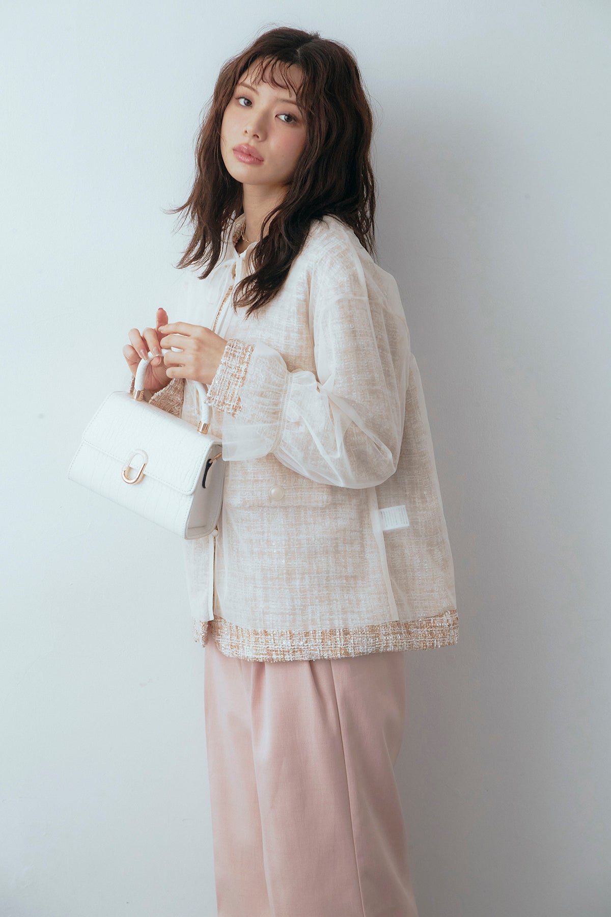 [予約/SET]2wayチュールレイヤードツイードジャケット+スプリングカラータックストレートパンツ(2set)