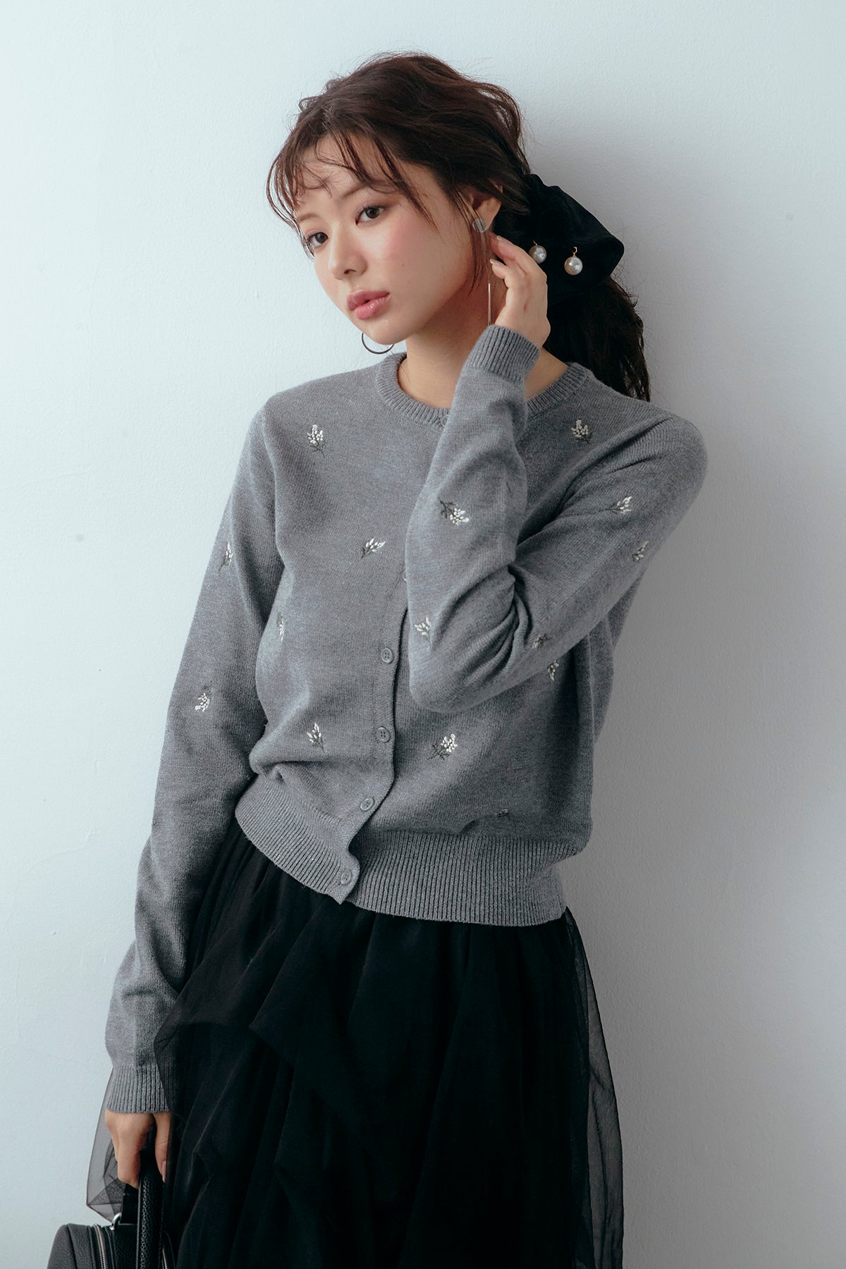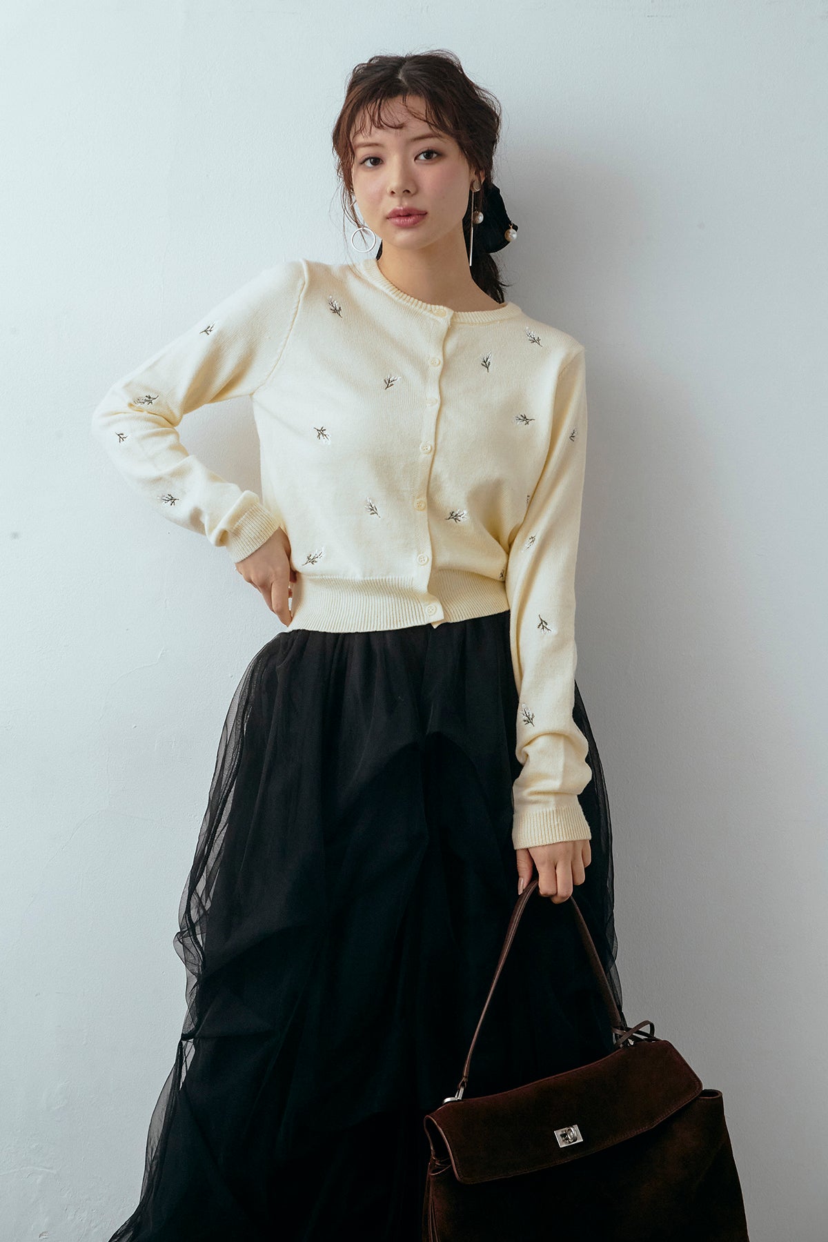 ◆ ニュアンスフラワー刺繍クロップドニットカーデ