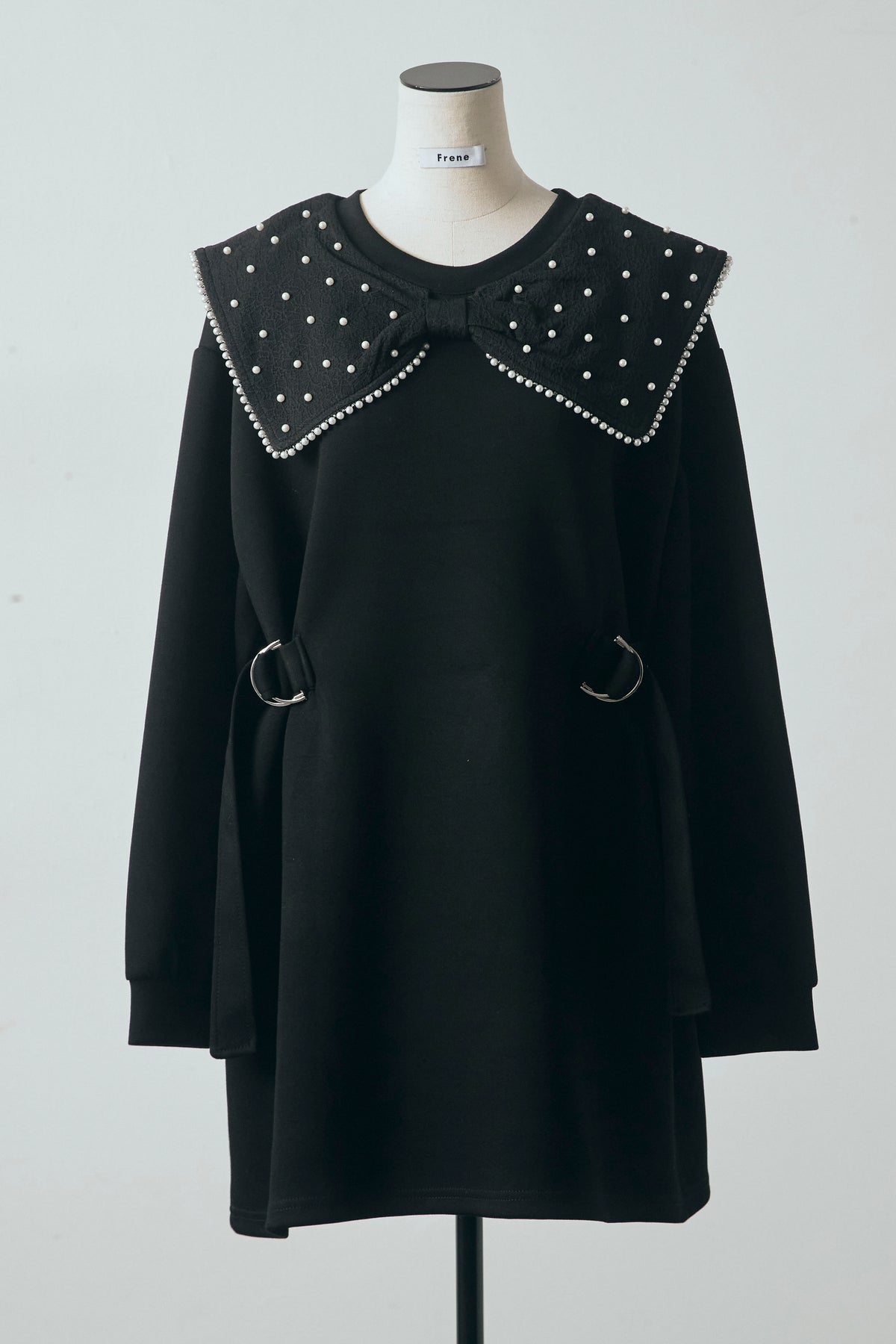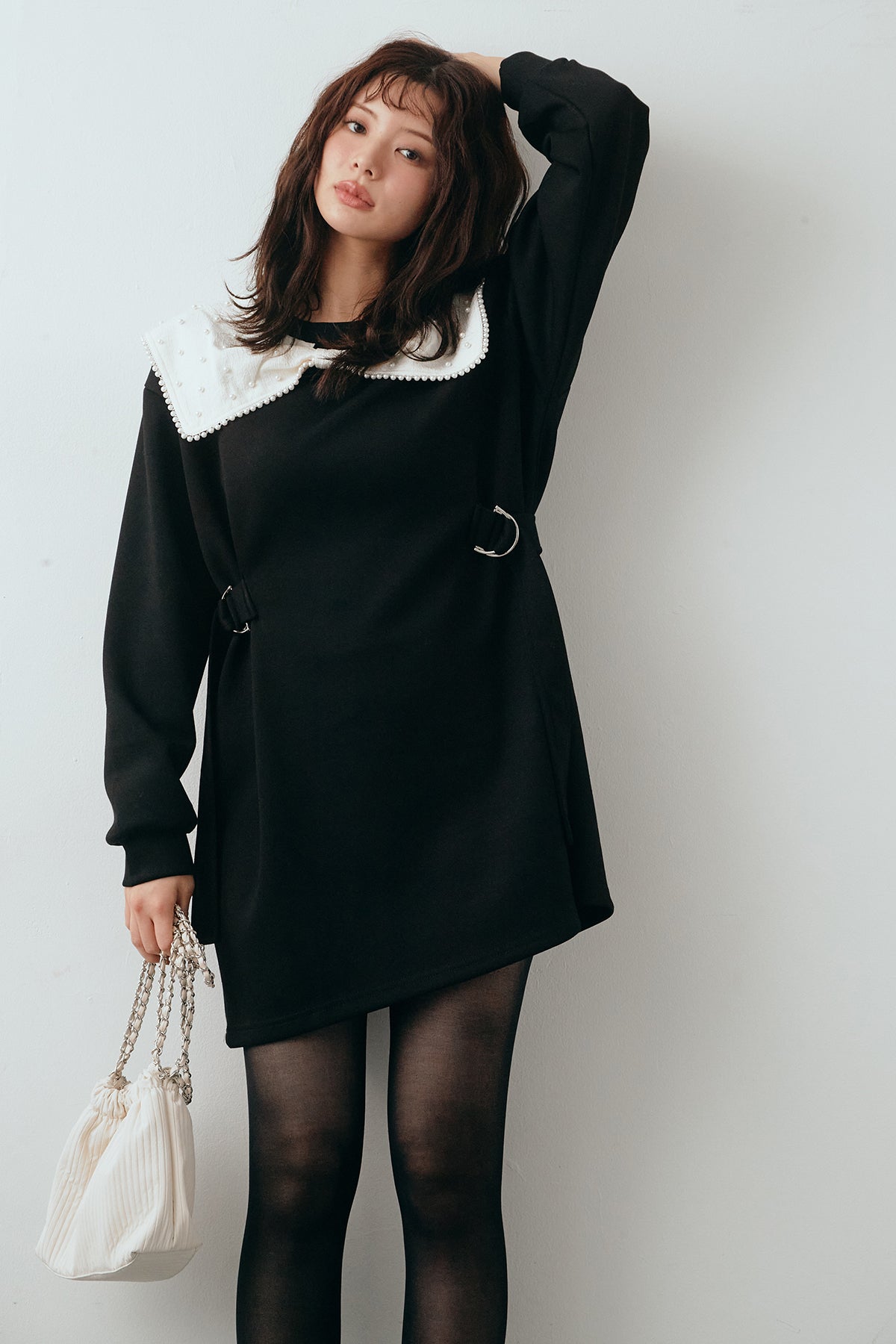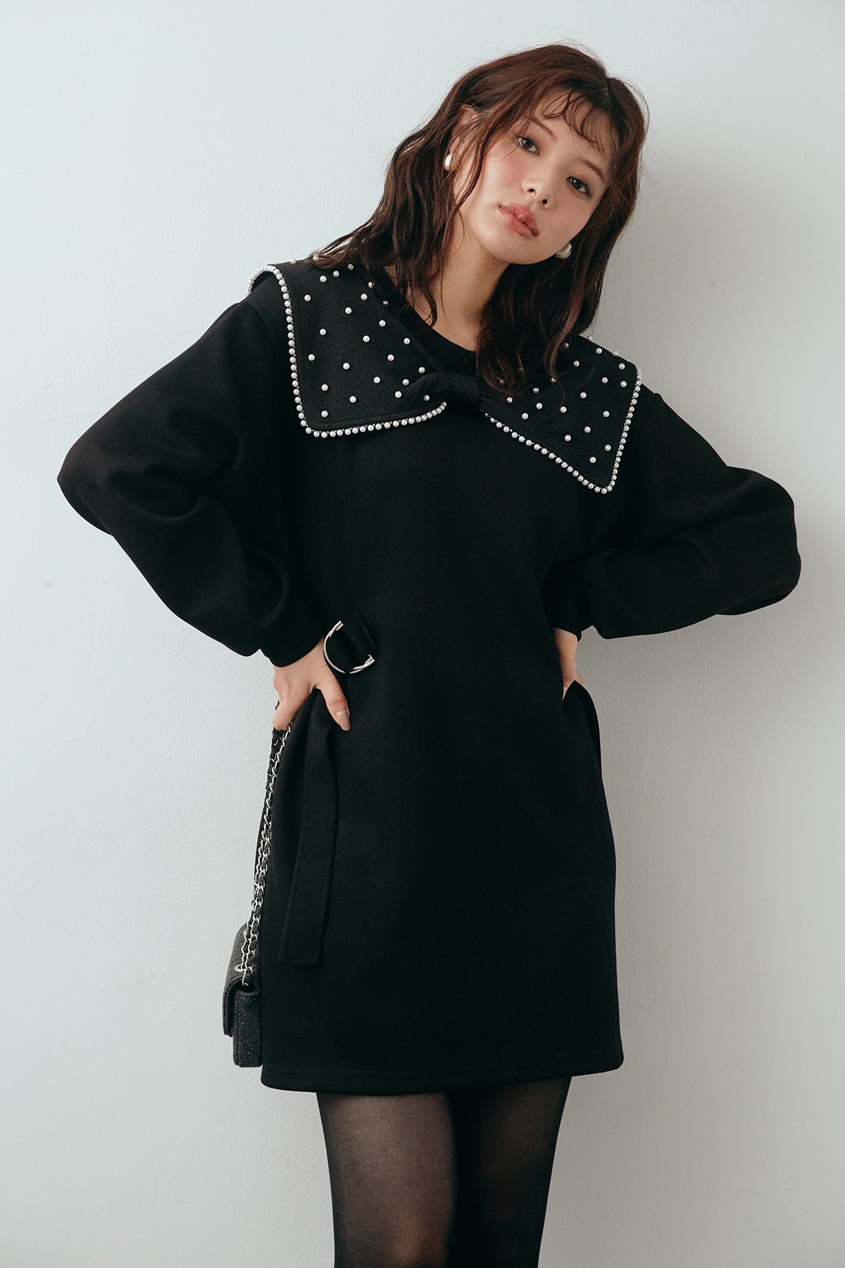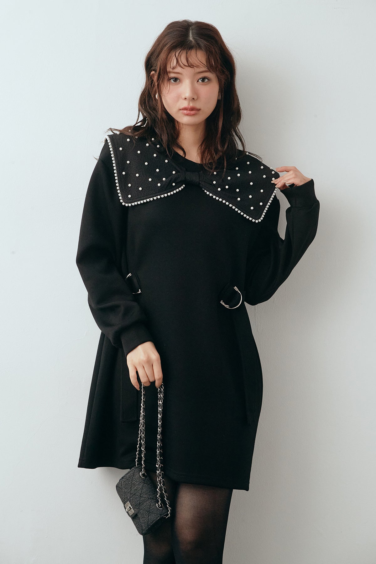 [予約]リボンパールモチーフウエストベルトミニワンピ
