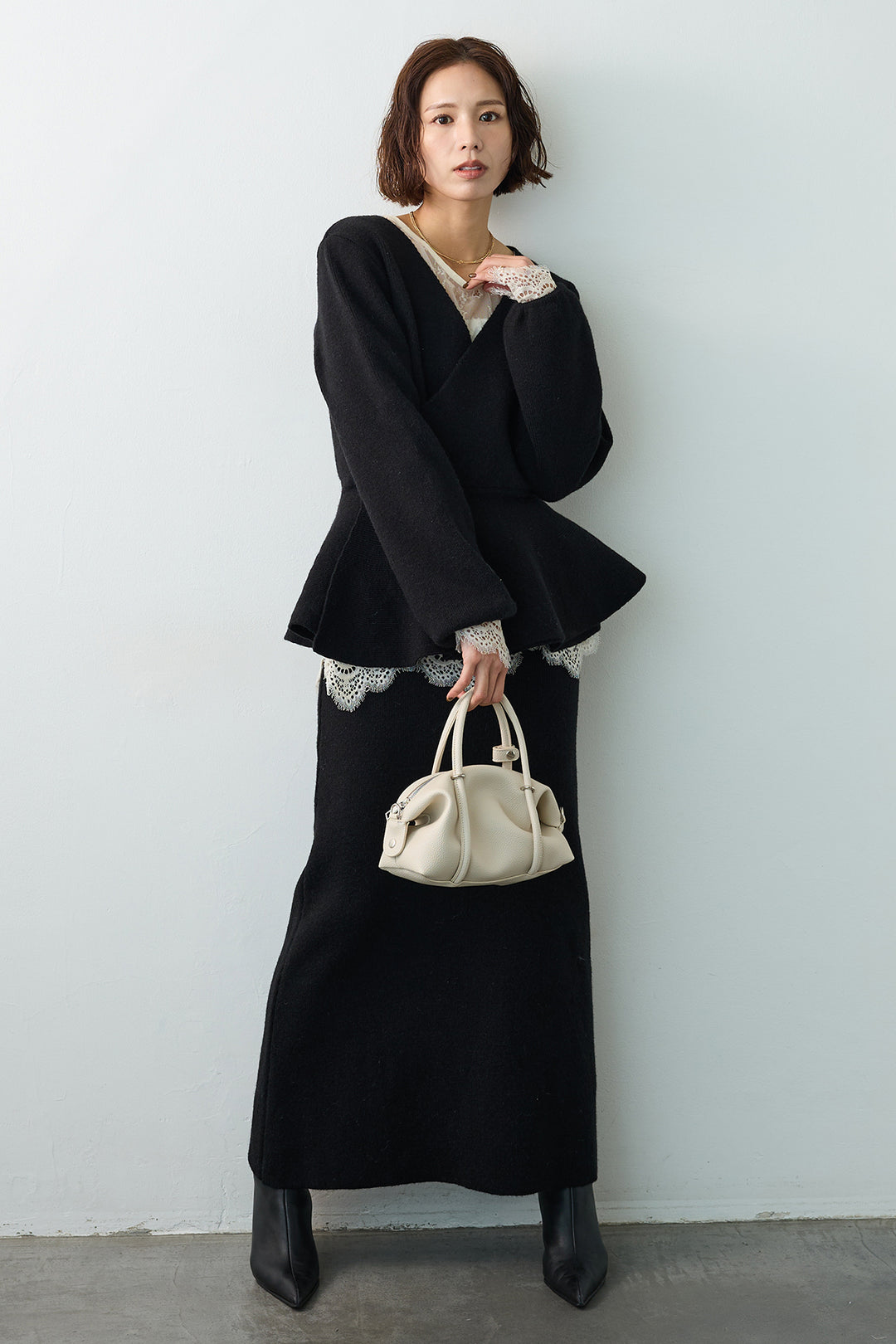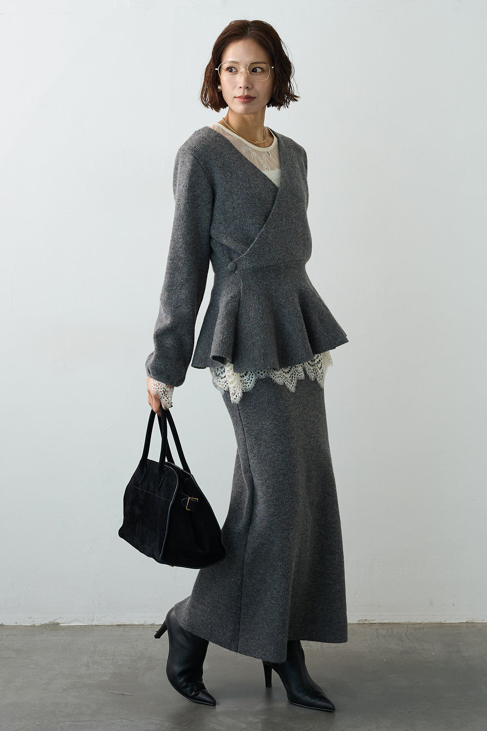 [予約/SET]ファインレーストップス+カシュクールフレアニットスカートセットアップ(2set)