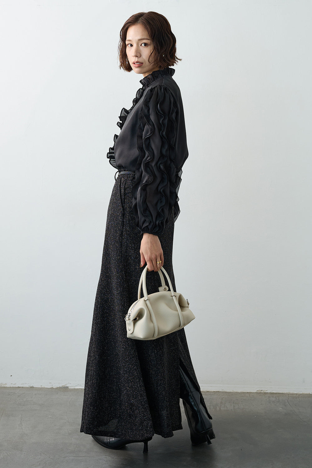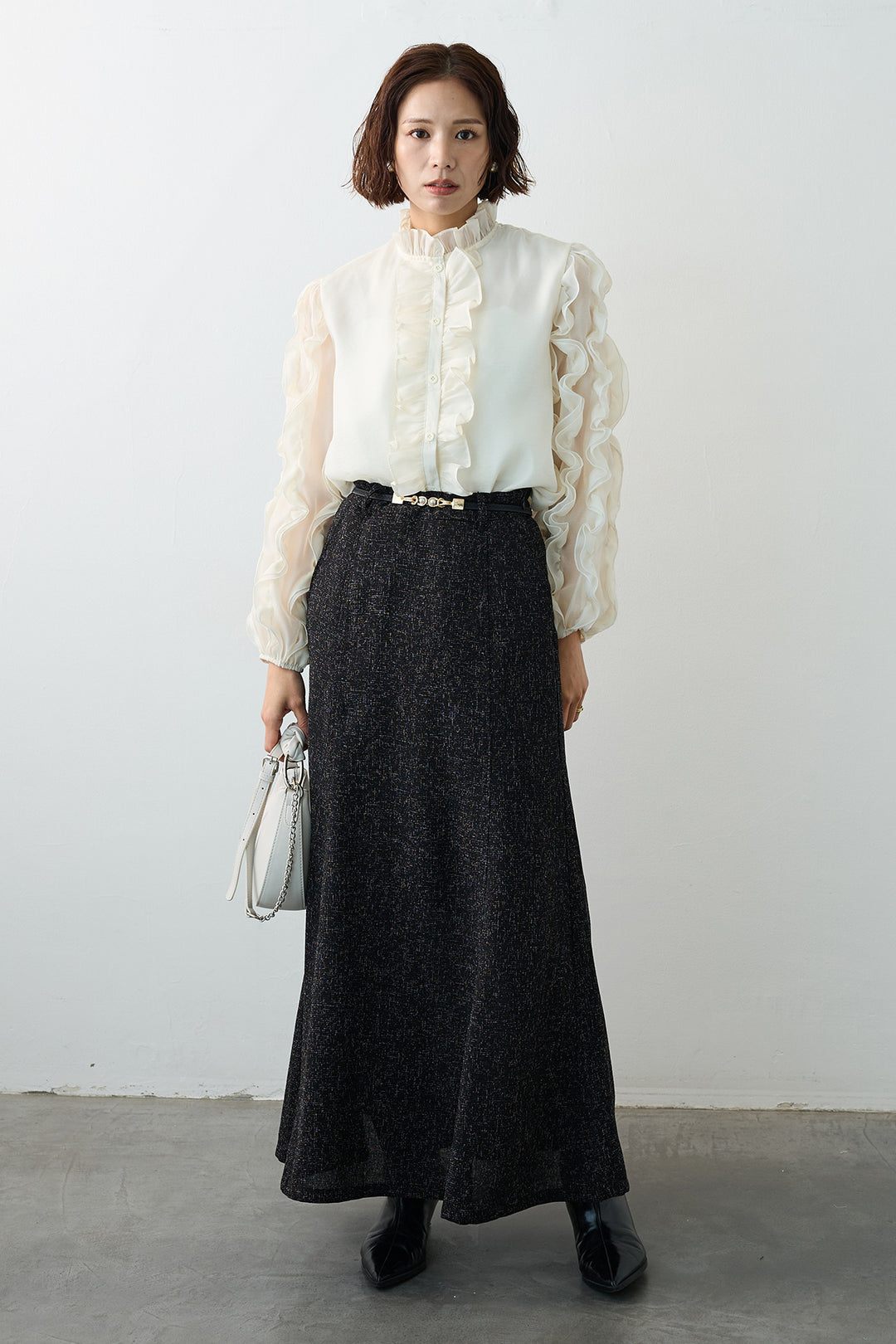 [予約/SET]エアリーフリルブラウス+スラブネップツイードフレアスカート(2set)