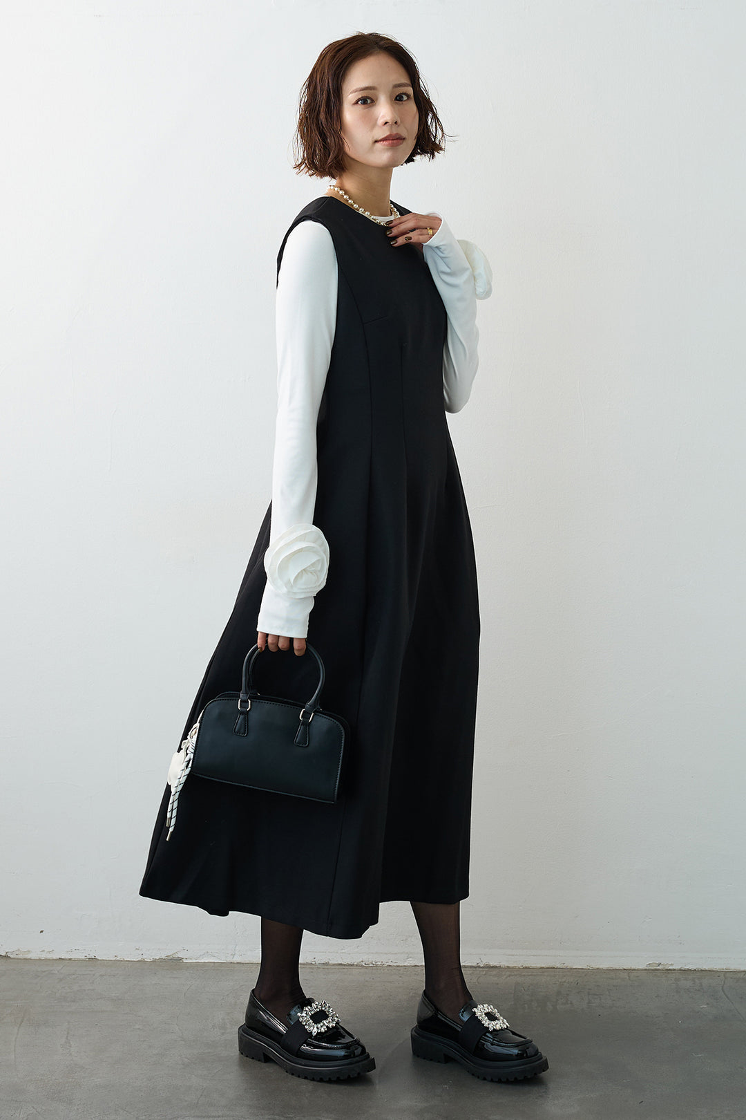 [予約/SET]ベーシックリブタートルニット+ベロアパールVネックロングワンピ(2set)