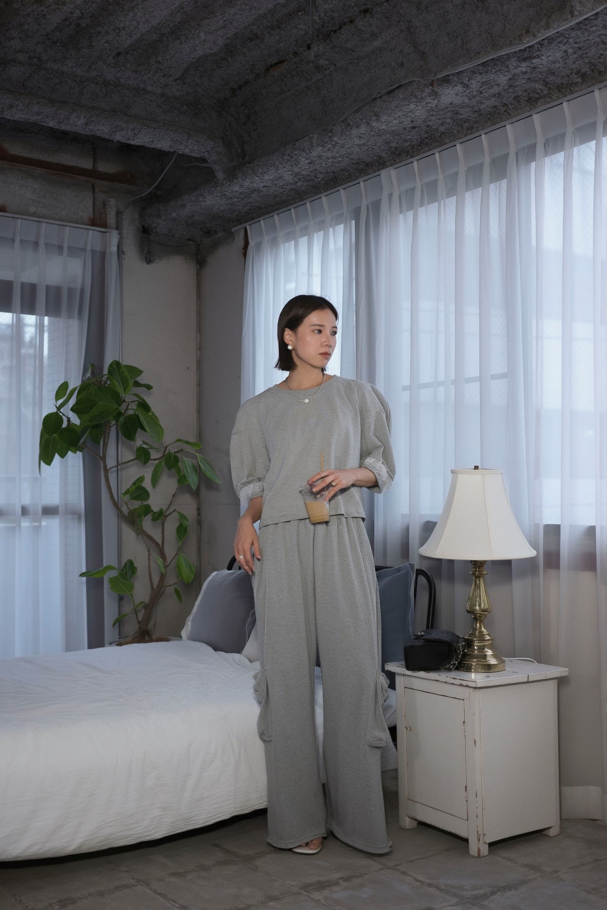[予約/SET]ライトスウェットレースコンビパフPO+ライトスウェットサイドリボンパンツ(2set)