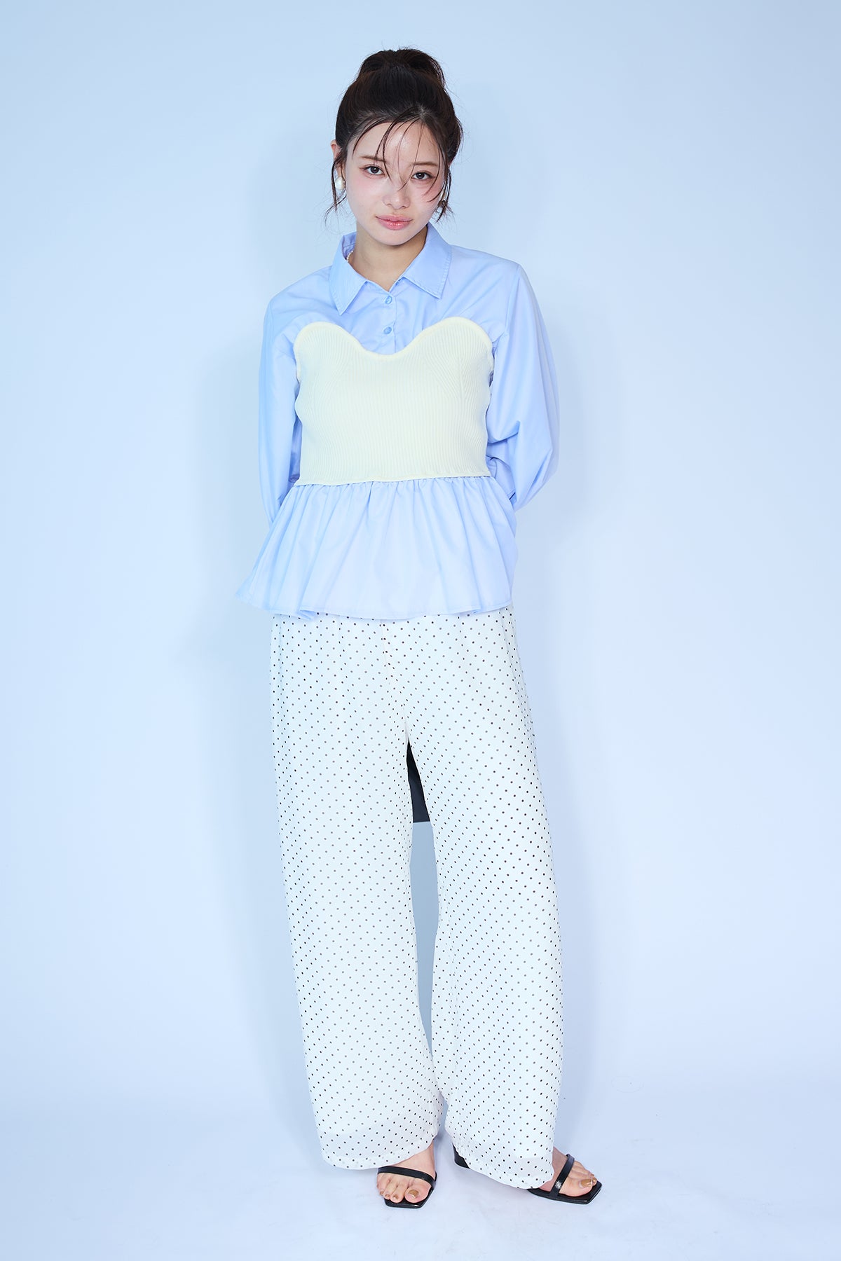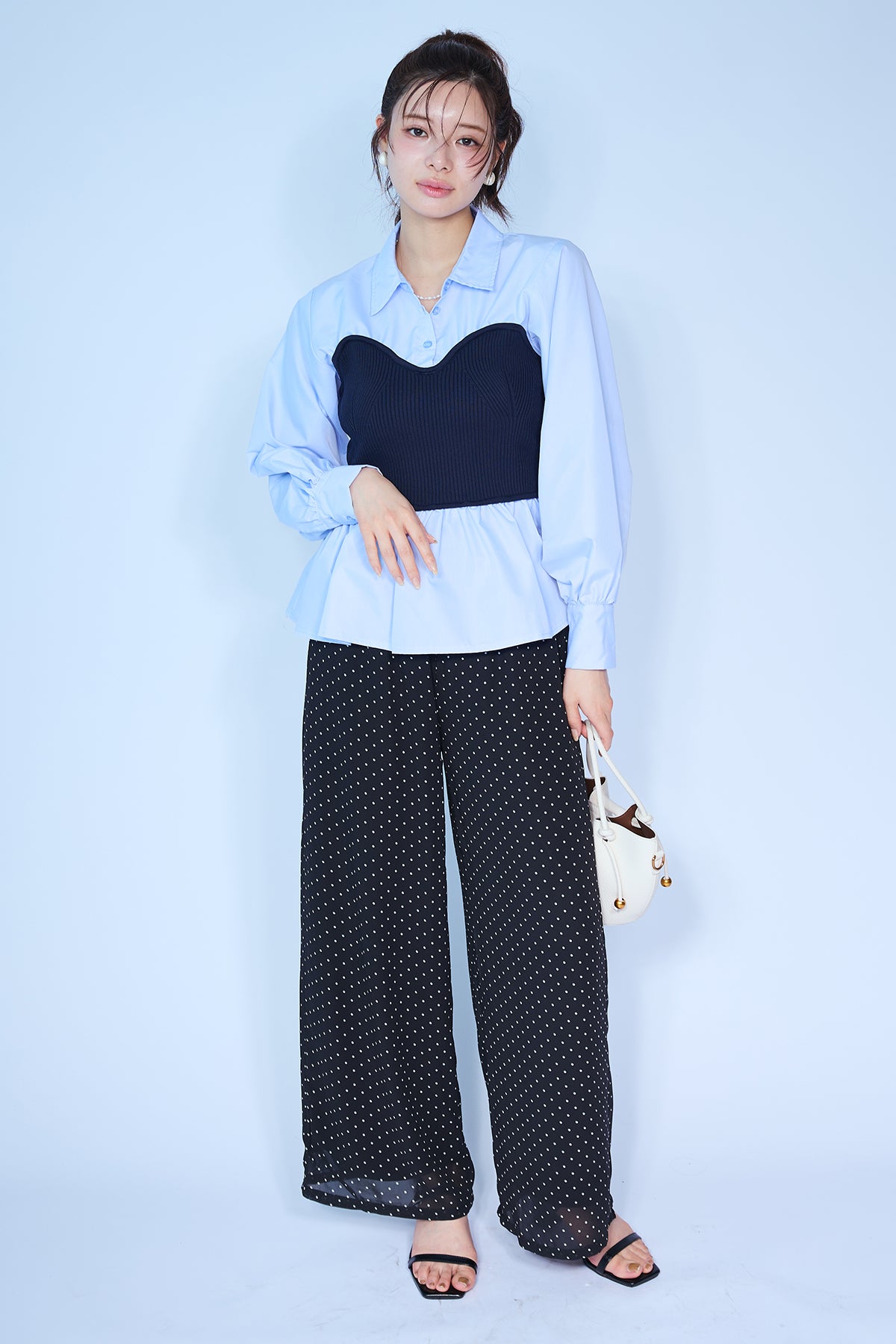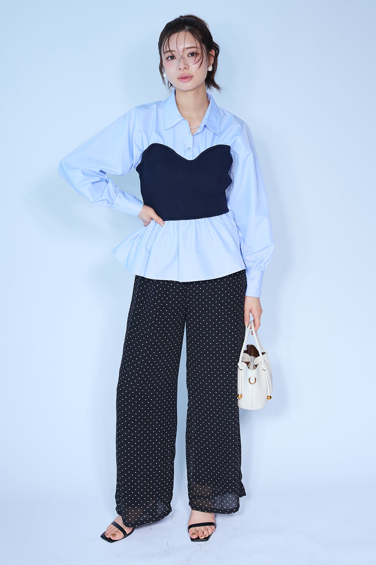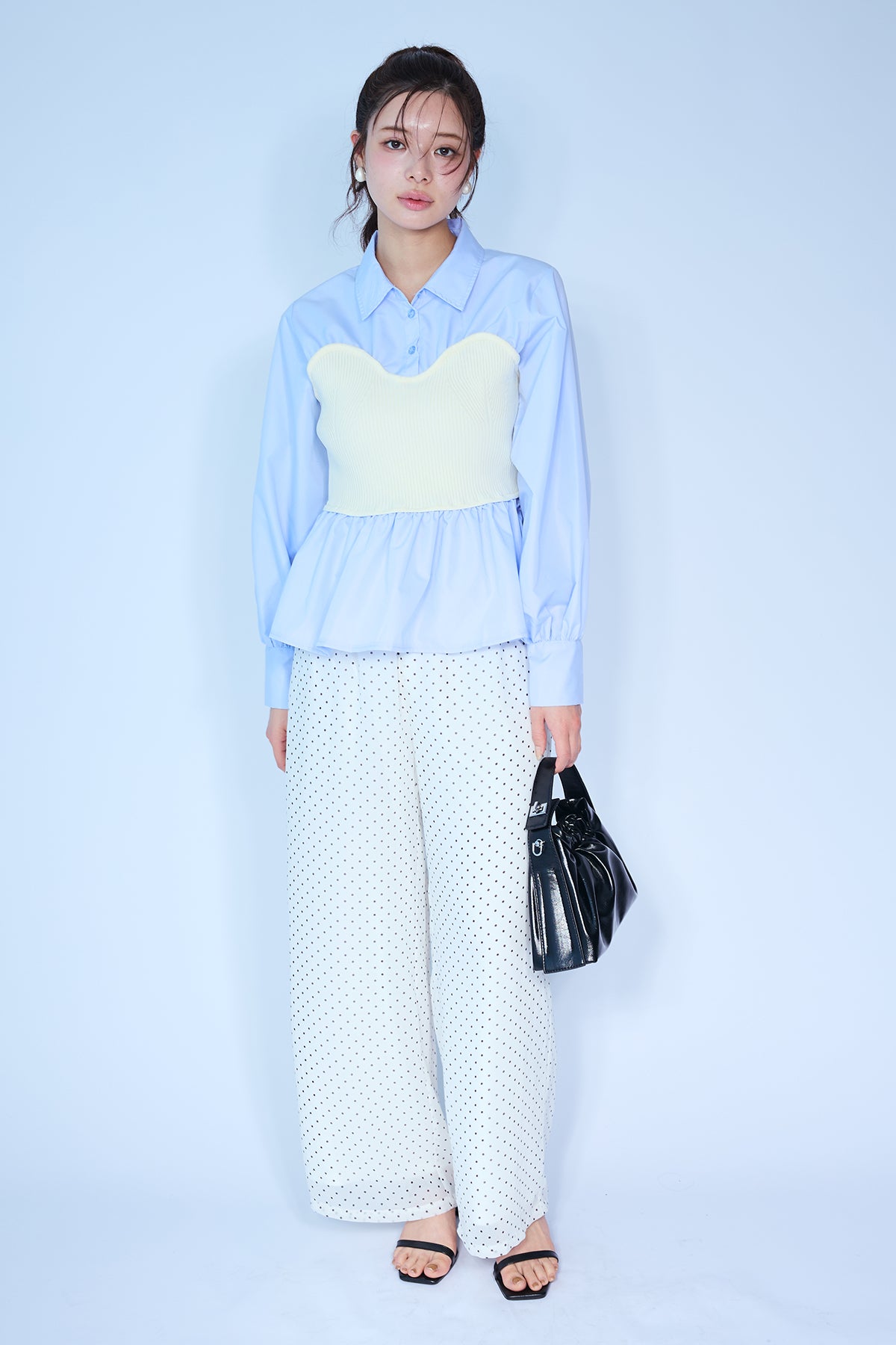 [予約/SET]ビスチェニットドッキングペプラムブラウス+シアードットリラックスパンツ(2set)