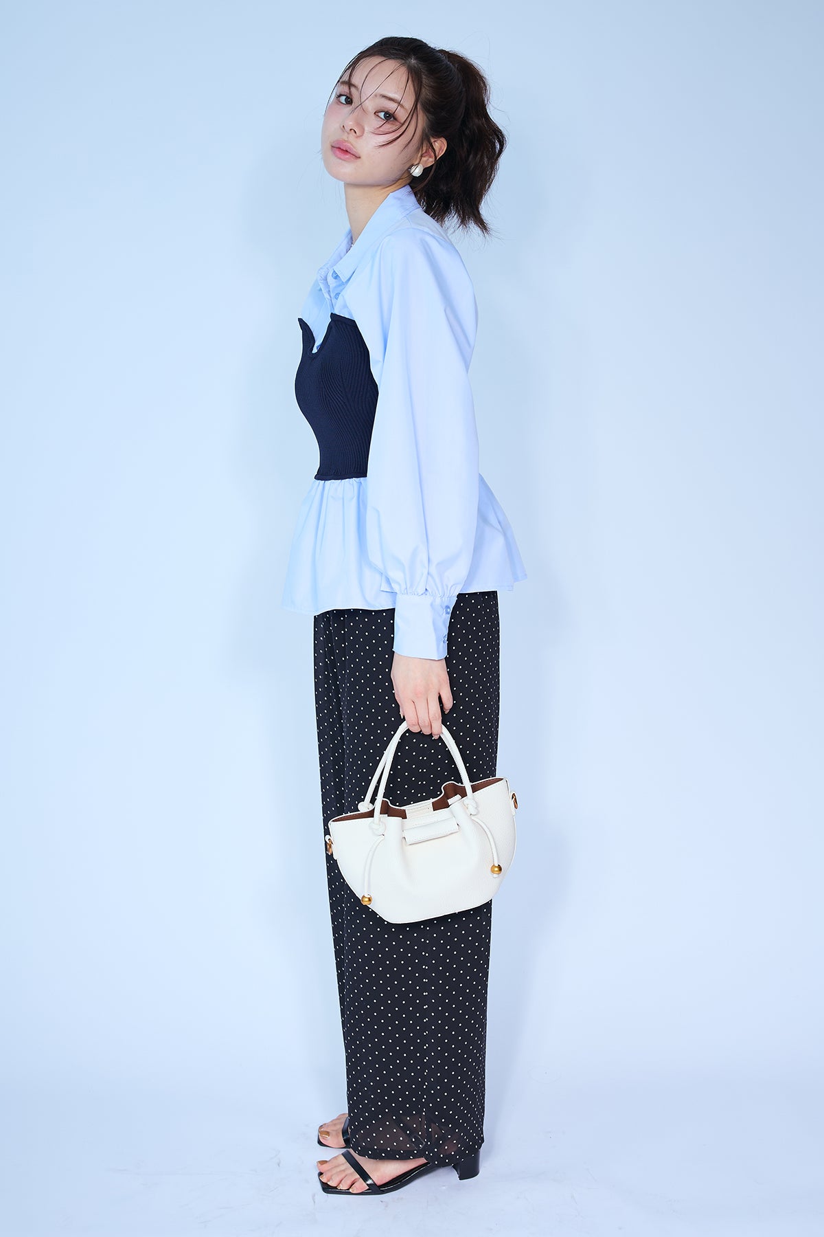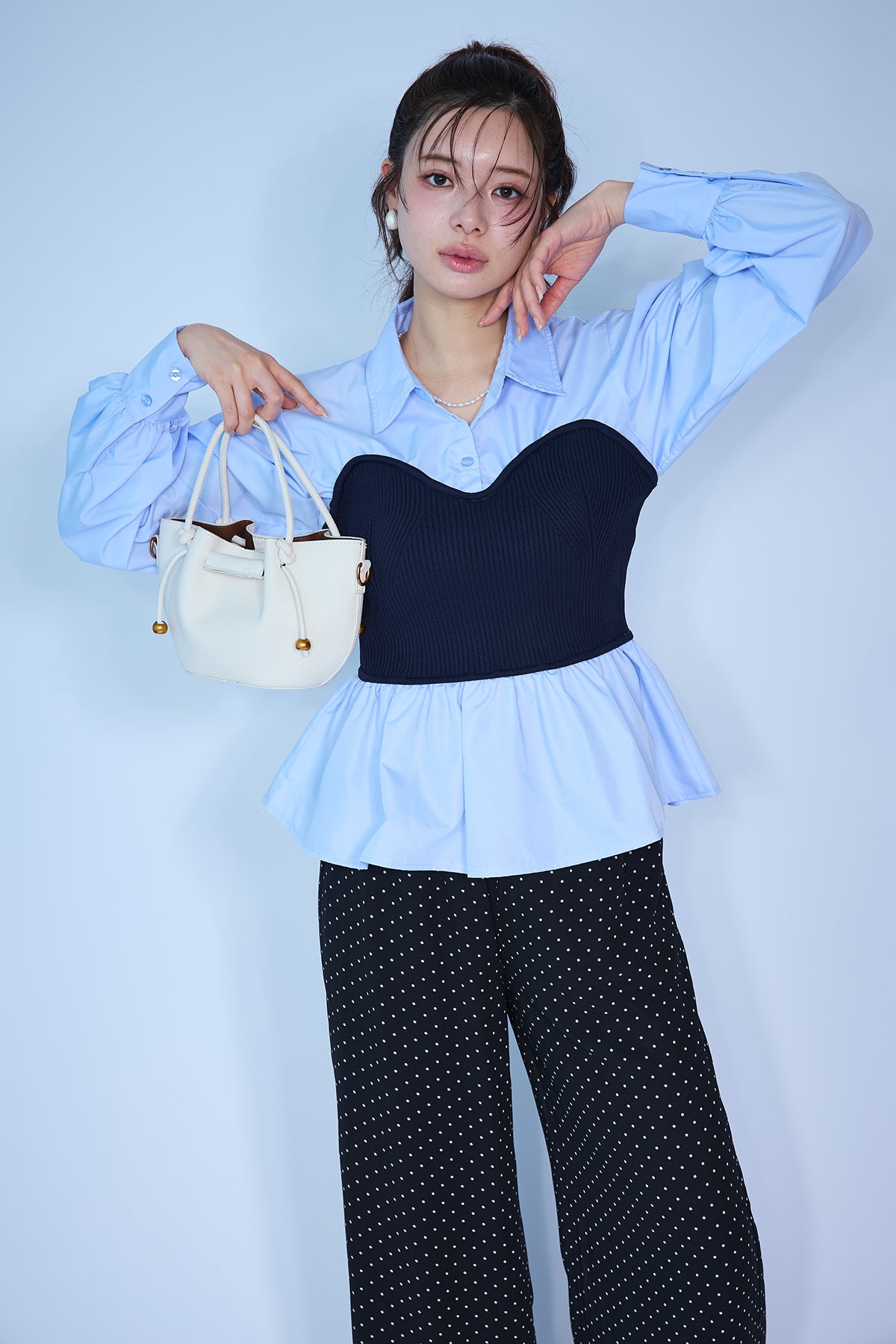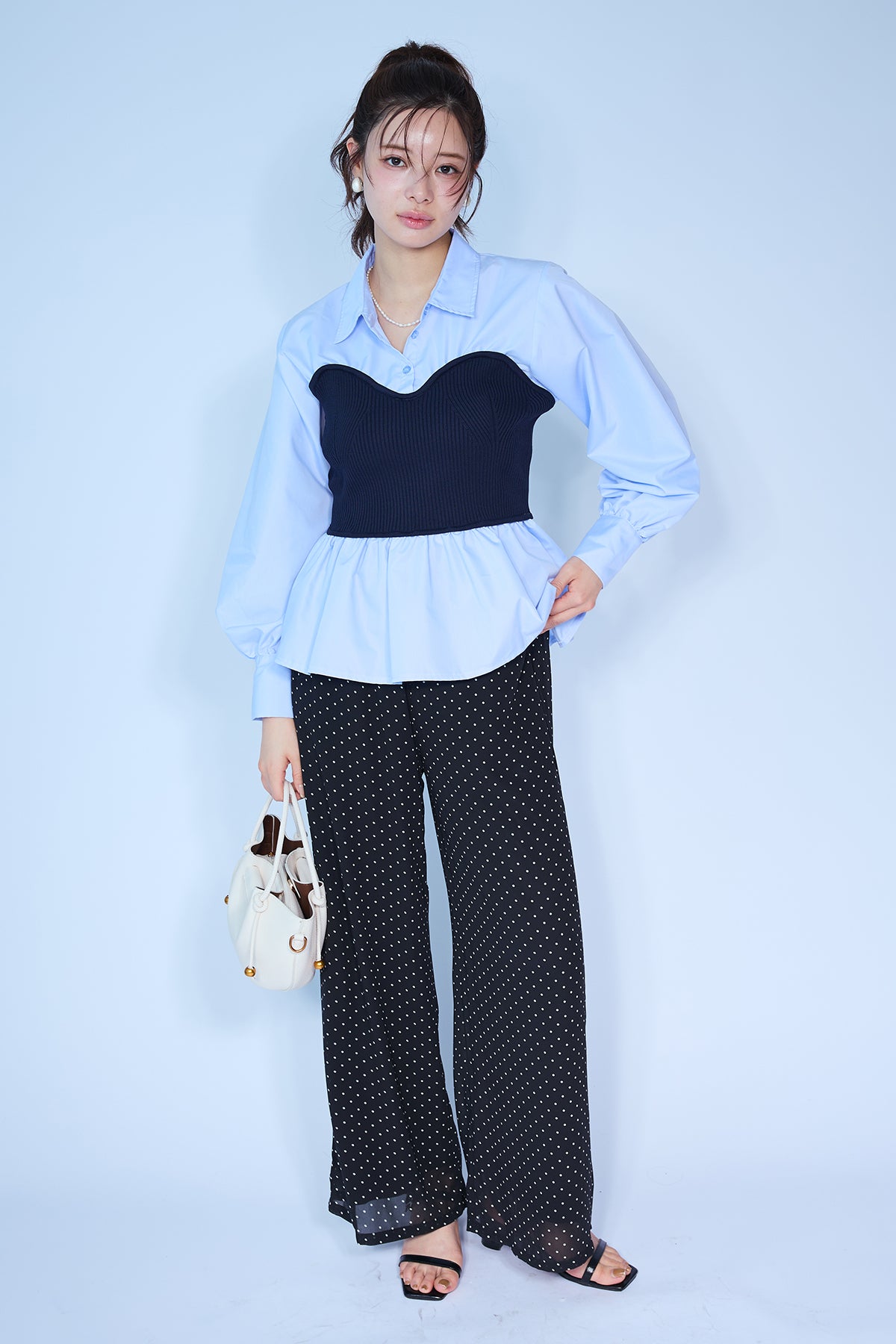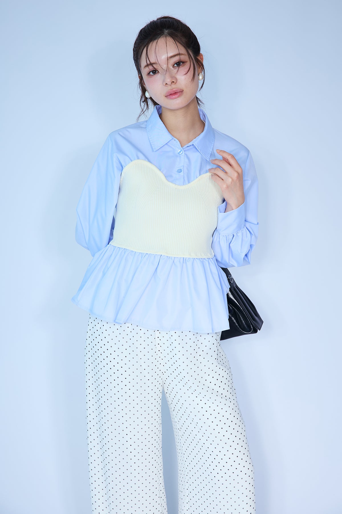 [予約/SET]ビスチェニットドッキングペプラムブラウス+シアードットリラックスパンツ(2set)