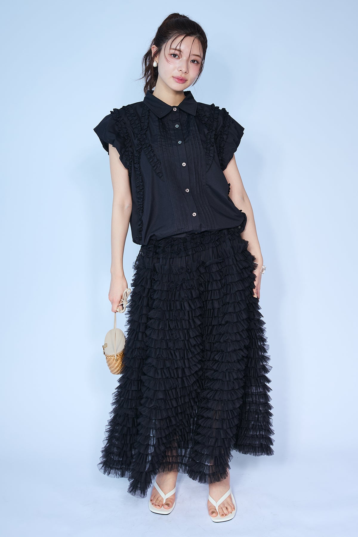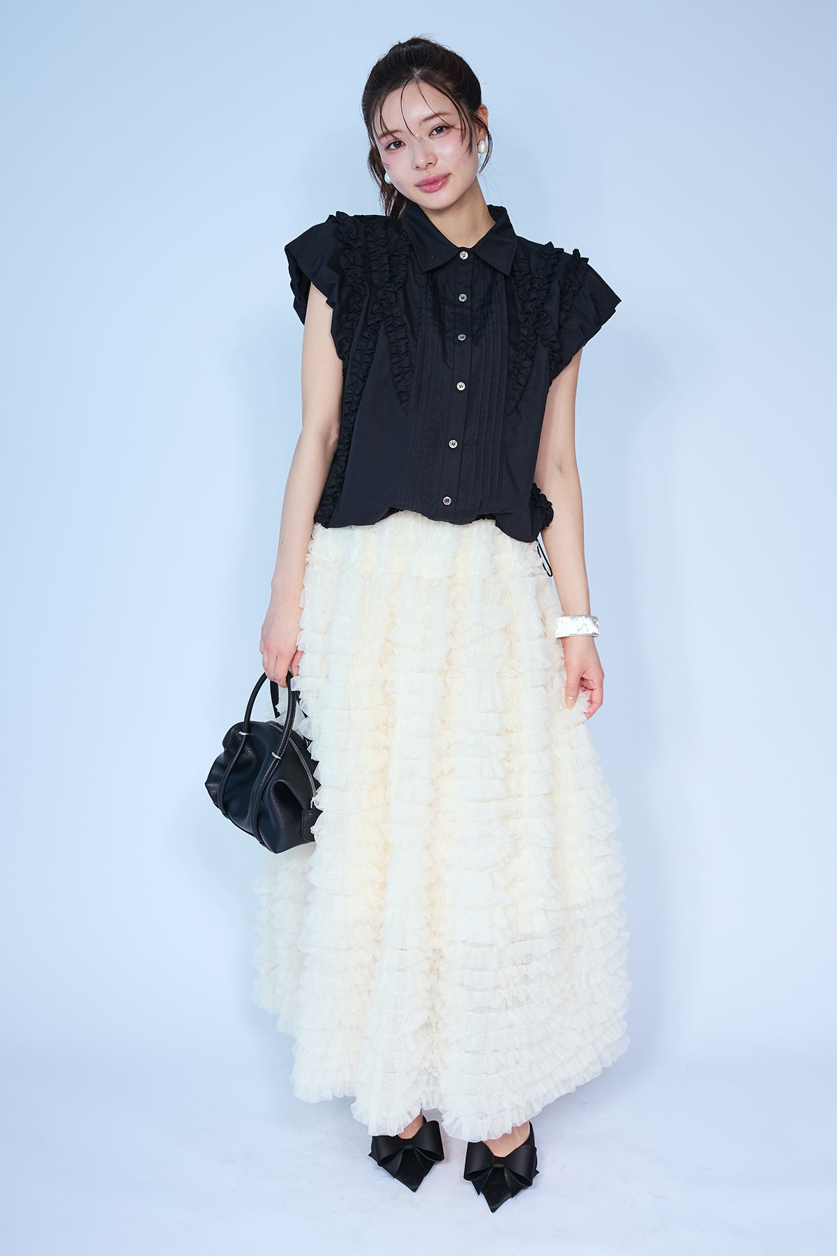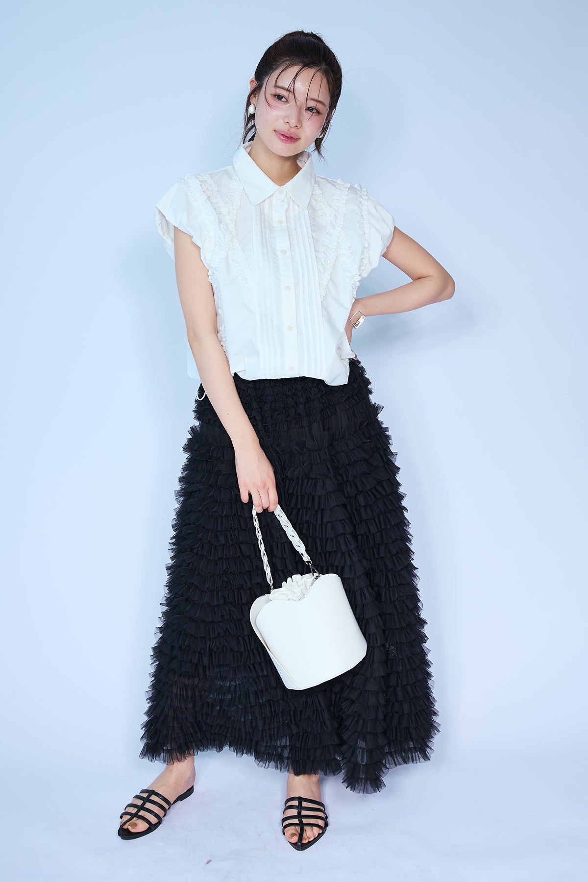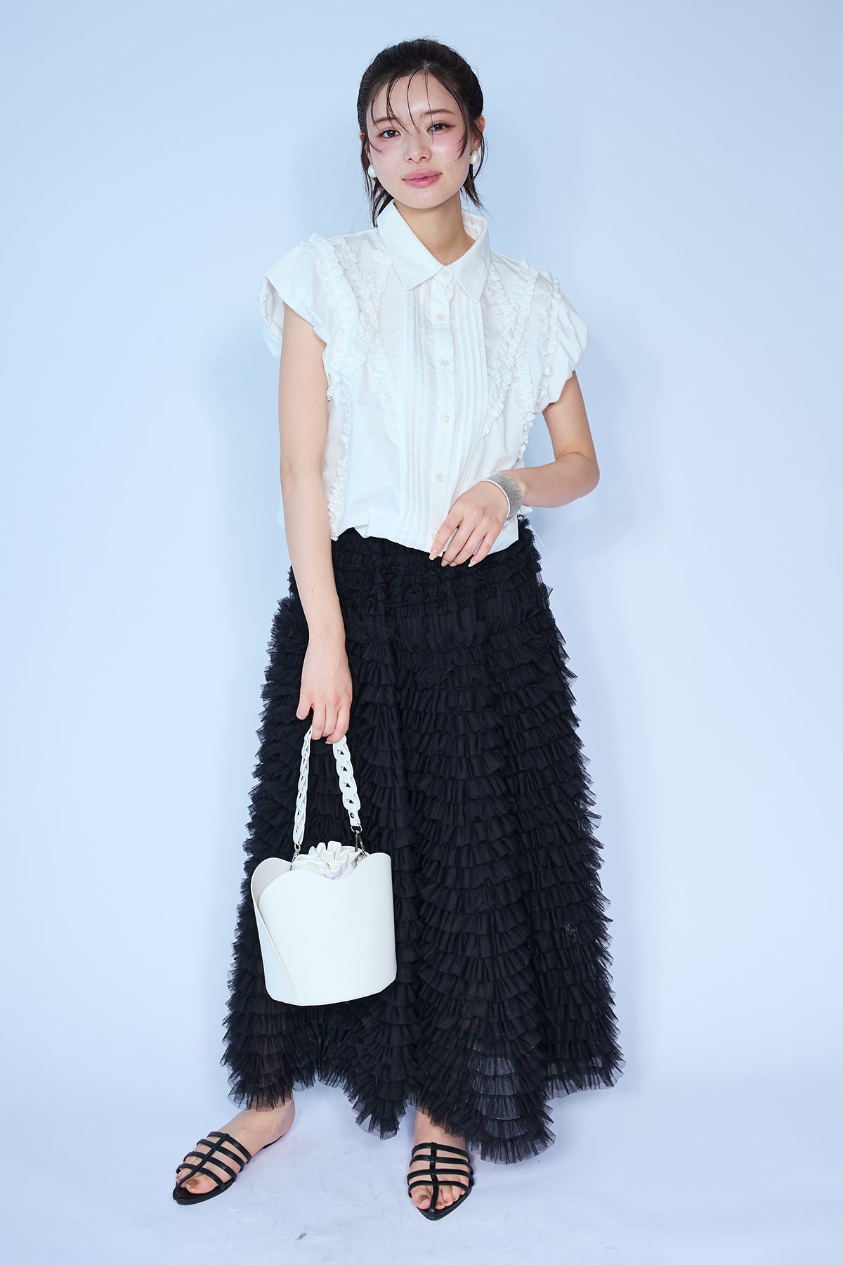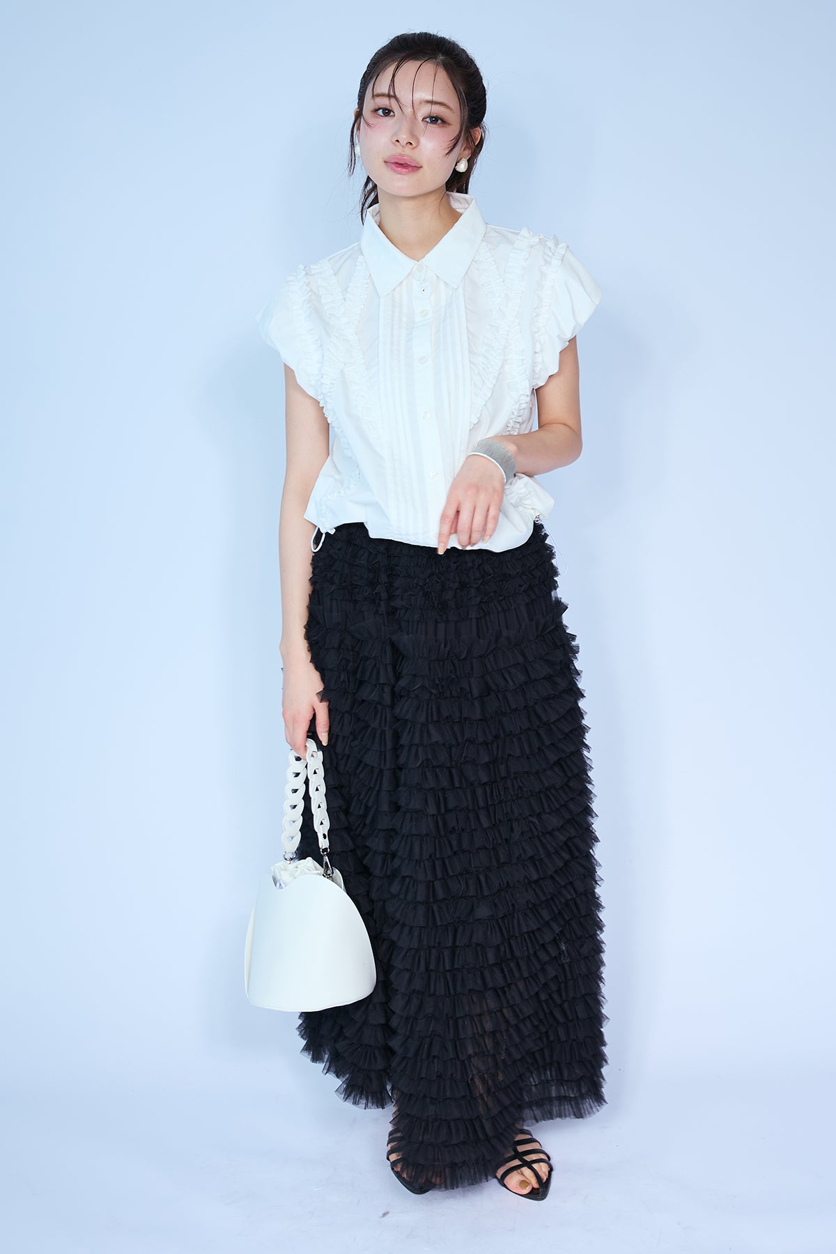 [予約/SET]ミックスフリルピンタックサイドドロストブラウス+ホイップチュールティアードスカート(2set)