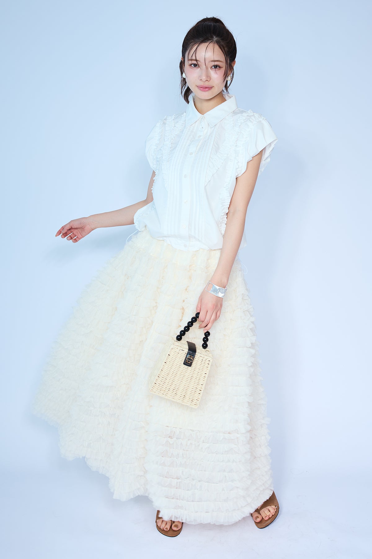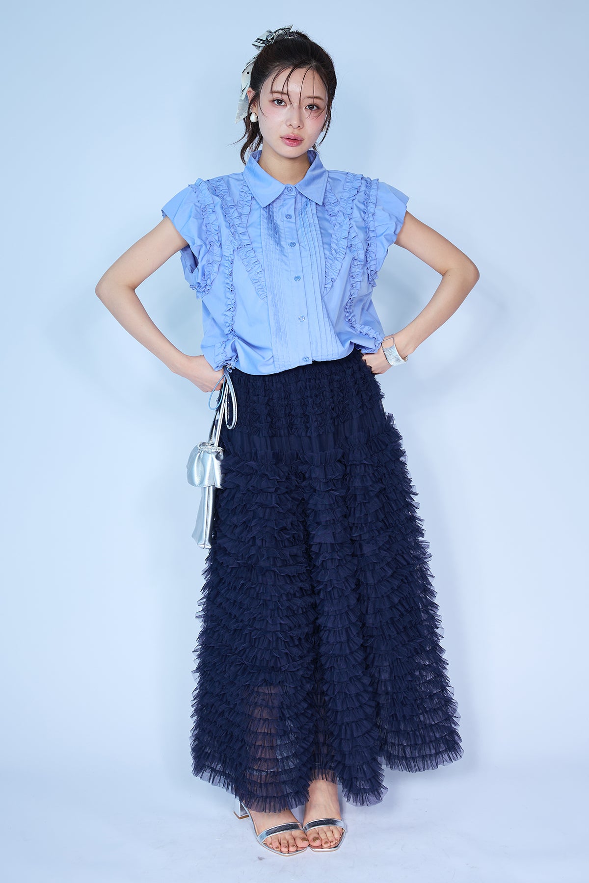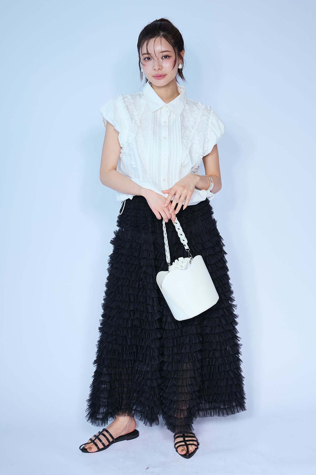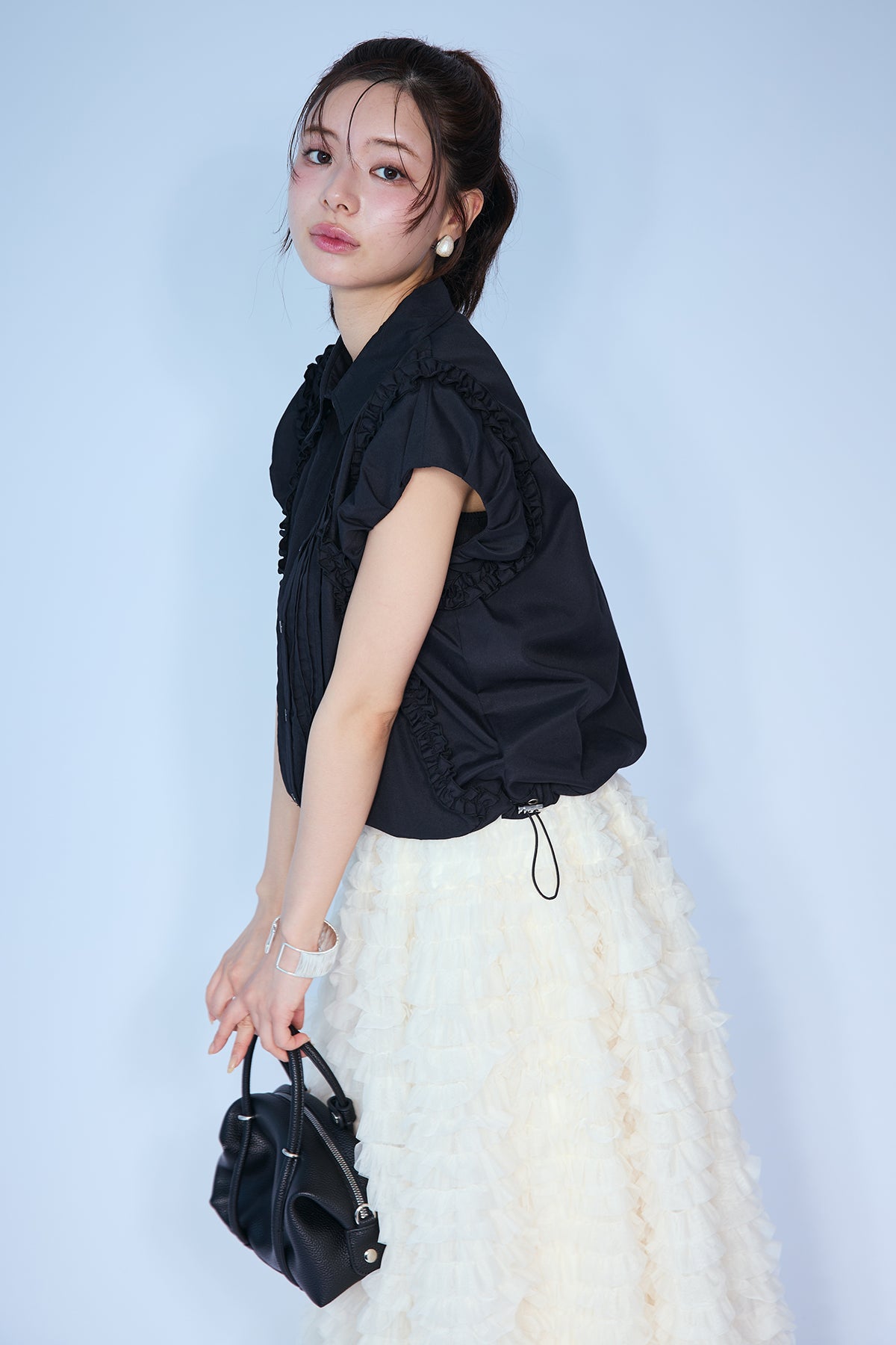[予約/SET]ミックスフリルピンタックサイドドロストブラウス+ホイップチュールティアードスカート(2set)