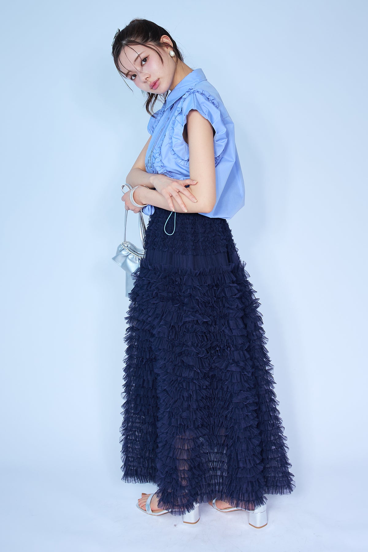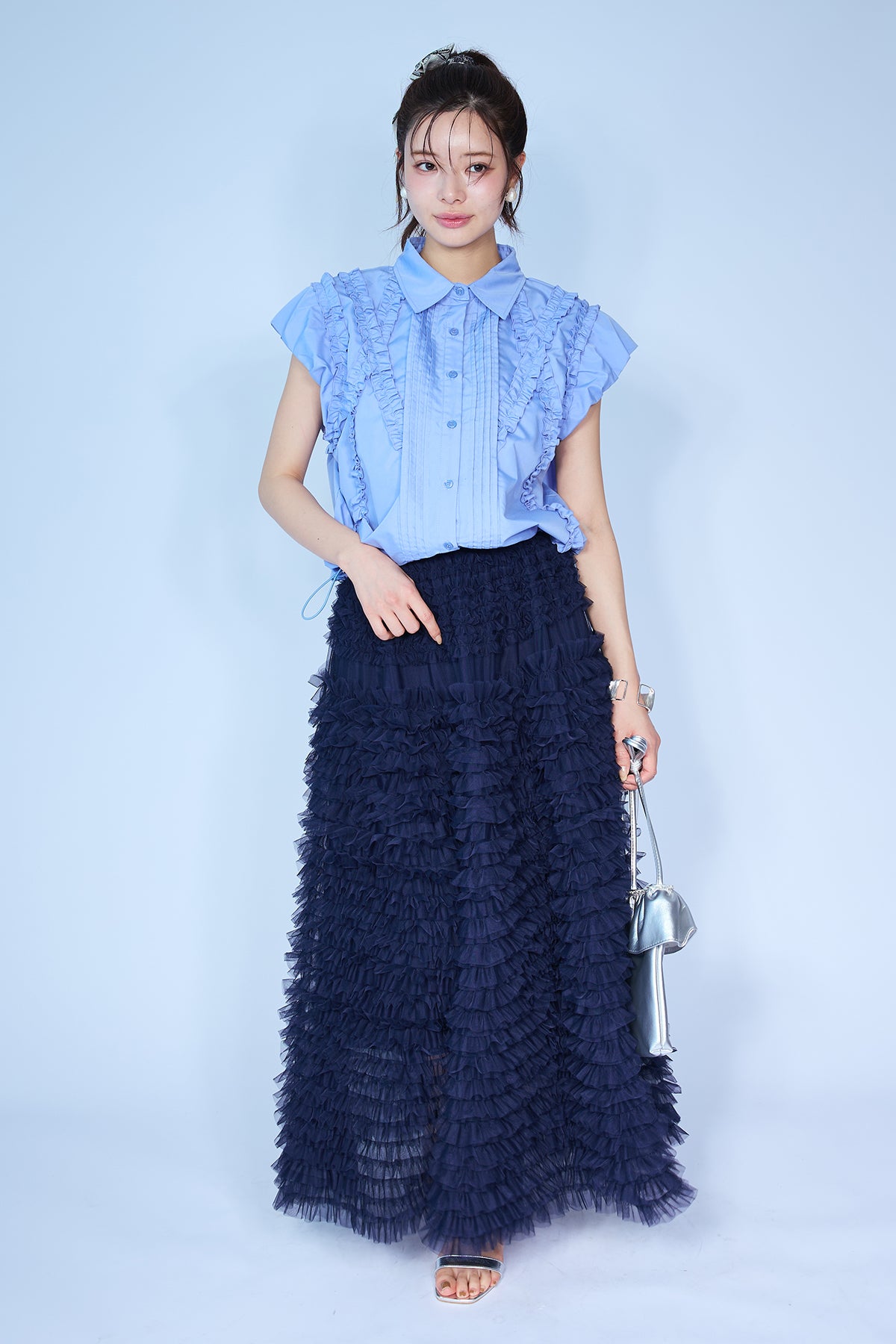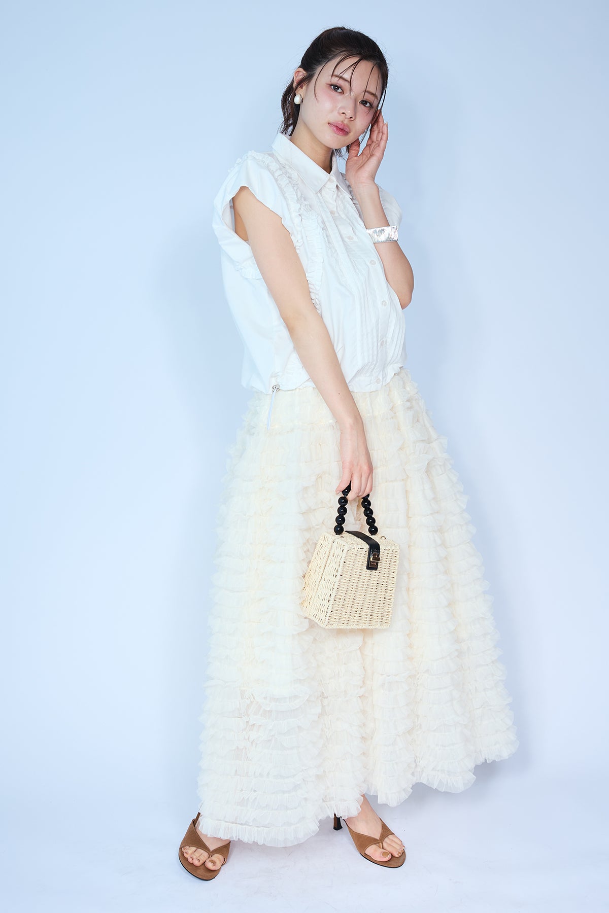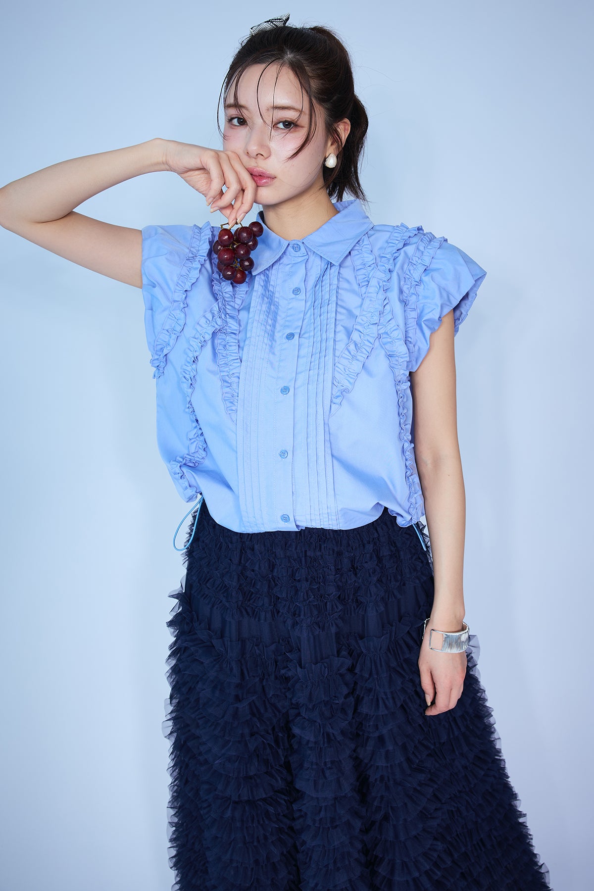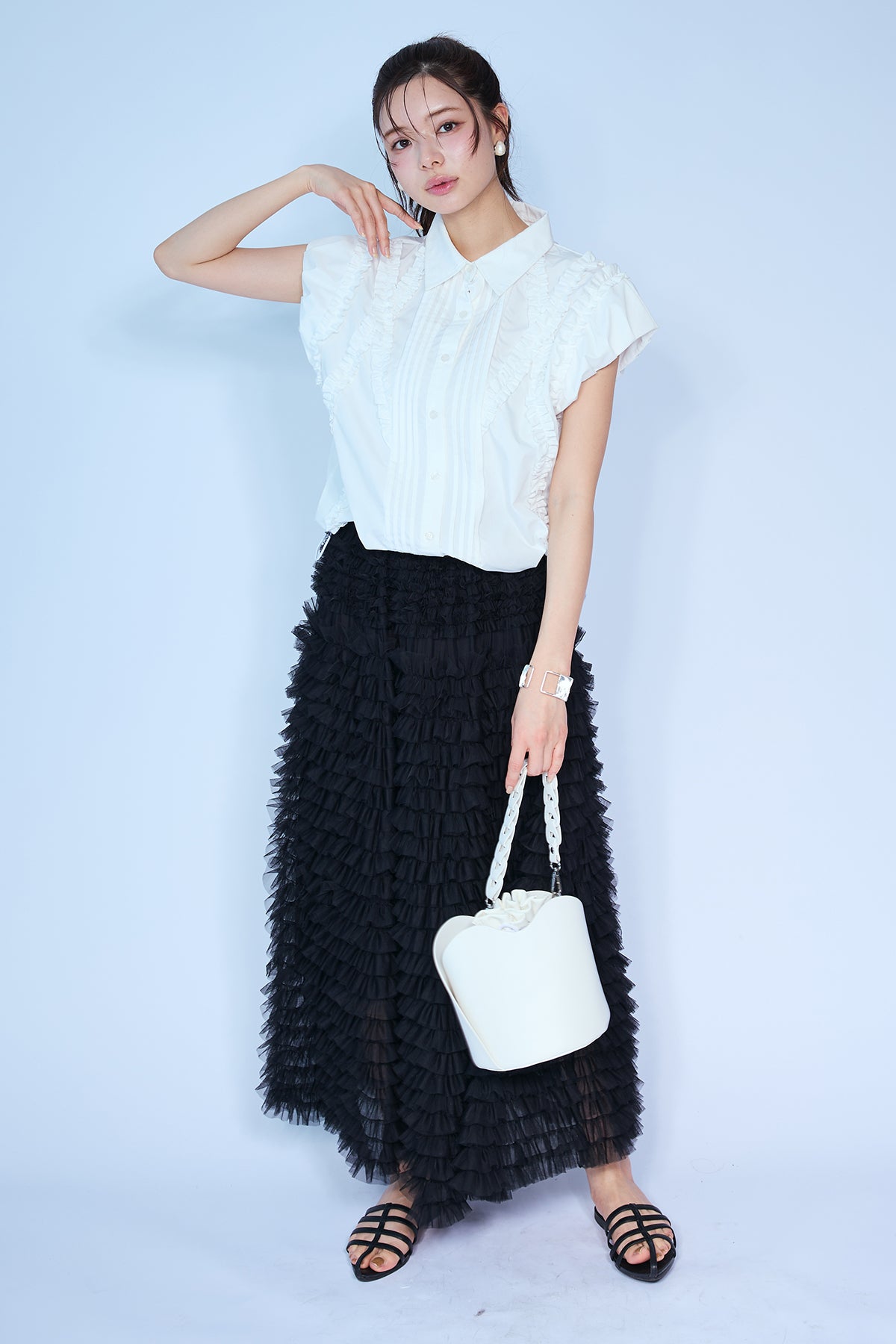 [予約/SET]ミックスフリルピンタックサイドドロストブラウス+ホイップチュールティアードスカート(2set)