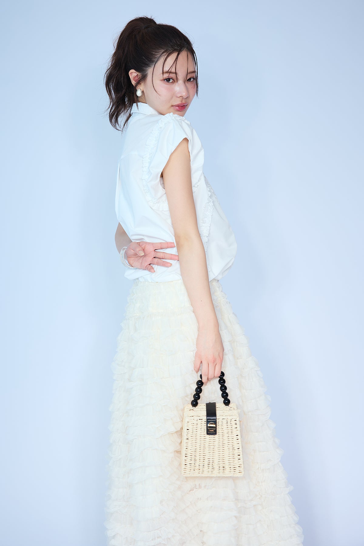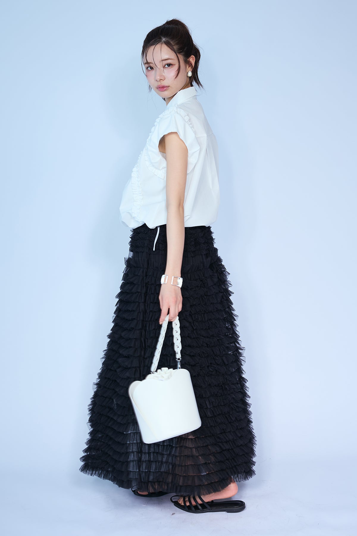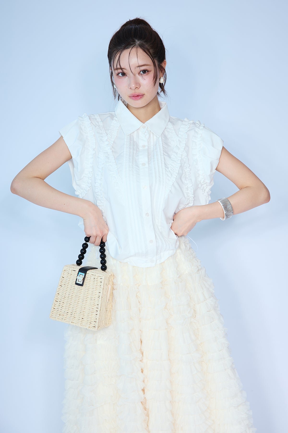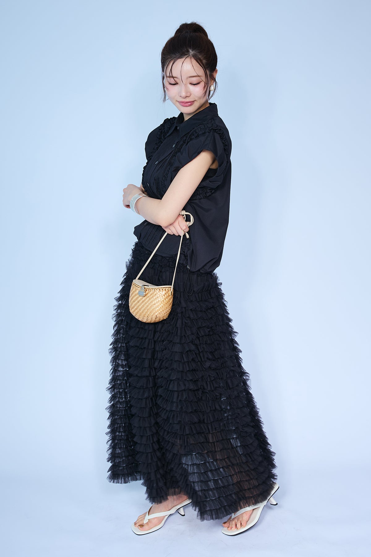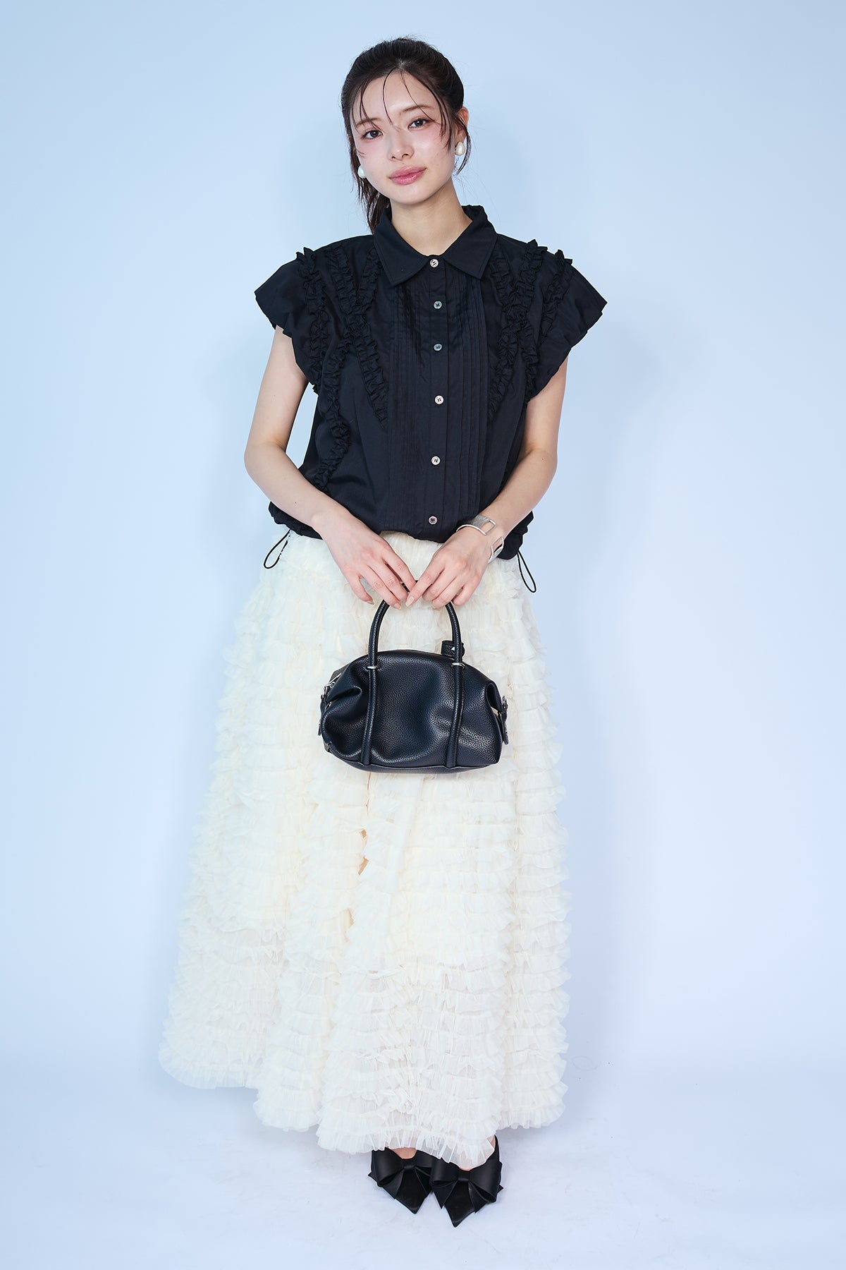 [予約/SET]ミックスフリルピンタックサイドドロストブラウス+ホイップチュールティアードスカート(2set)