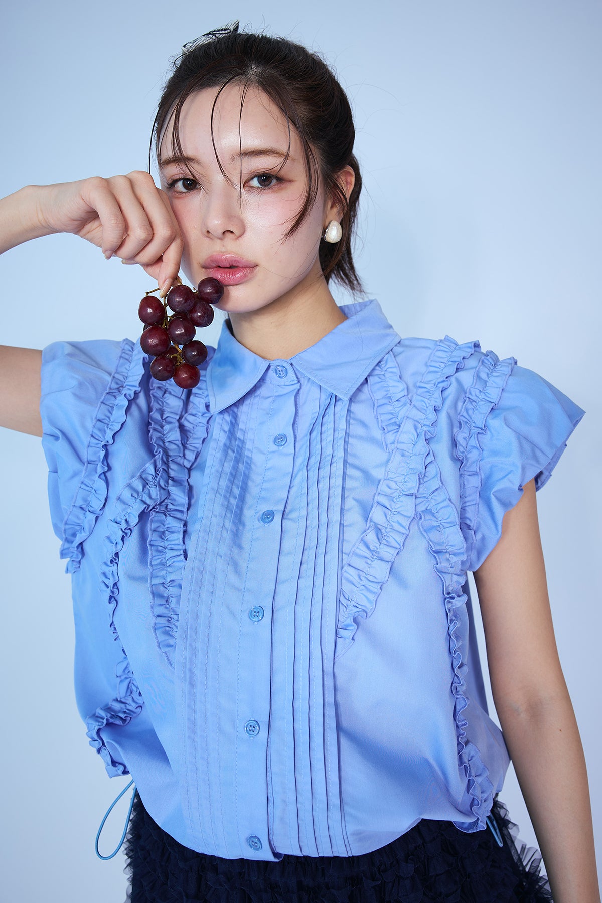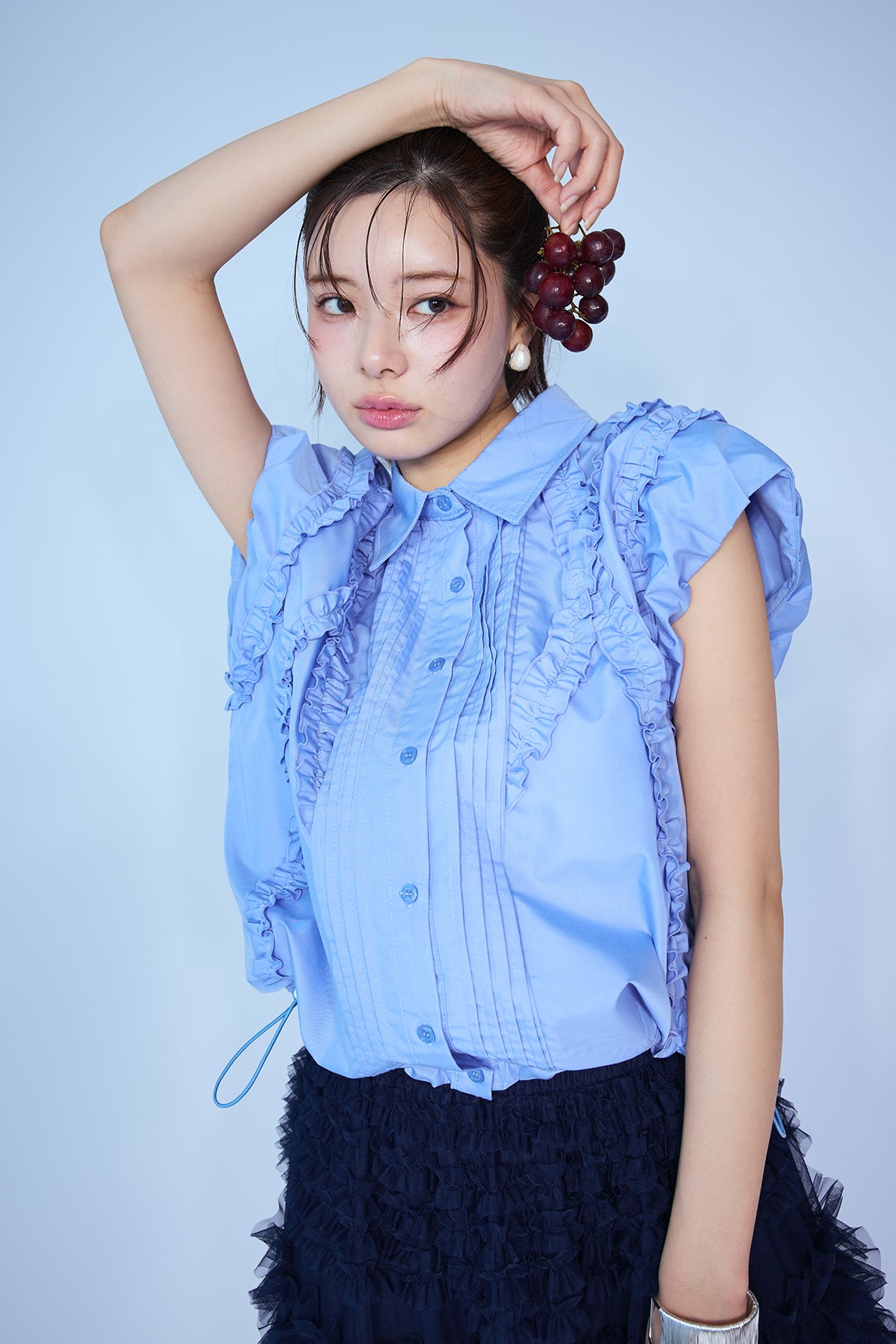 [予約]ミックスフリルピンタックサイドドロストブラウス