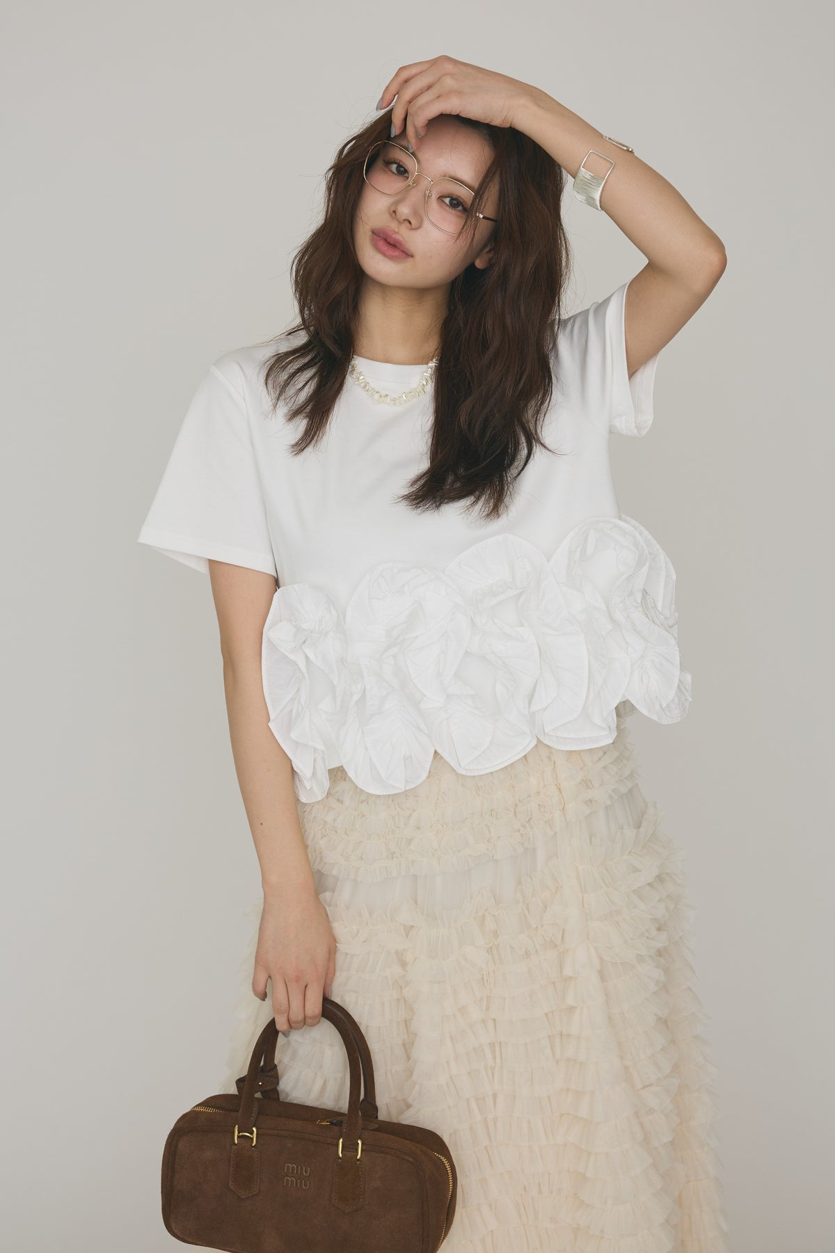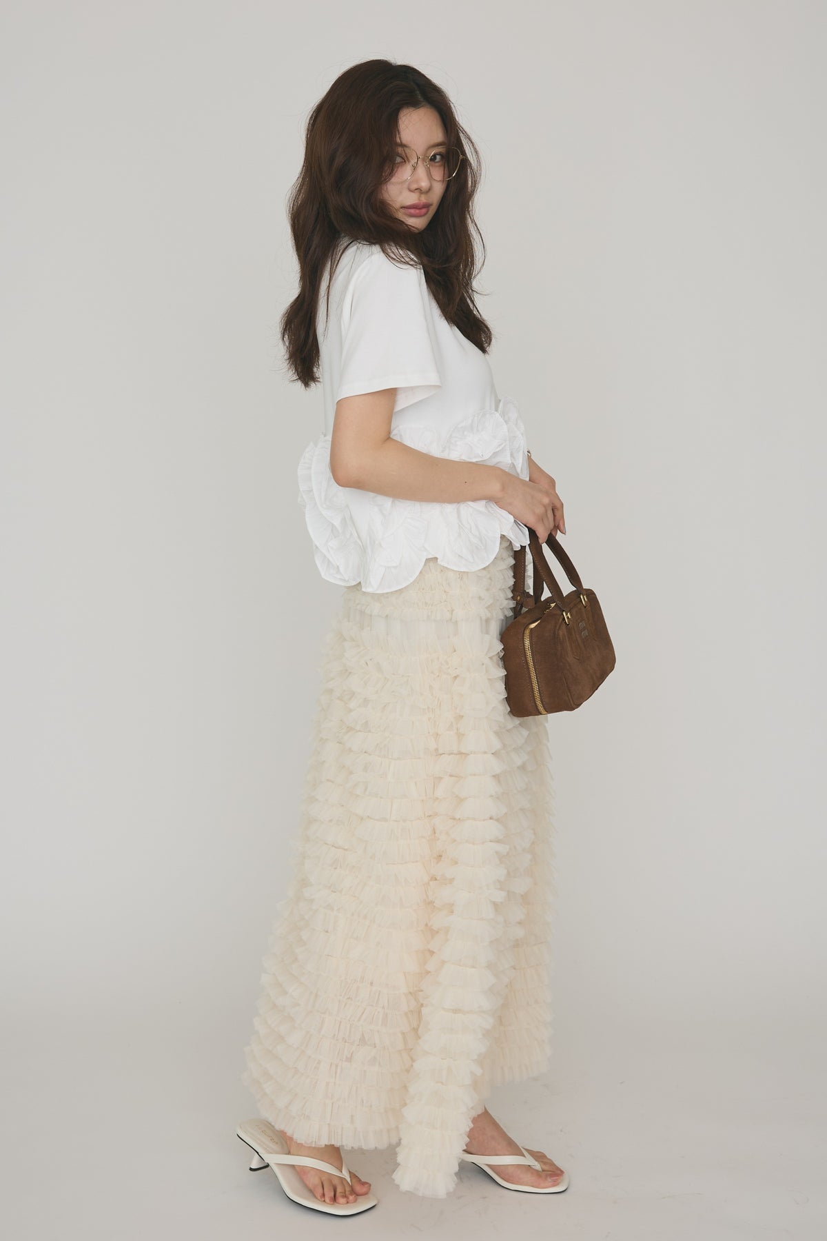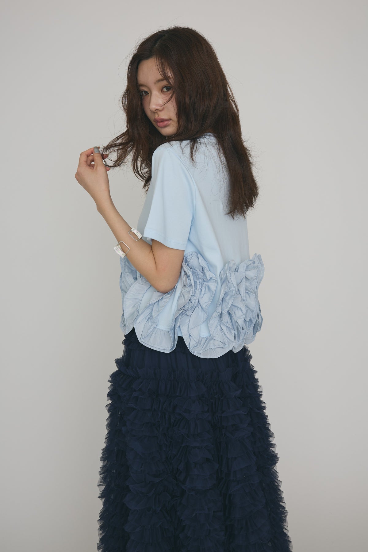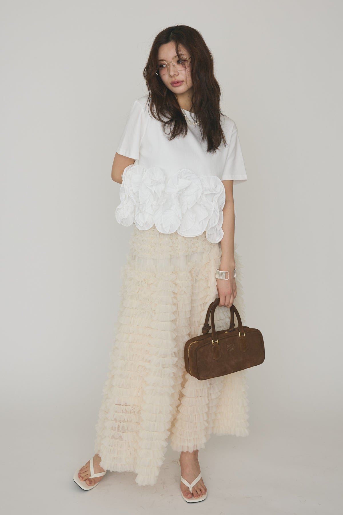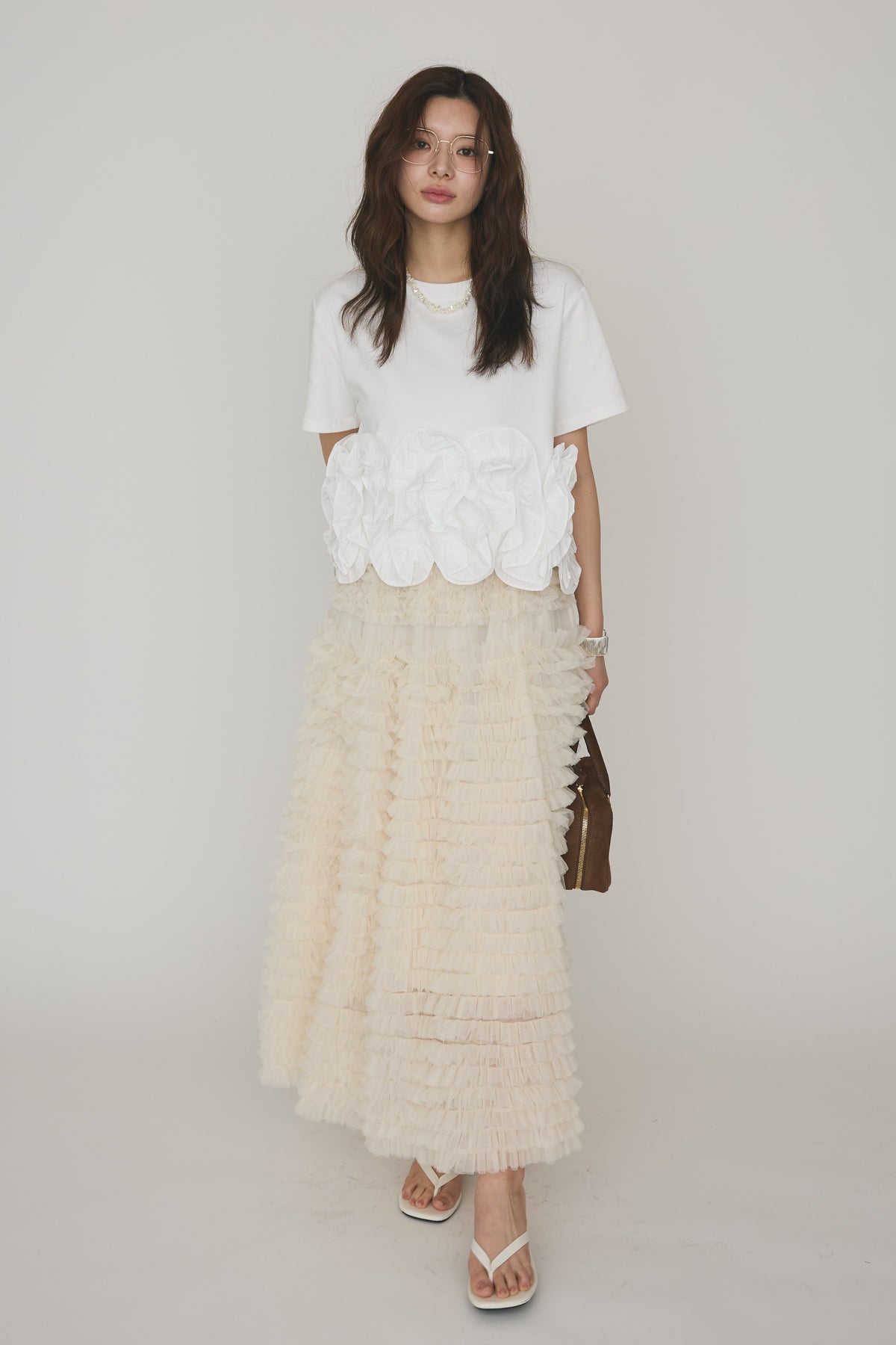 [予約/SET]フリルウェーブヘムカットTシャツ+ホイップチュールティアードスカート(2set)