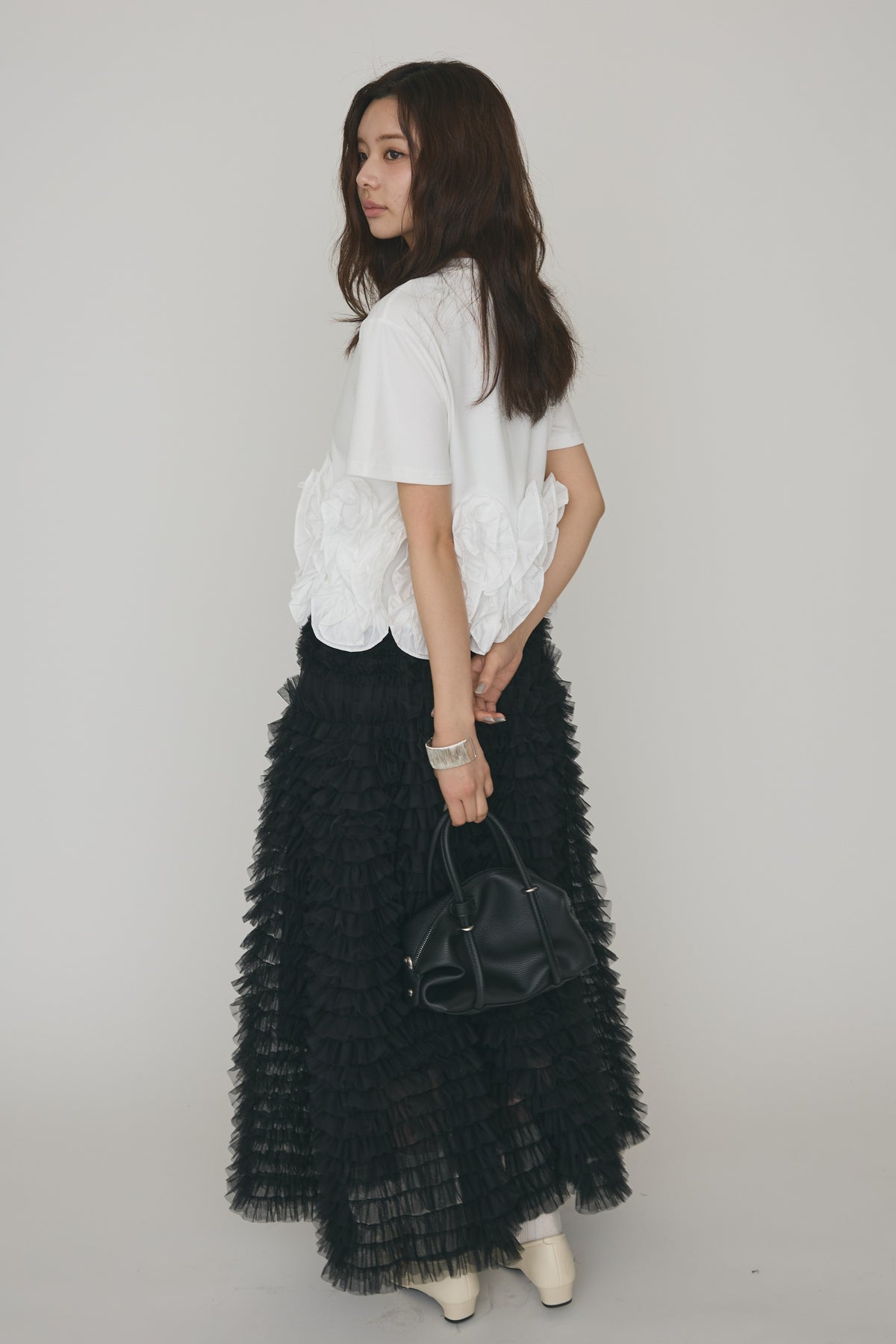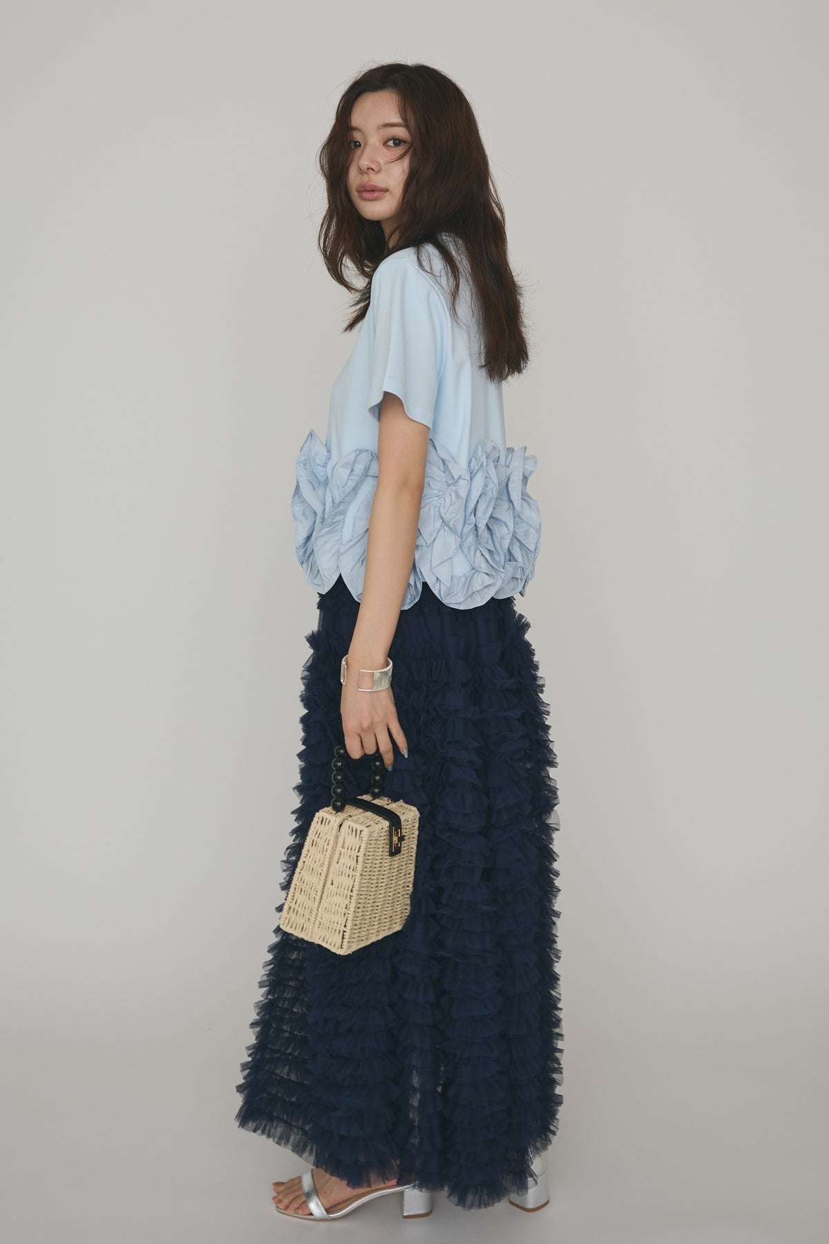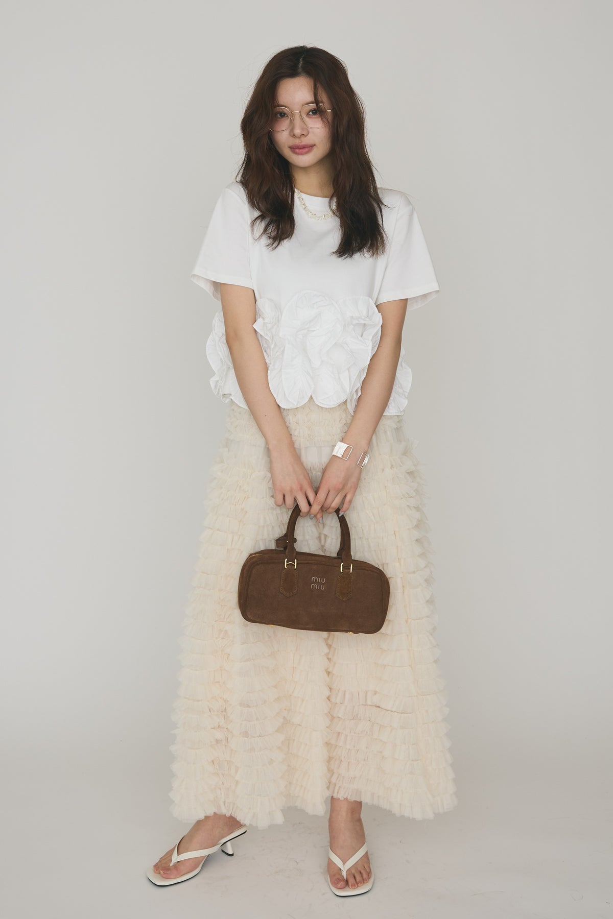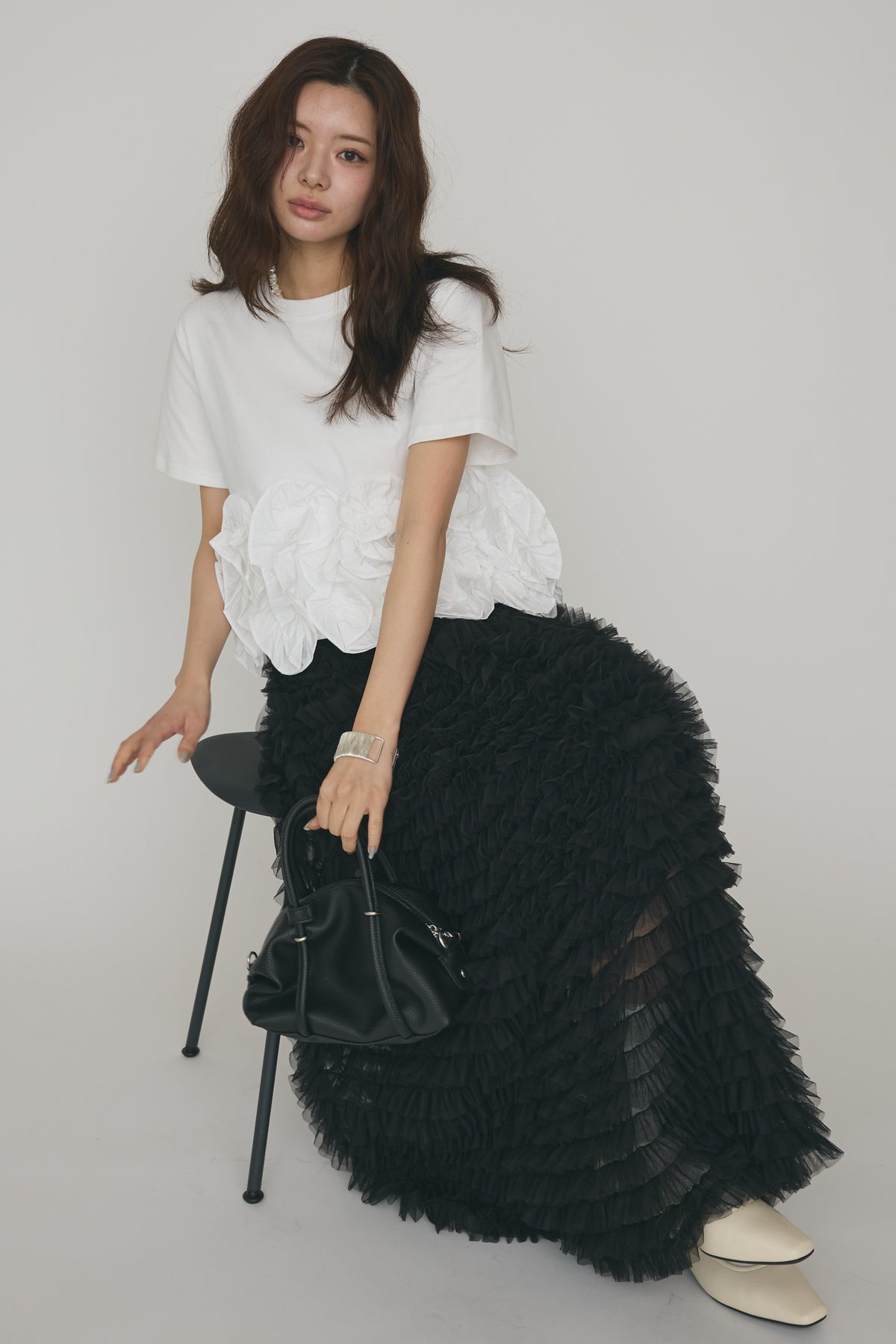 [予約/SET]フリルウェーブヘムカットTシャツ+ホイップチュールティアードスカート(2set)