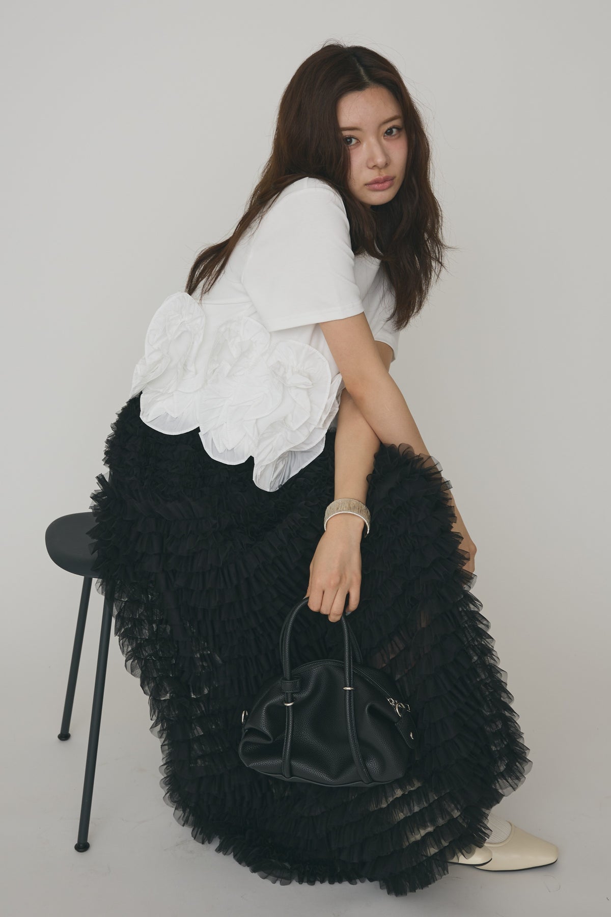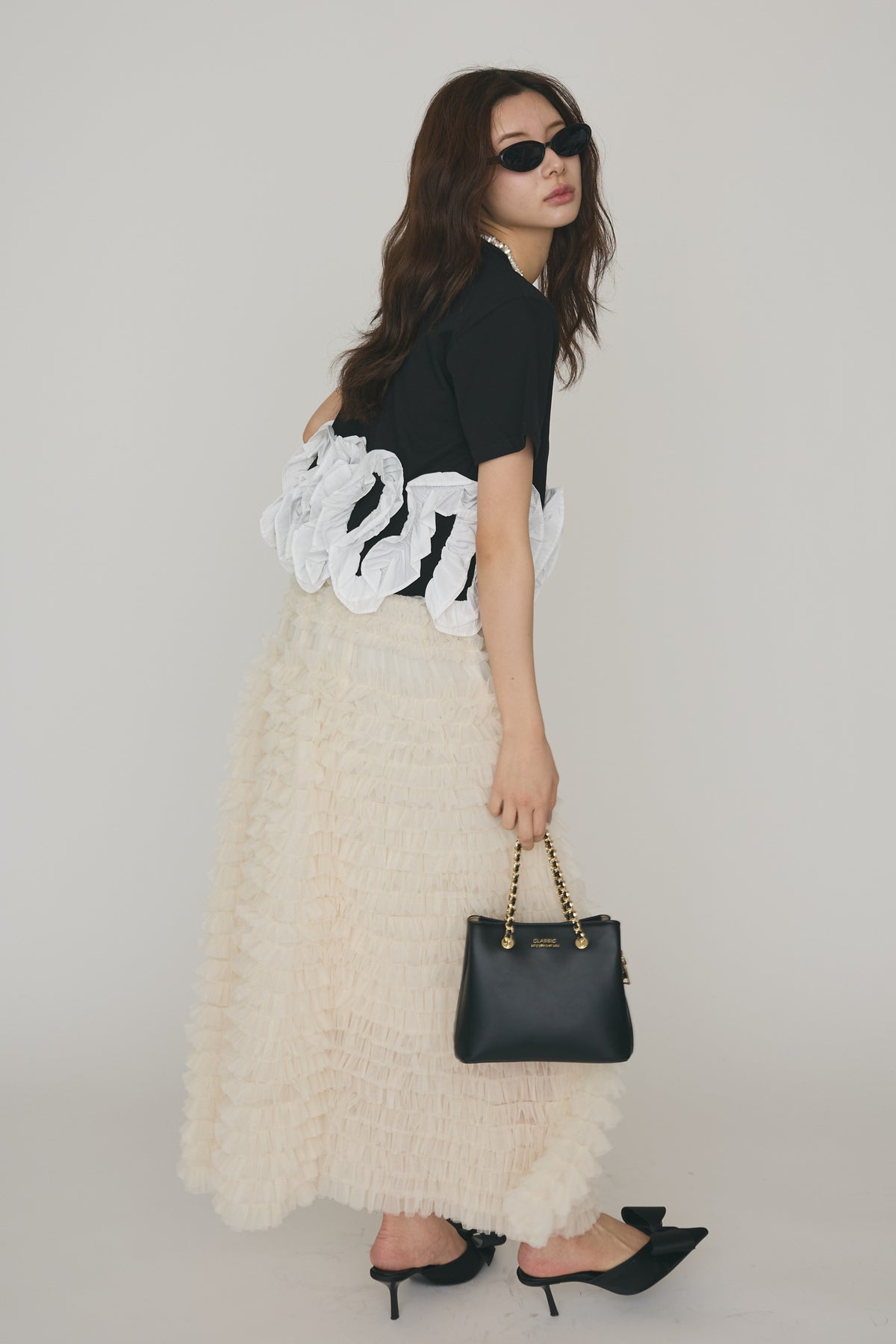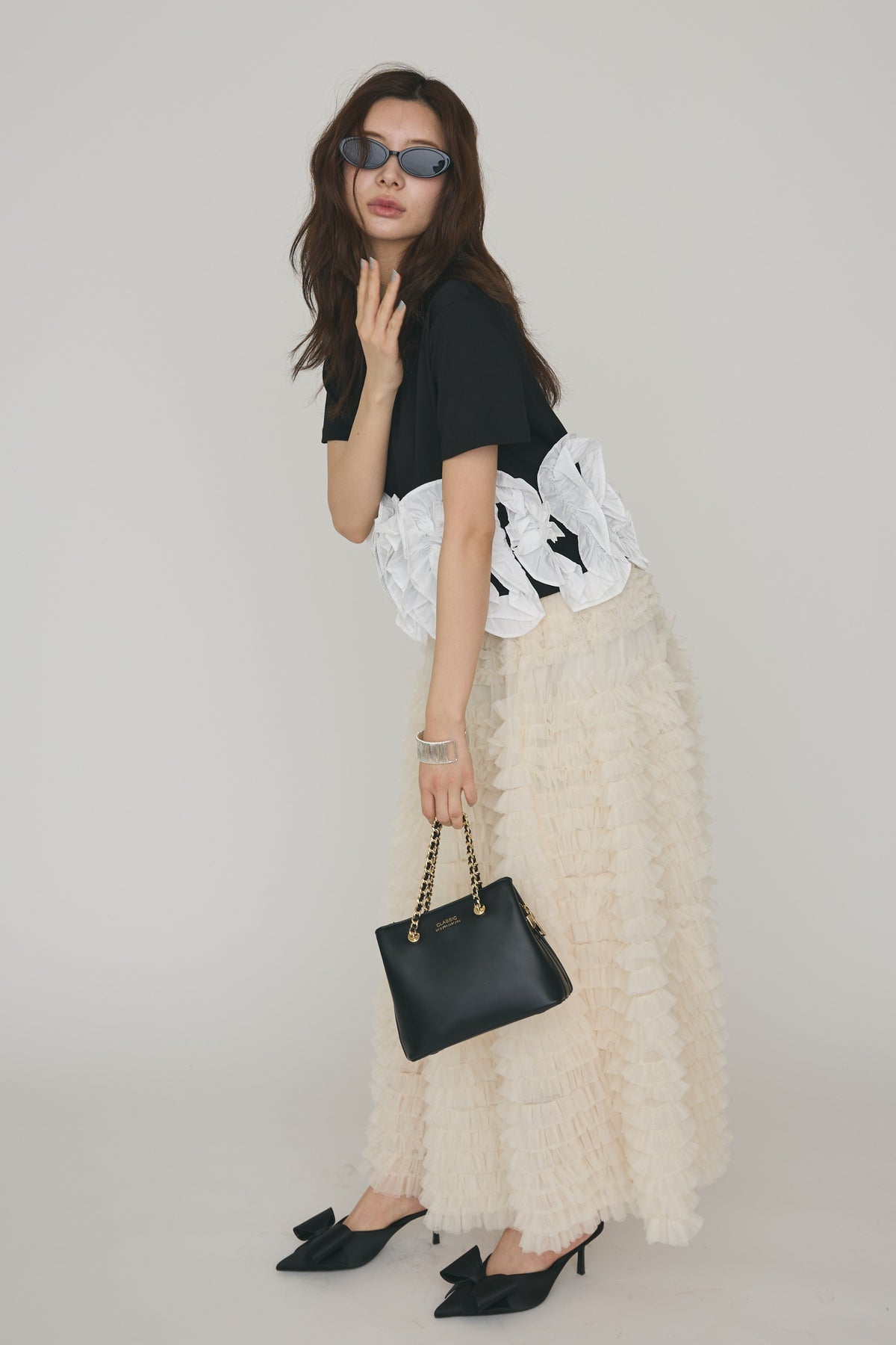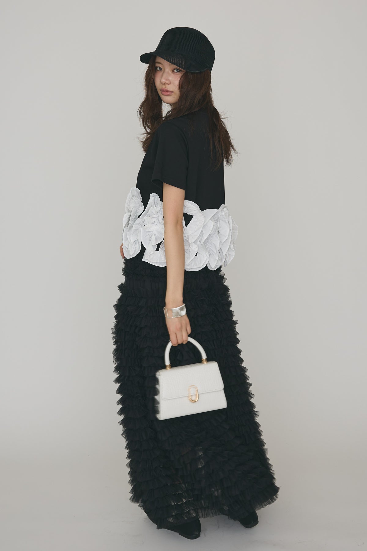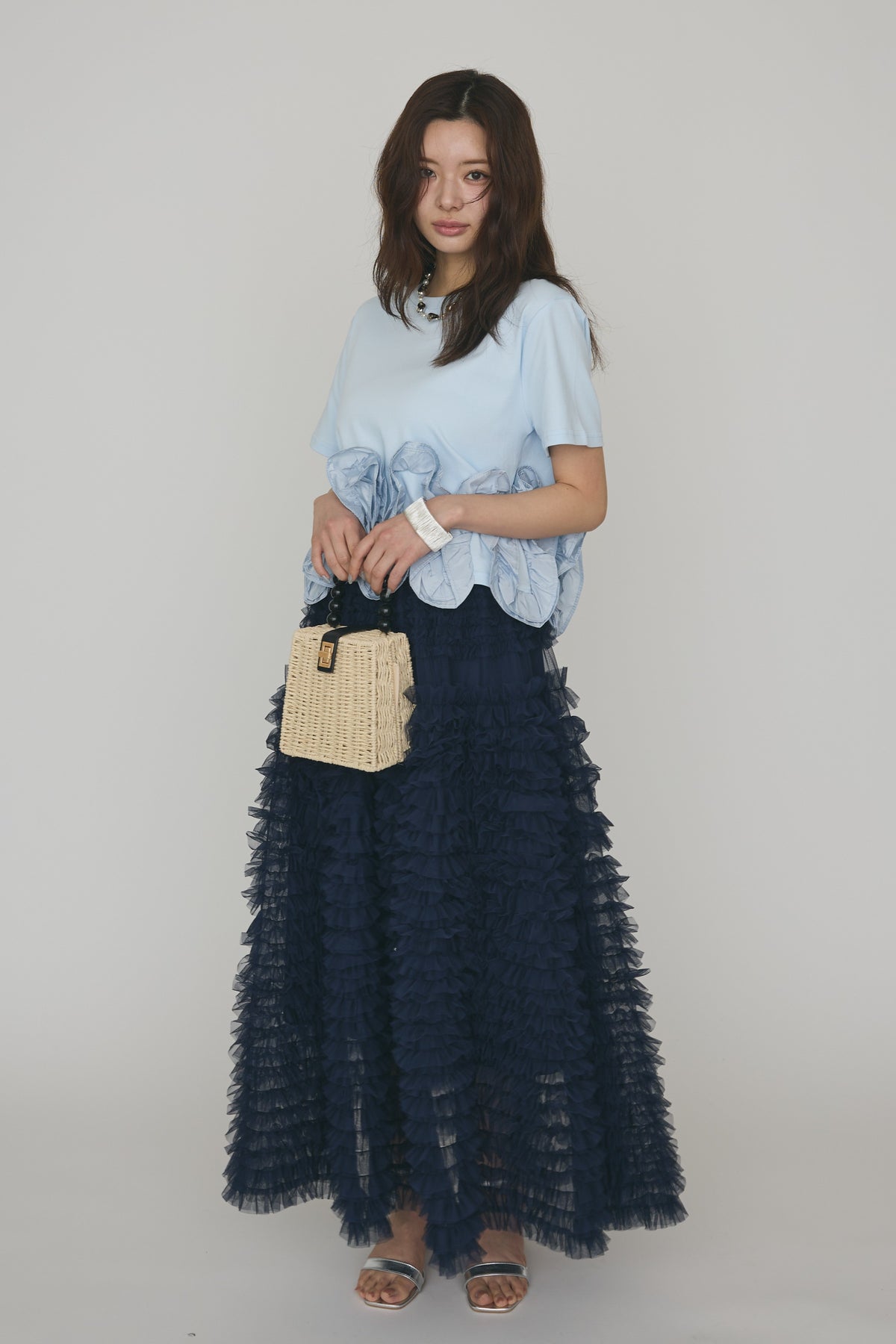 [予約/SET]フリルウェーブヘムカットTシャツ+ホイップチュールティアードスカート(2set)