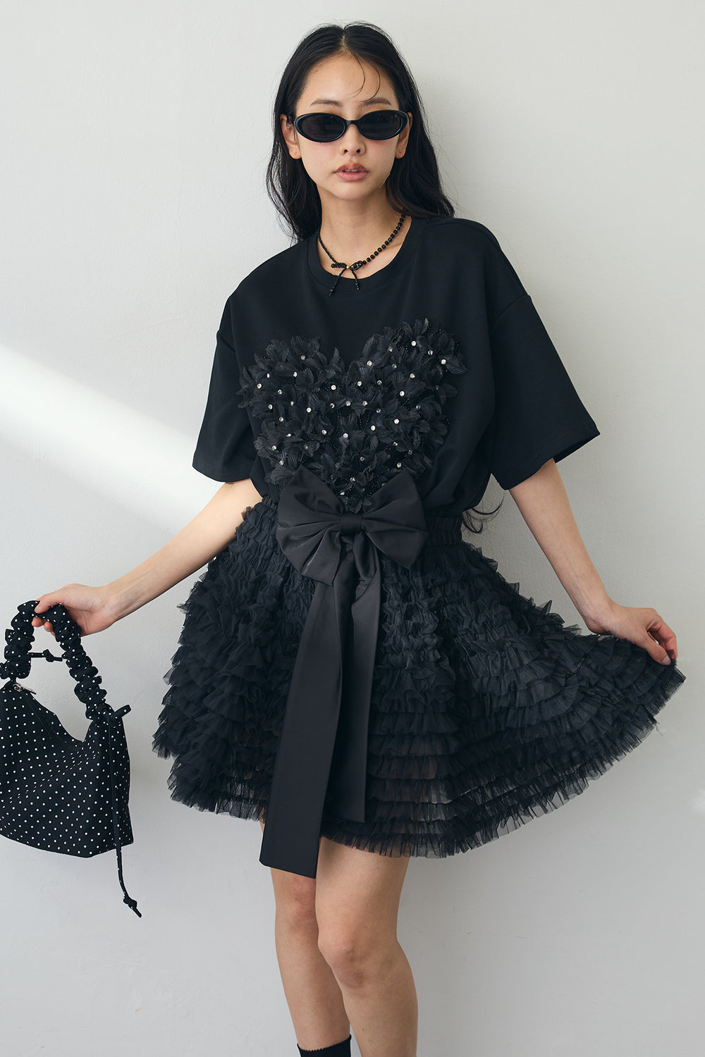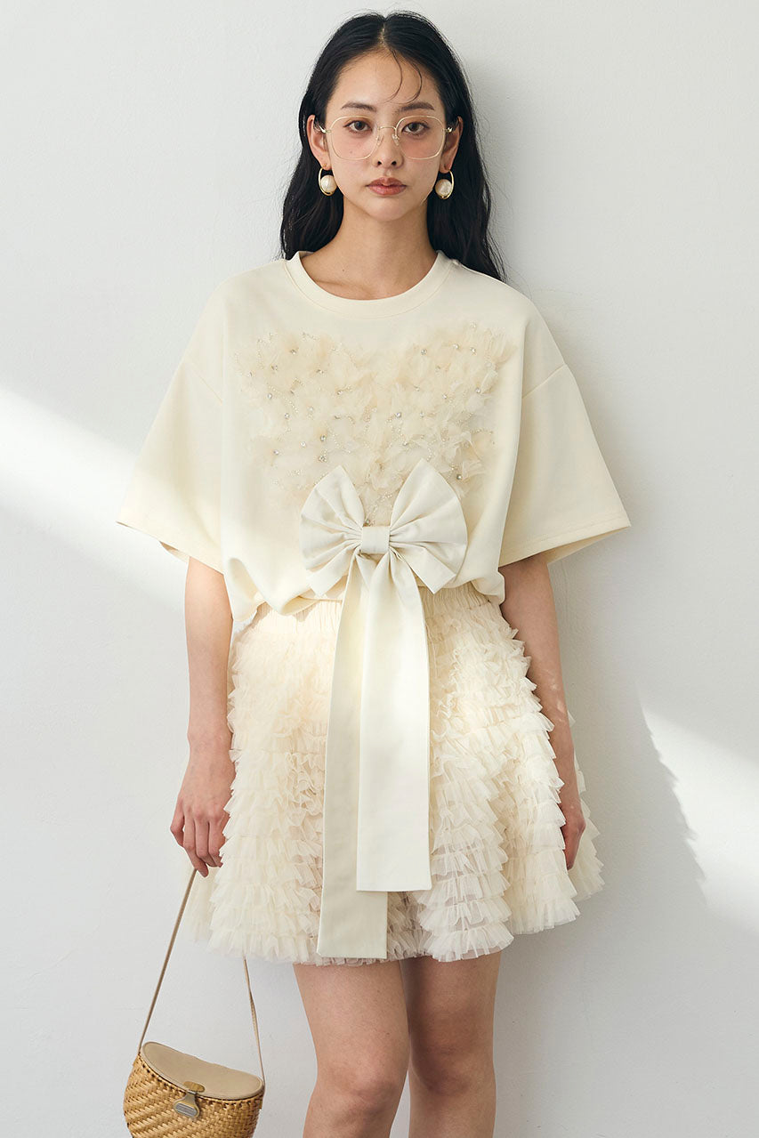 [予約/SET]フリルハートリボンTシャツ+ホイップチュールミニ丈スカート(2set)
