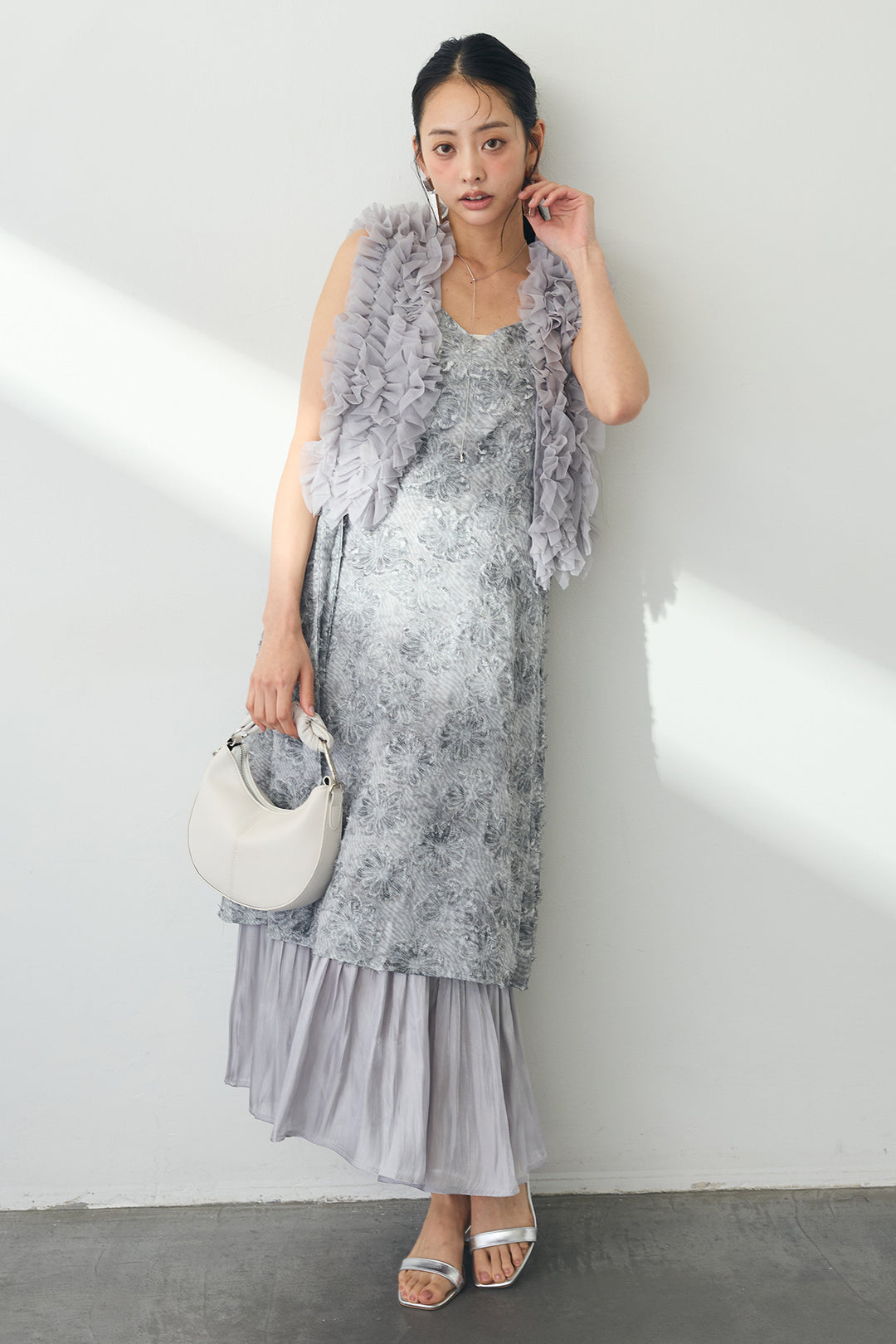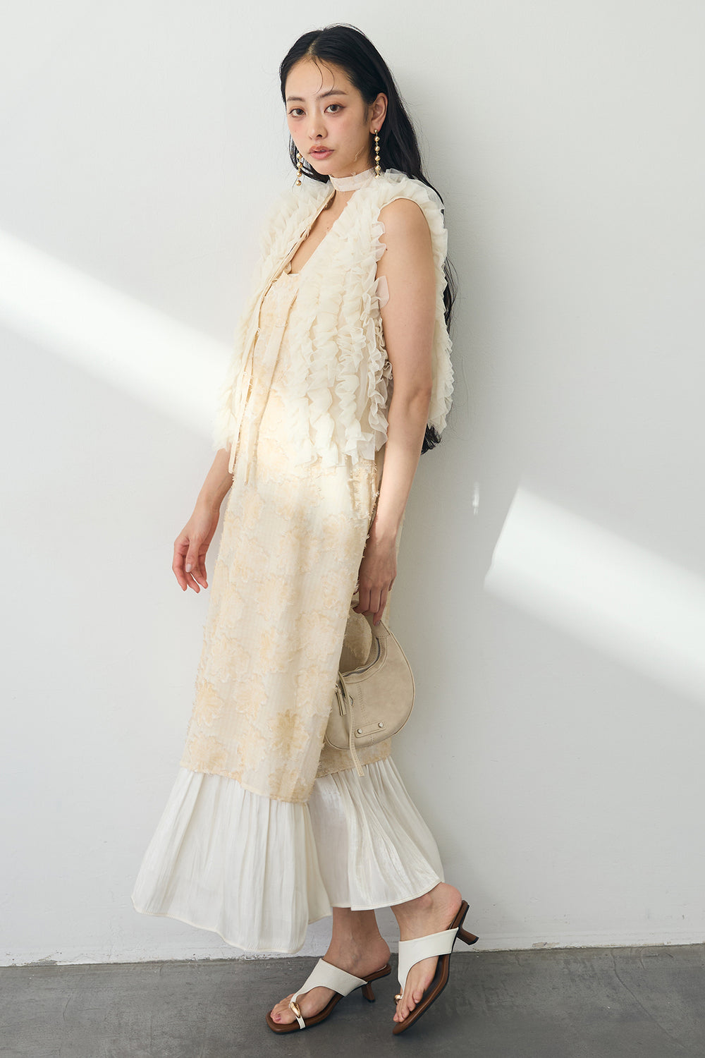 [予約/SET]ホイップチュール2wayベスト+フラワージャガードシャイニーヘムキャミワンピ(2set)