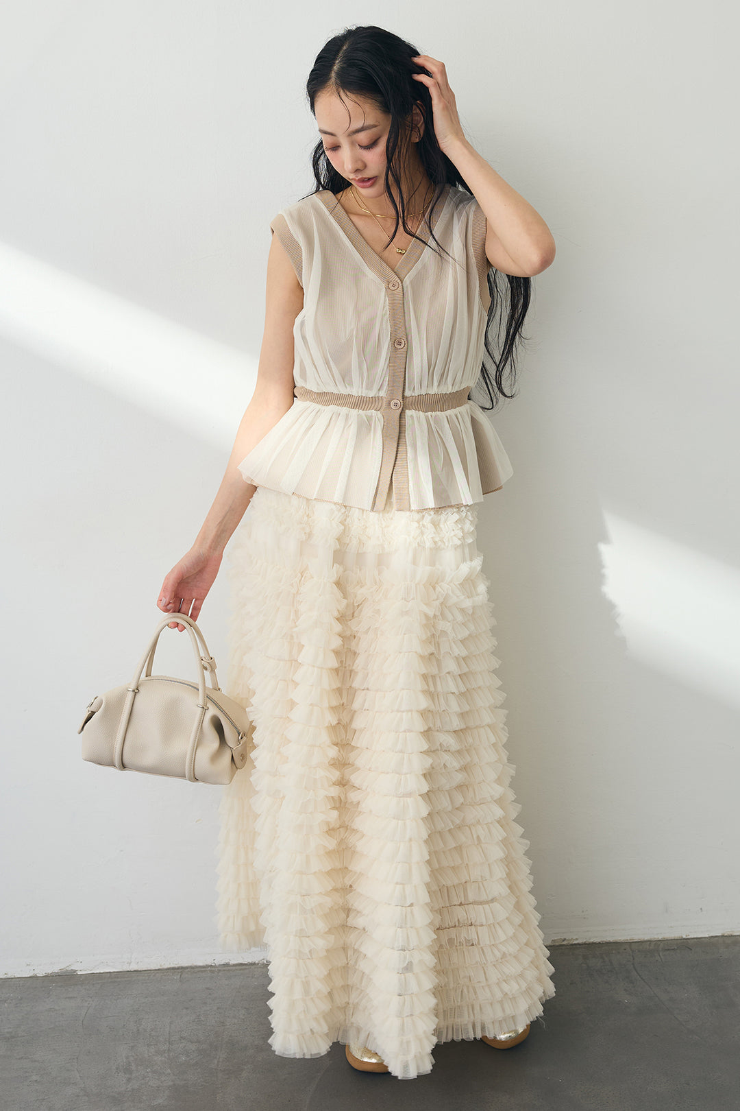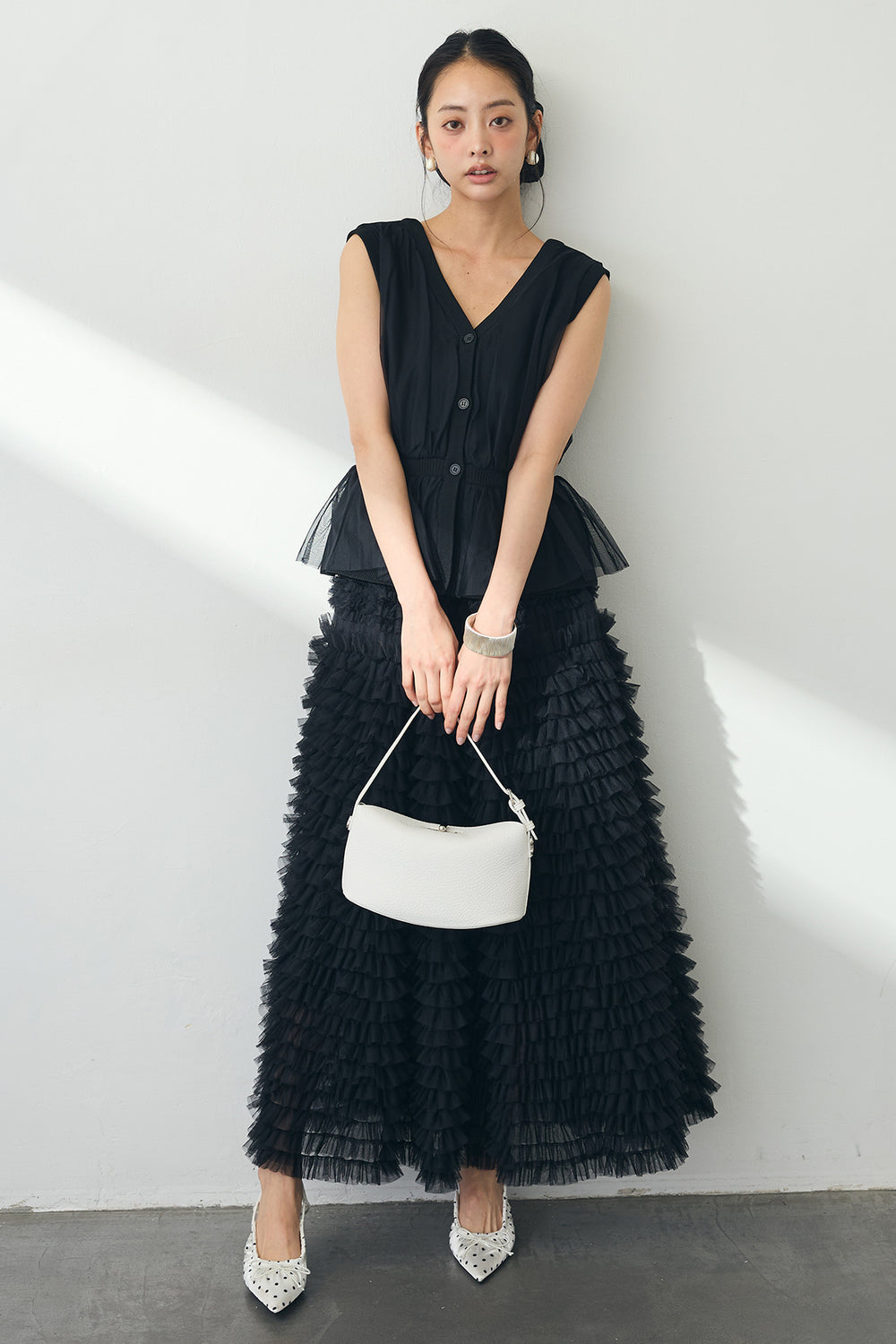 [予約/SET]チュールソフトペプラムトップス+ホイップチュールティアードスカート(2set)
