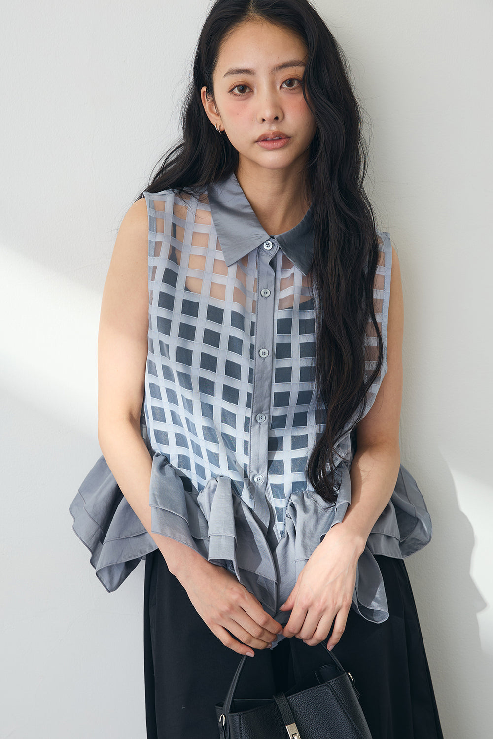 [予約]シアーチェックフリルヘムシャツ