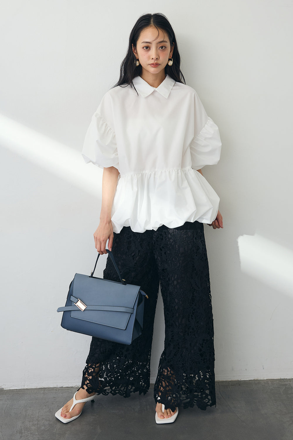 [予約/SET]刺繍ローンバルーンヘムブラウス+フラワー刺繍ローンイージーパンツ(2set)