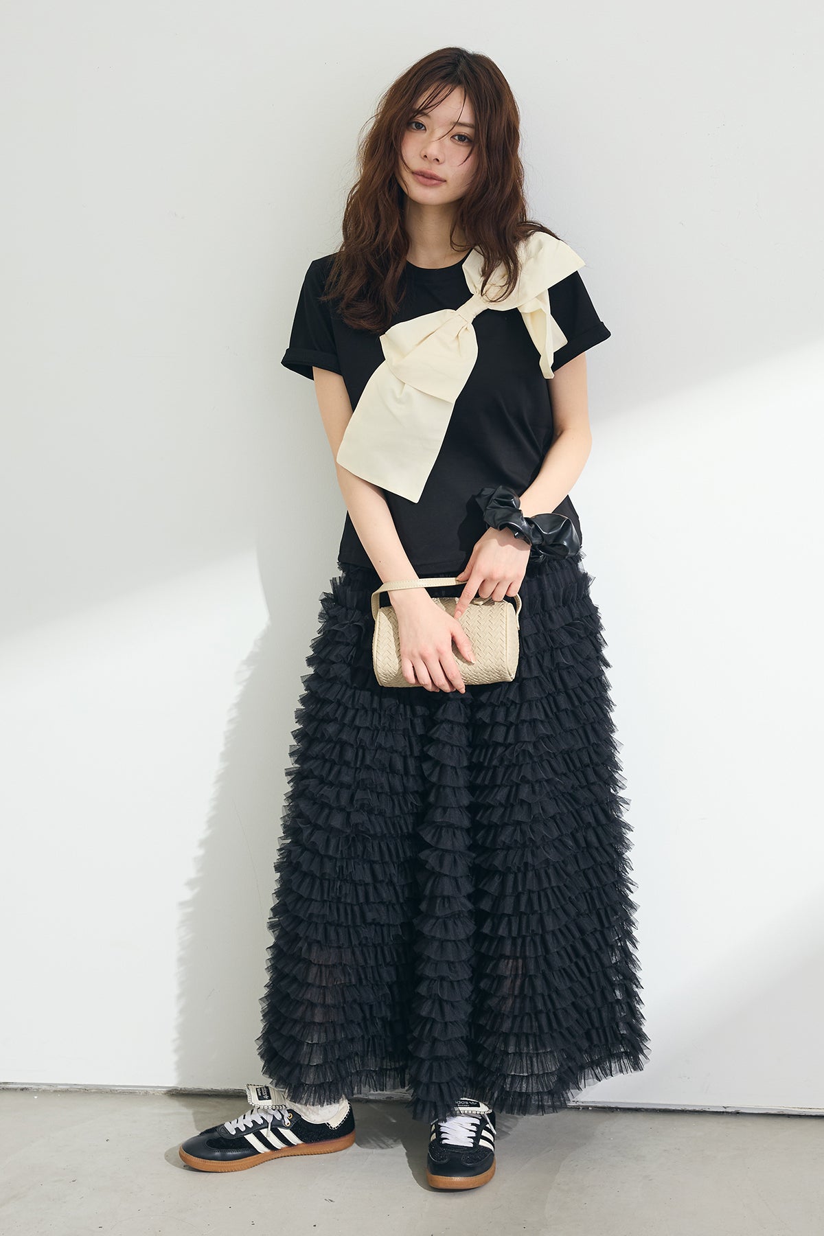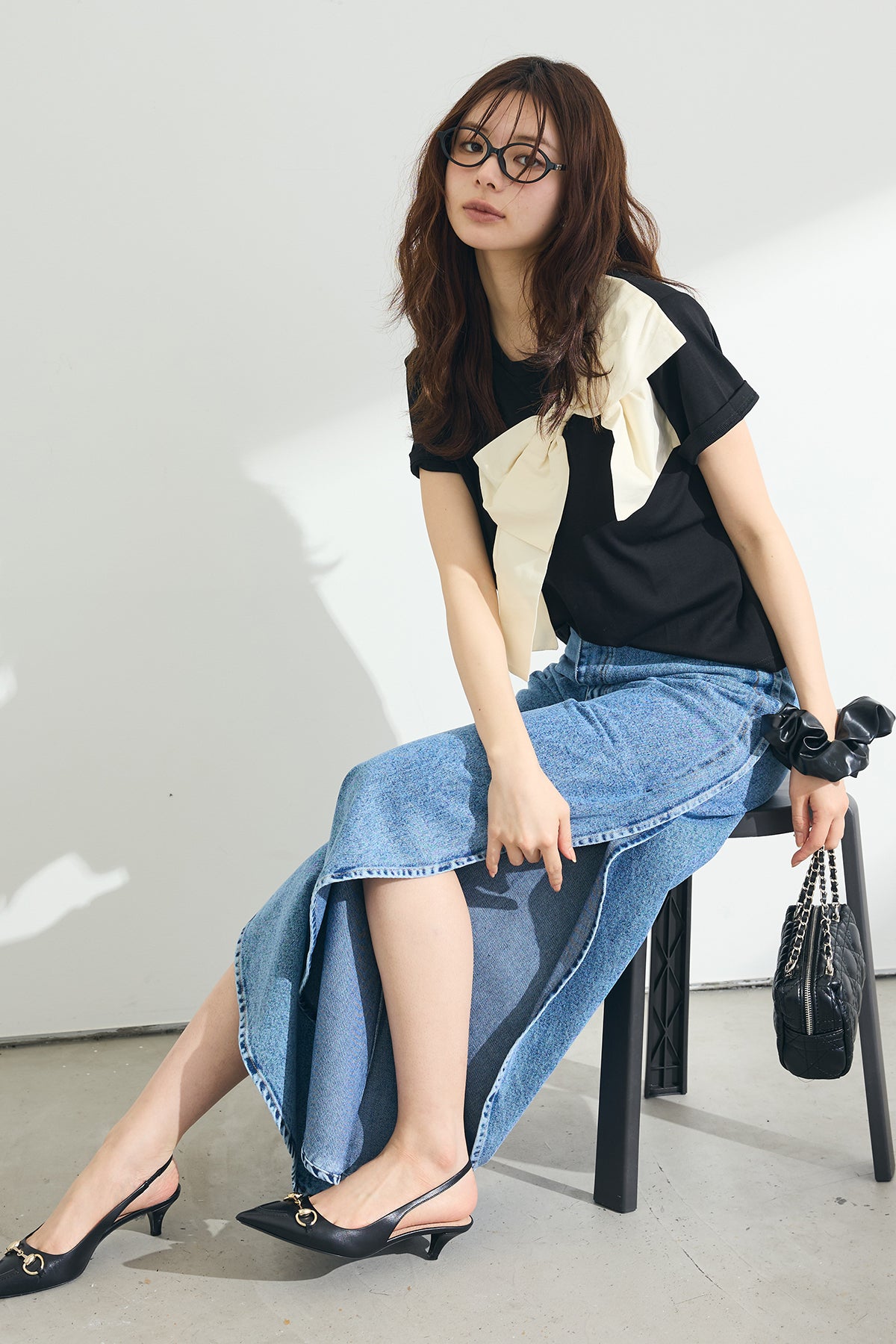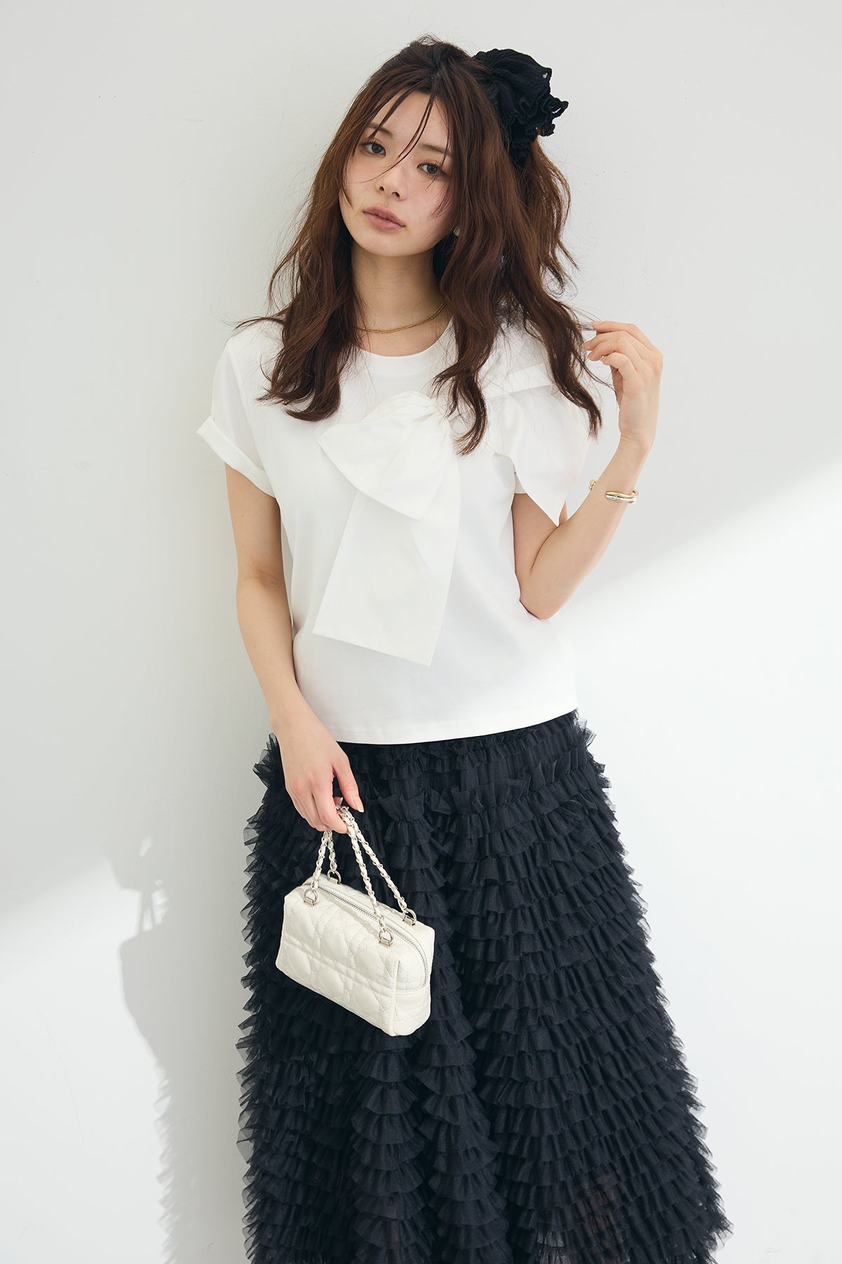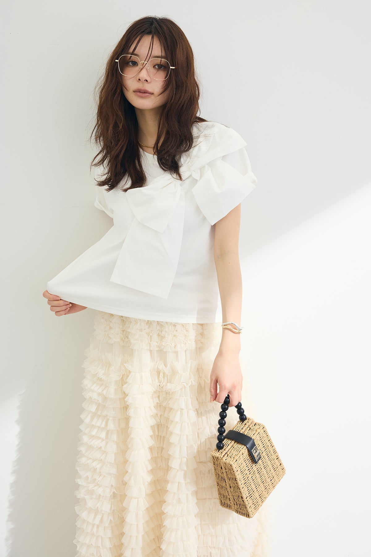 [予約]ショルダーリボンポイントTシャツを含んだコーデセット商品を探す↓