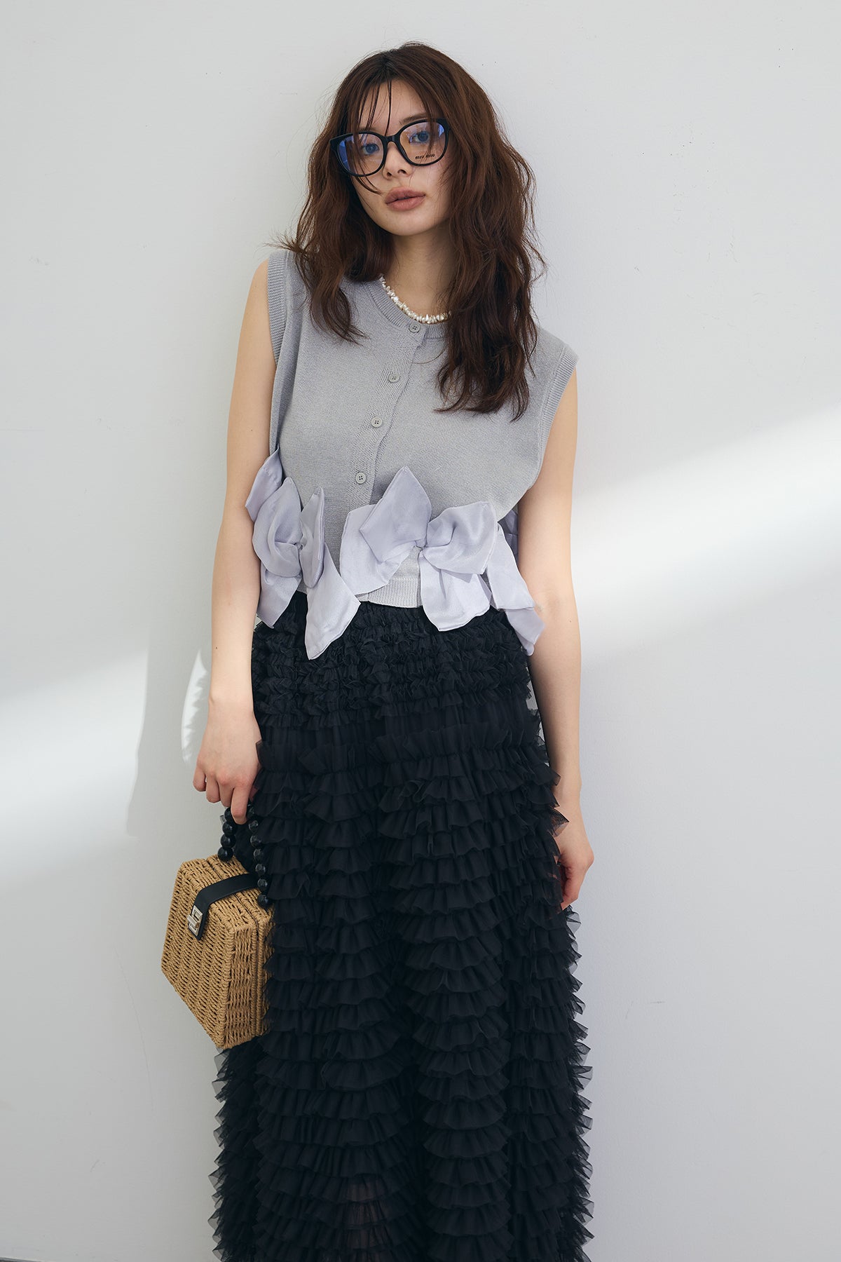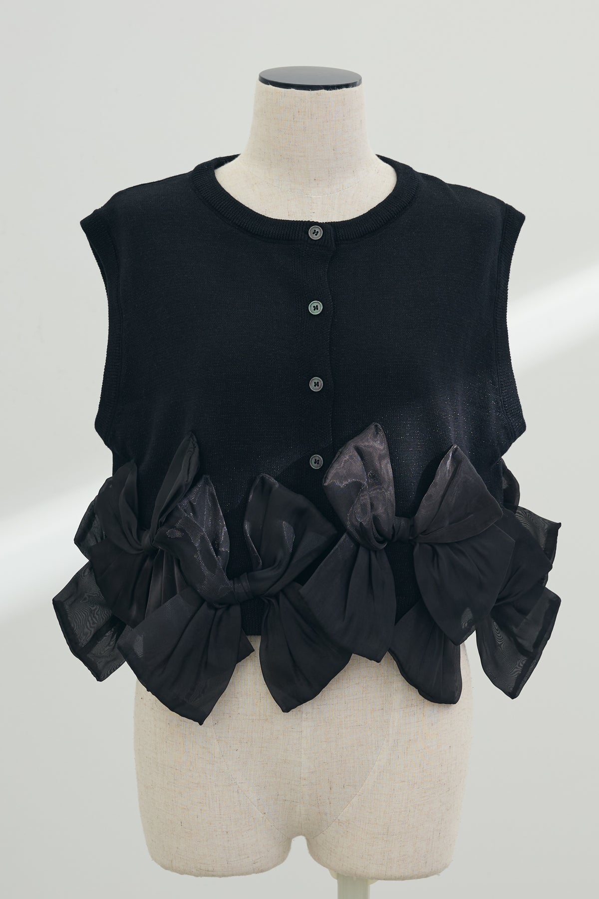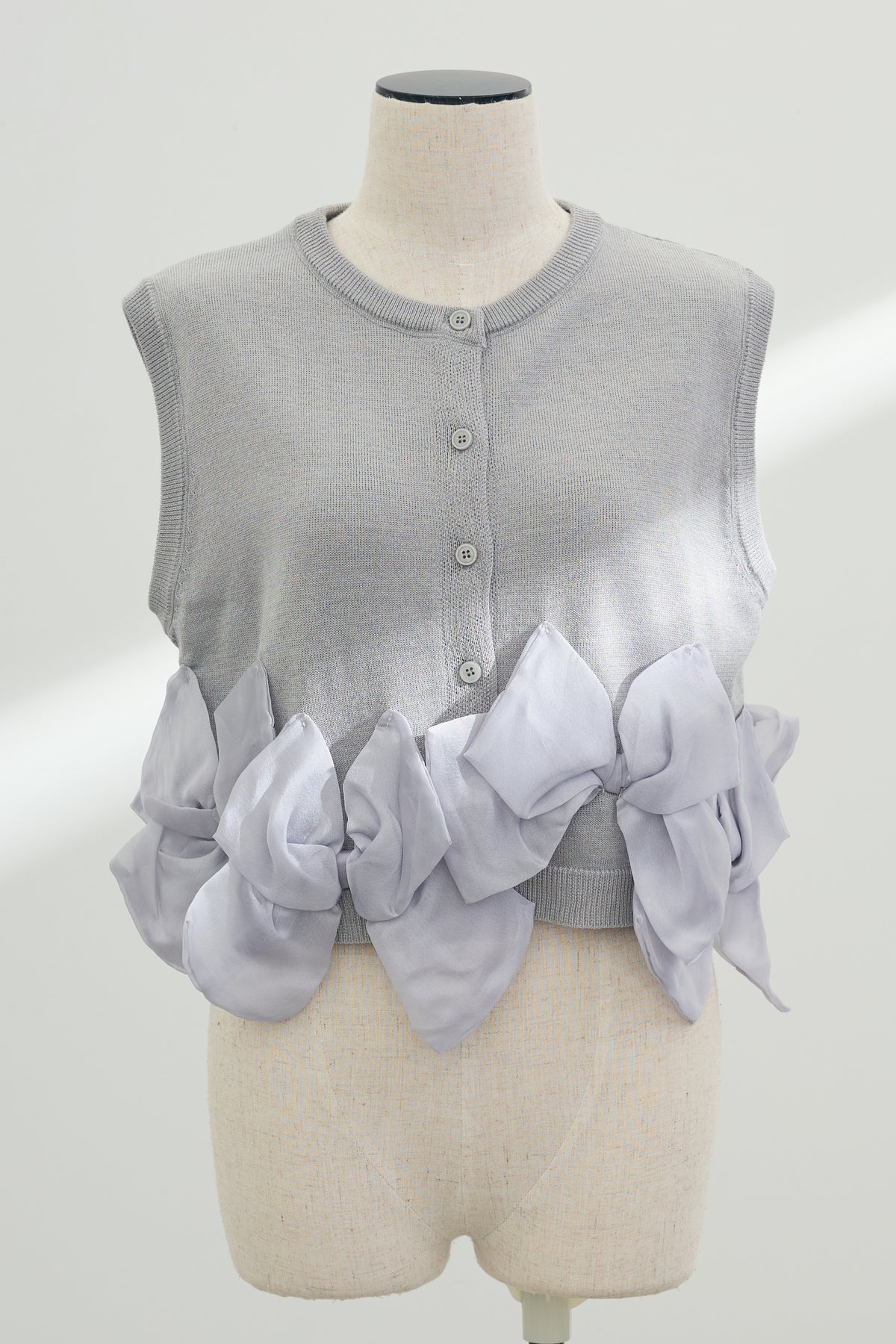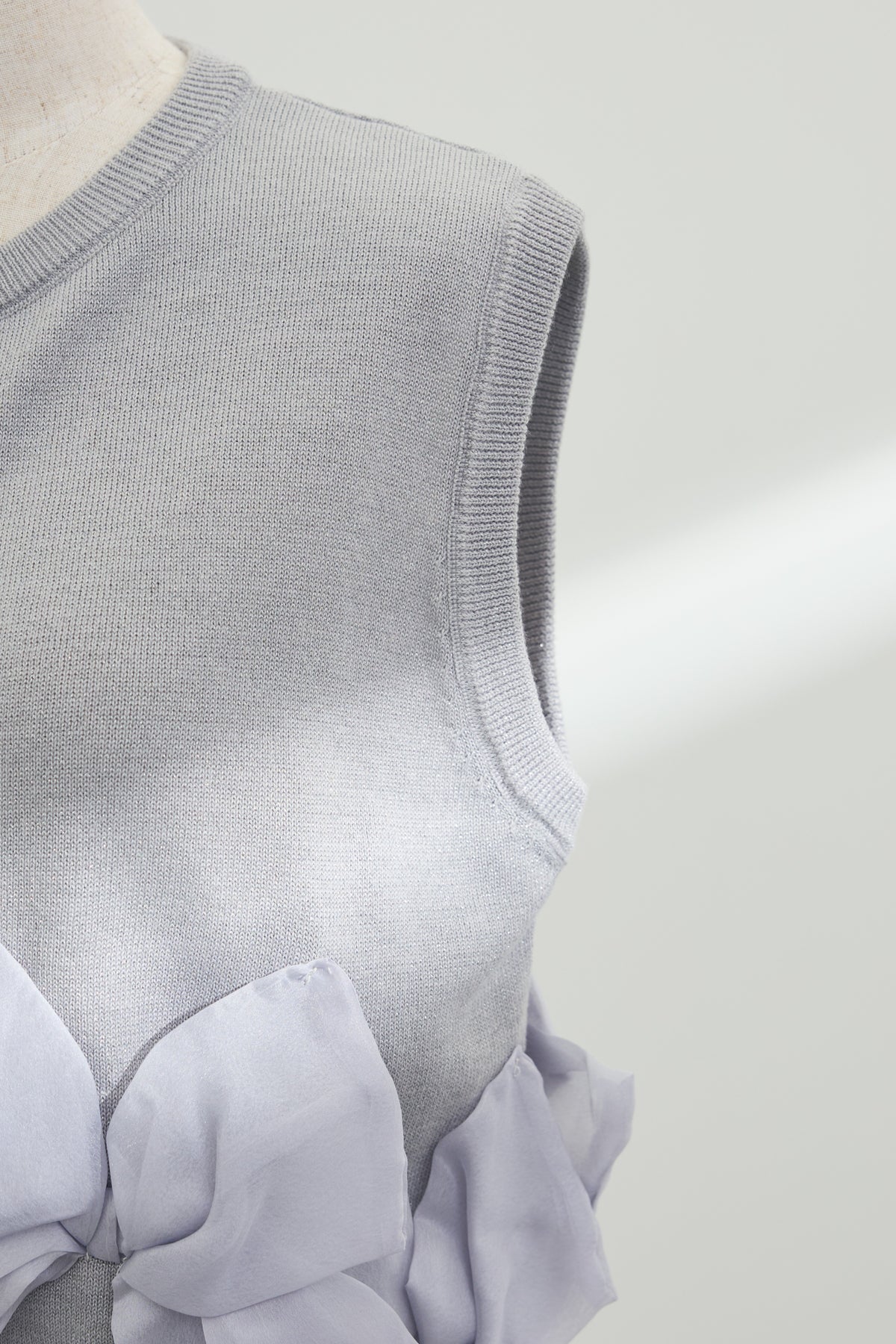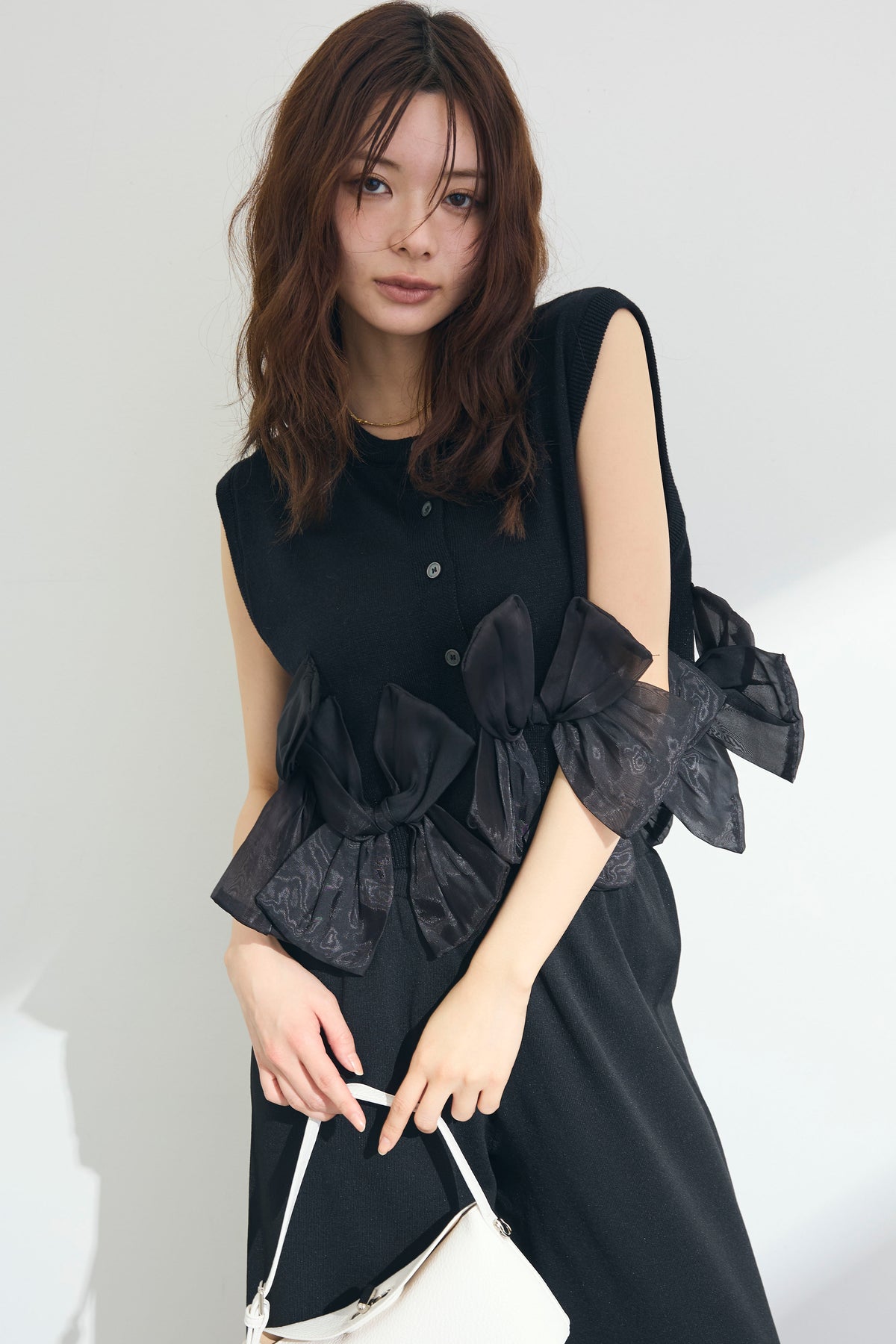 [予約]ヘムオーガンジーリボンスリーブレスニット