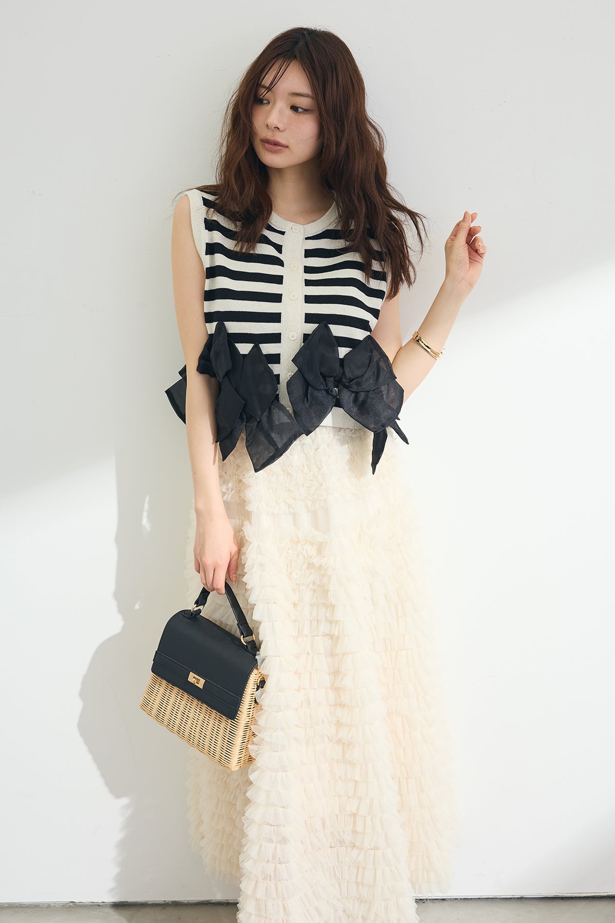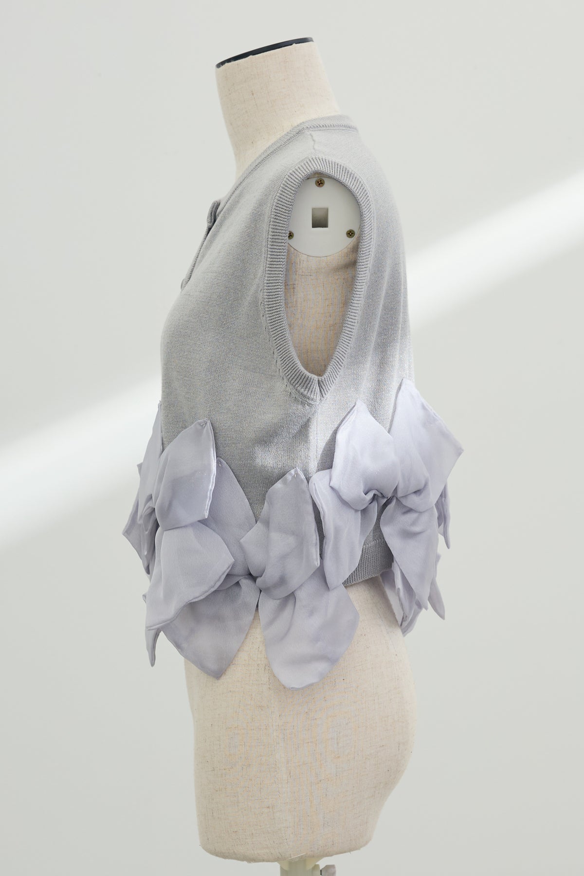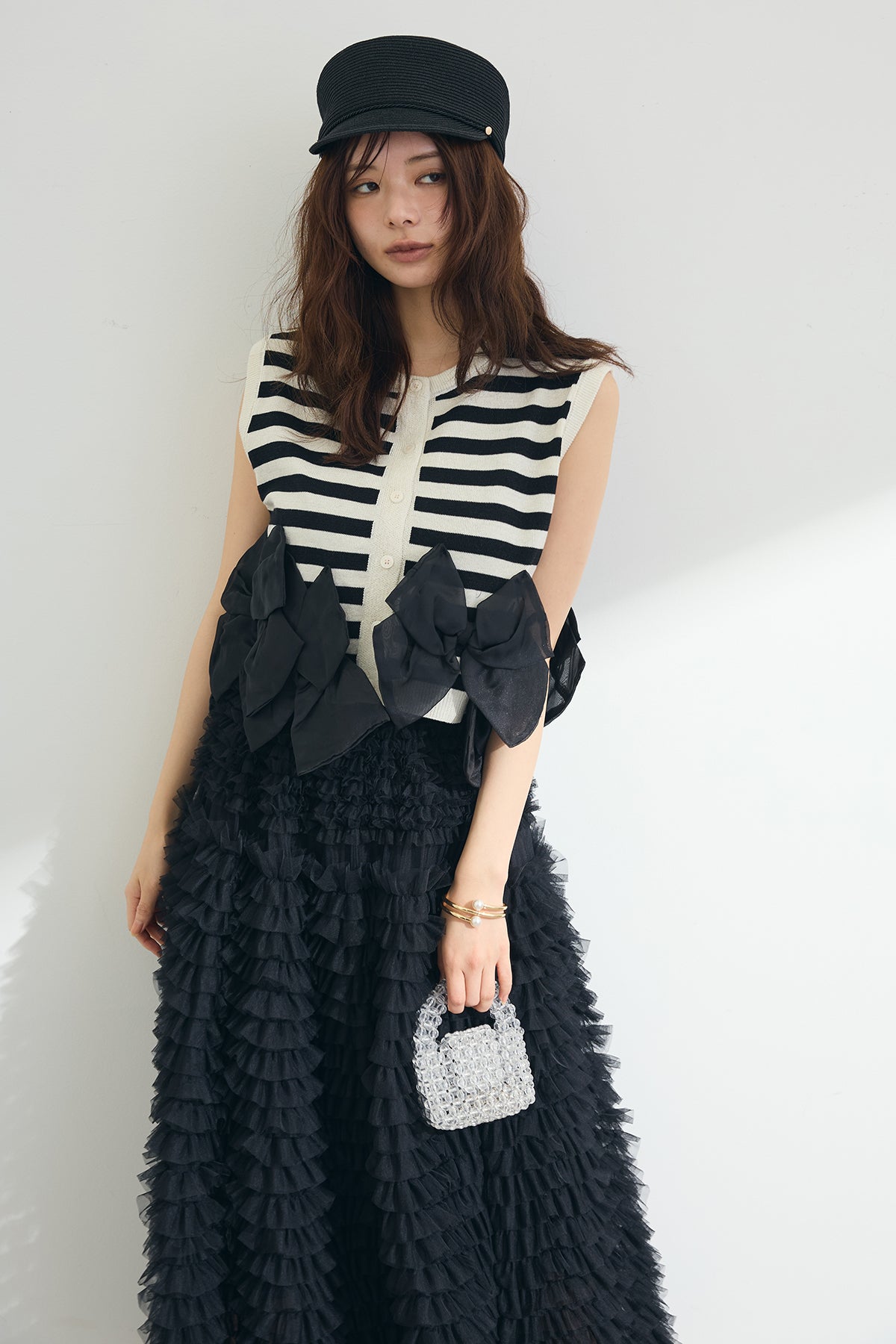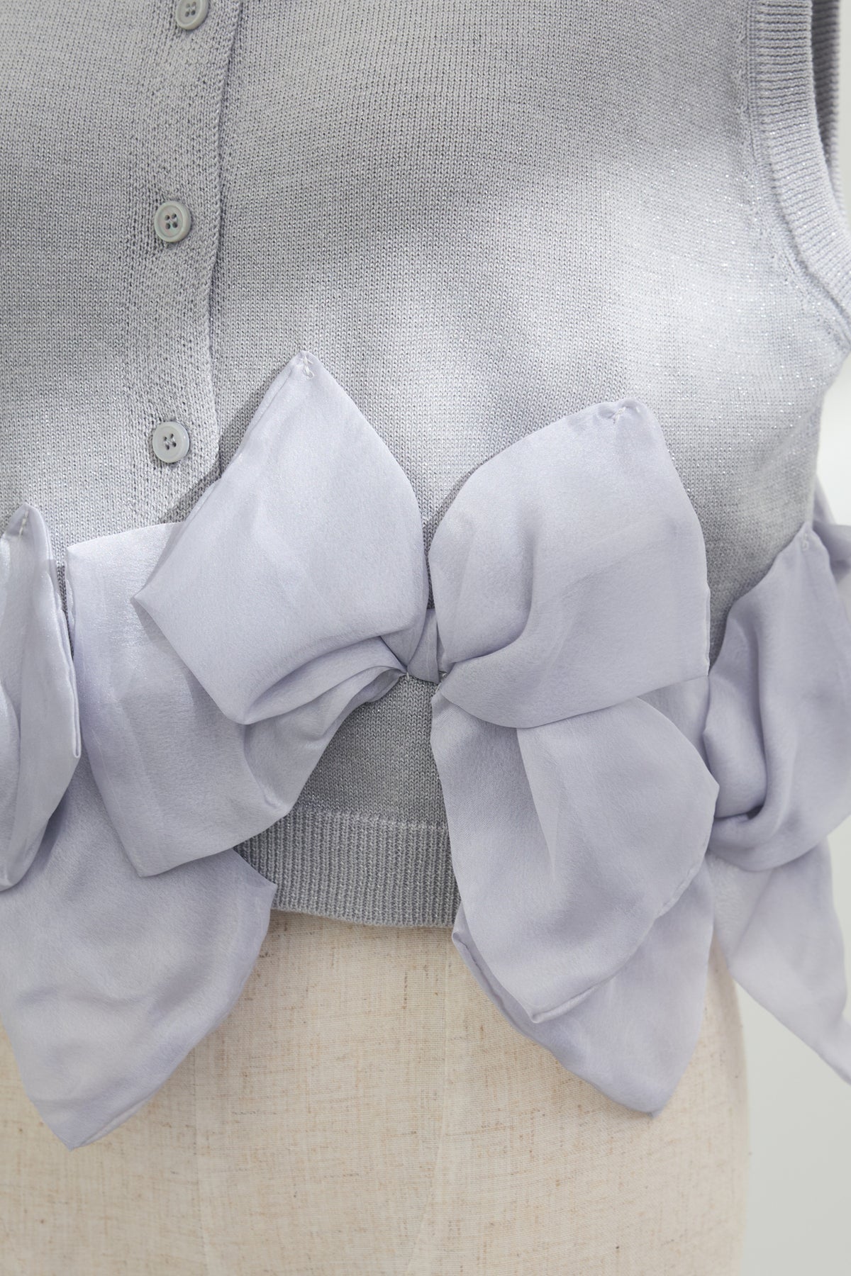 [予約]ヘムオーガンジーリボンスリーブレスニット