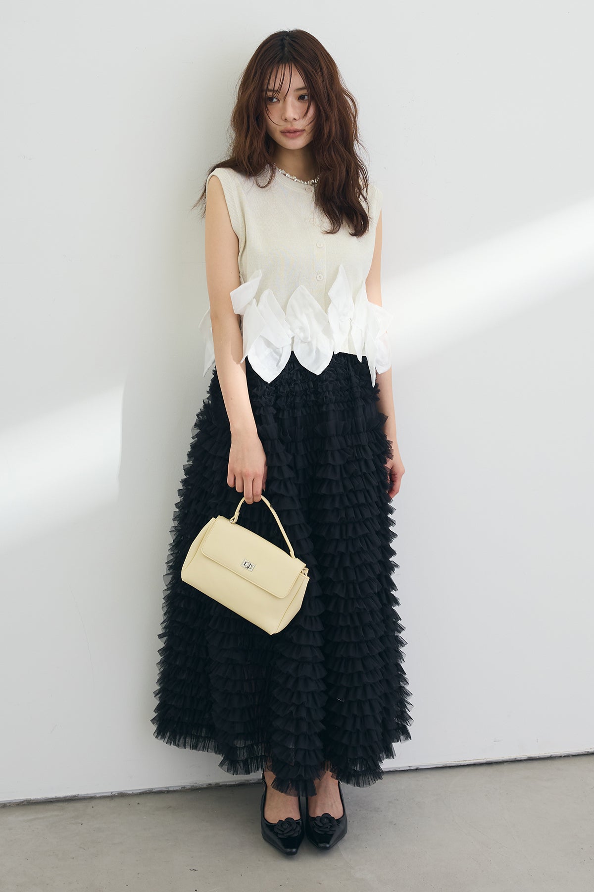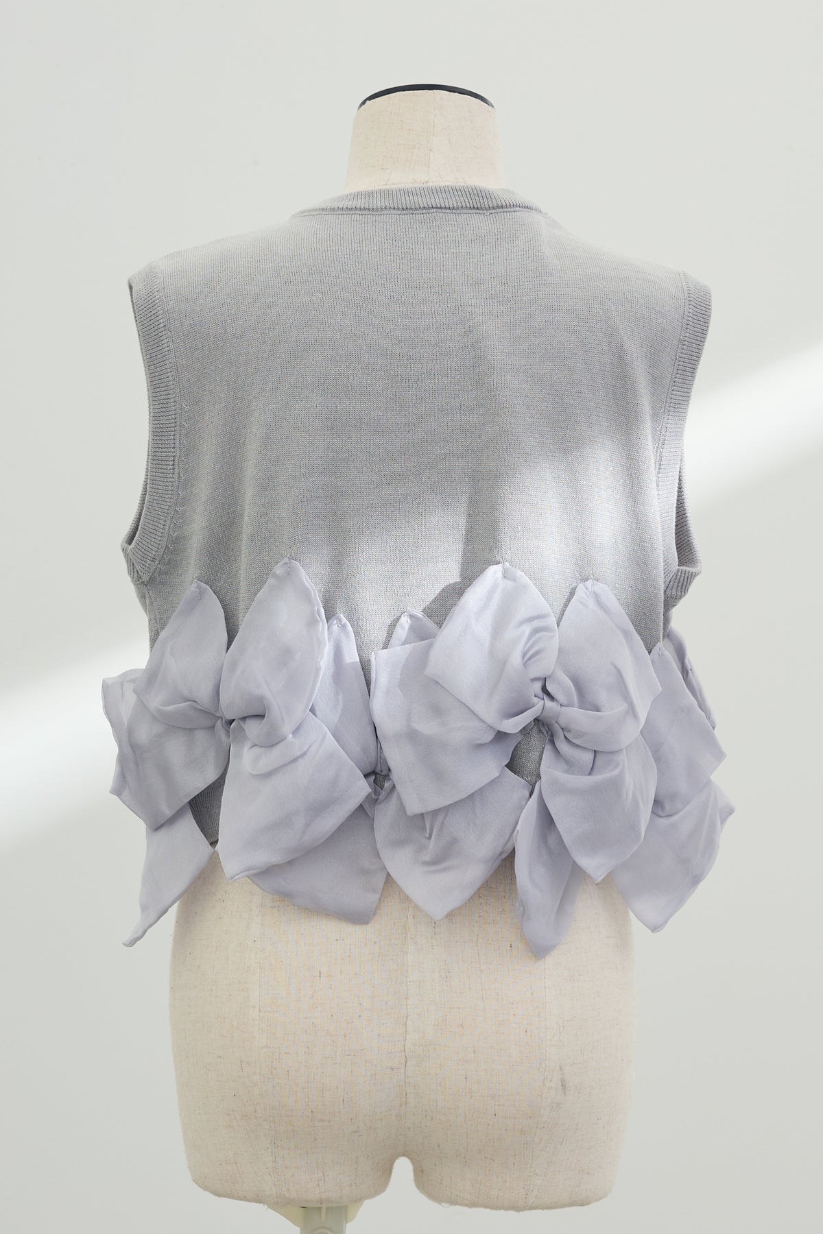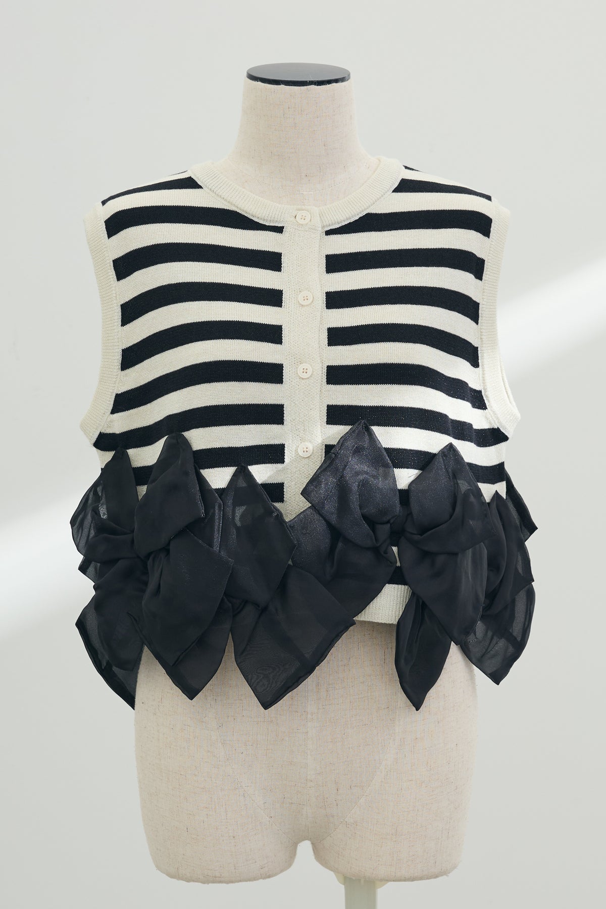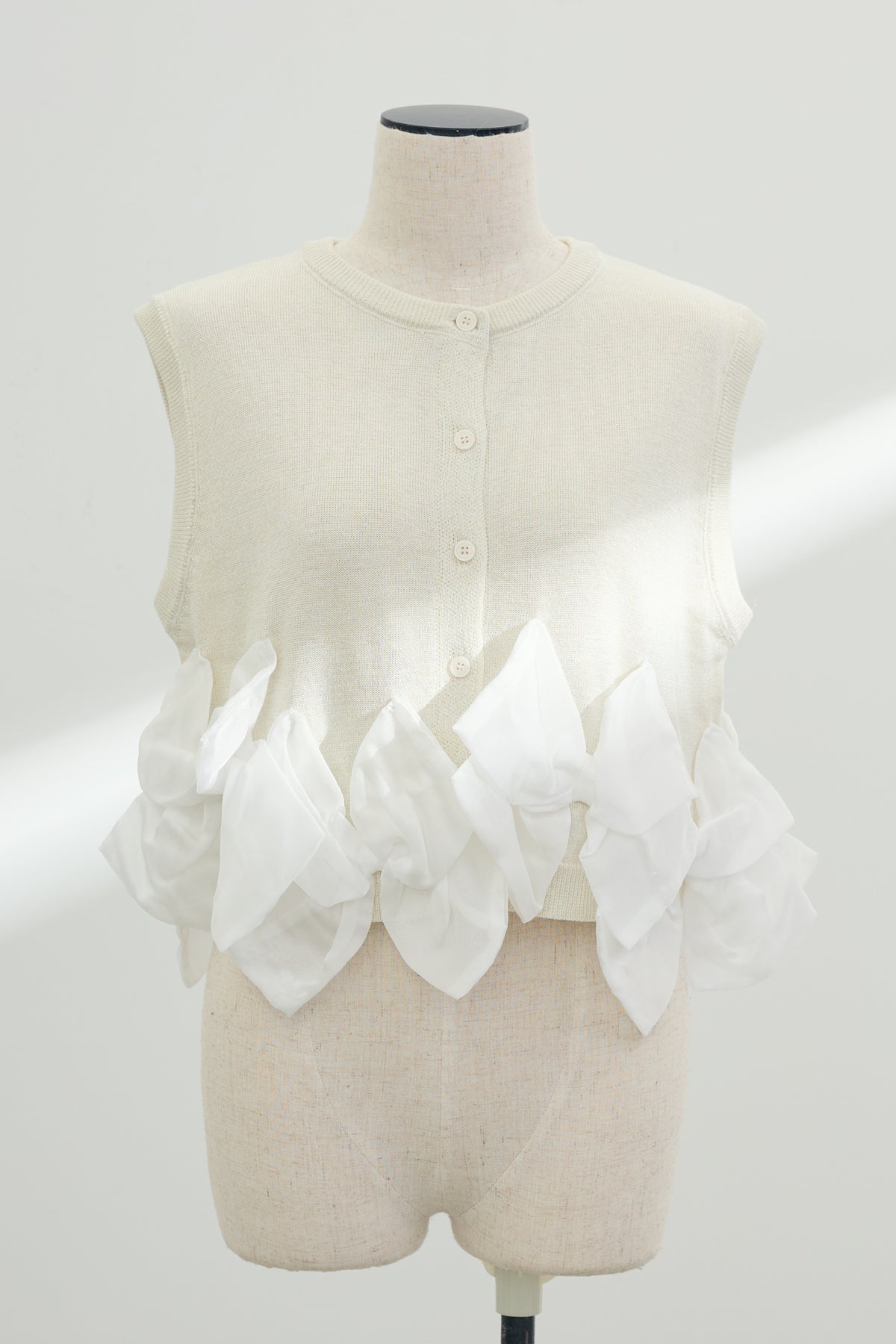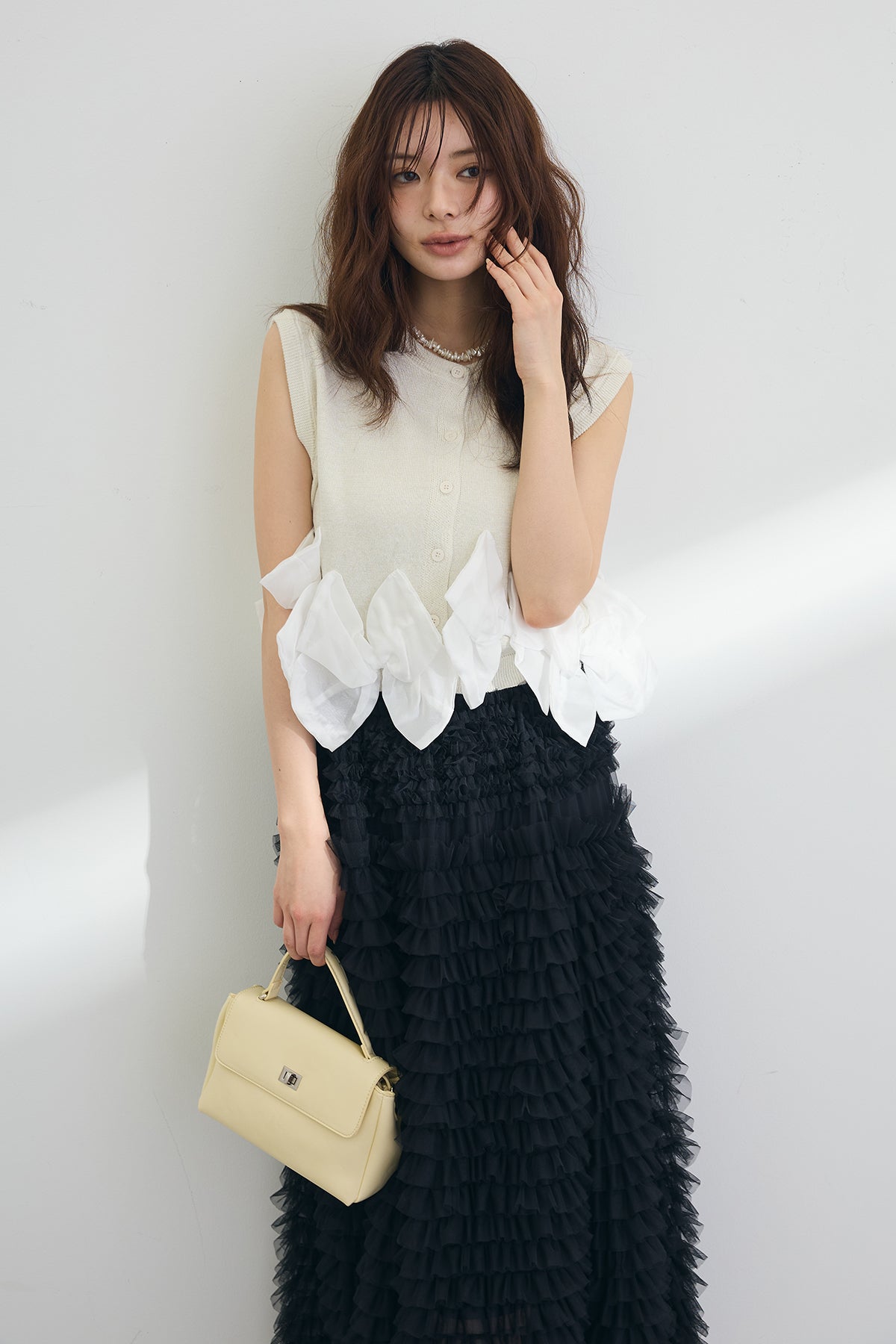 [予約]ヘムオーガンジーリボンスリーブレスニット