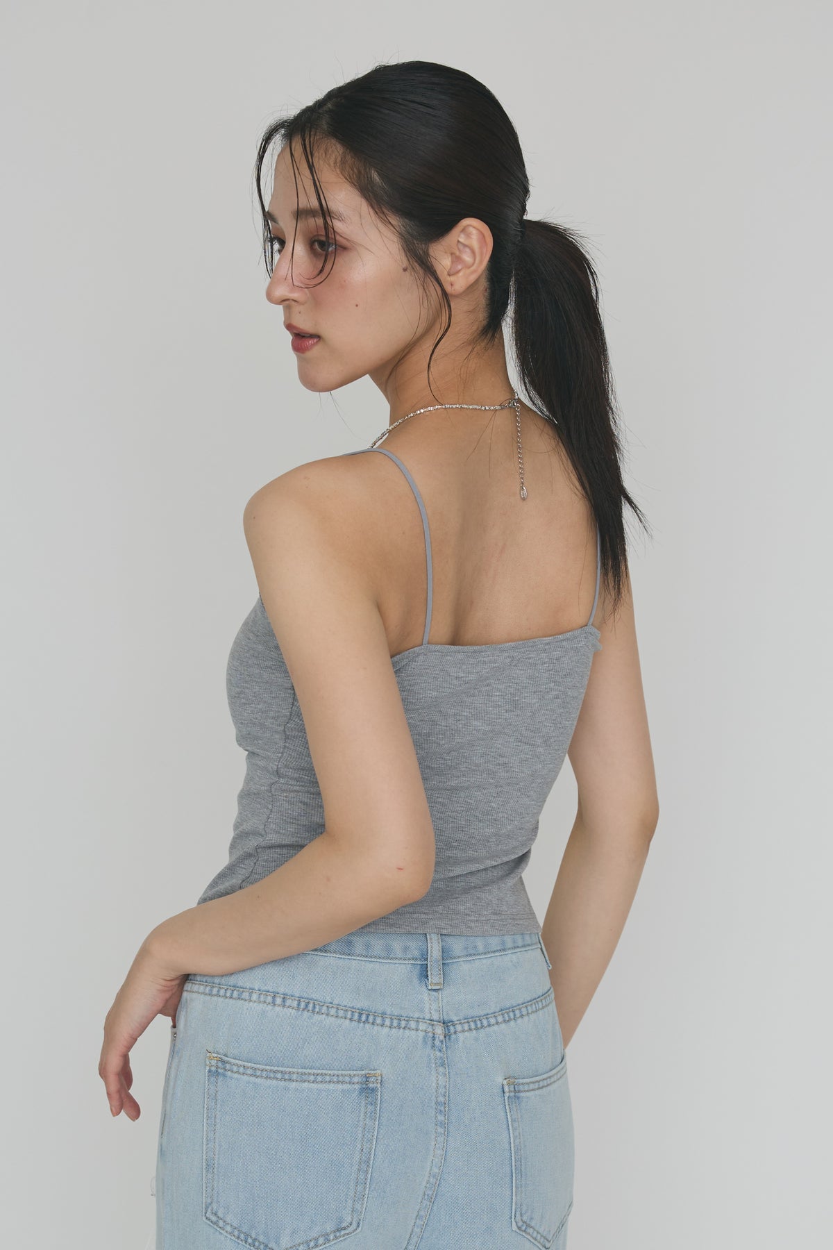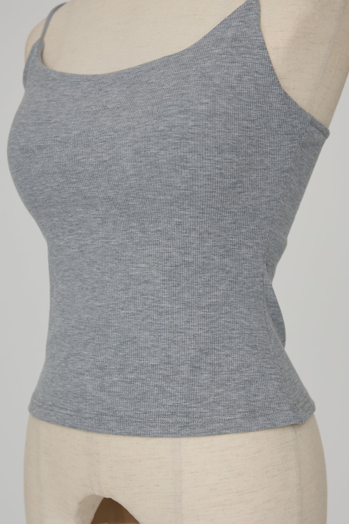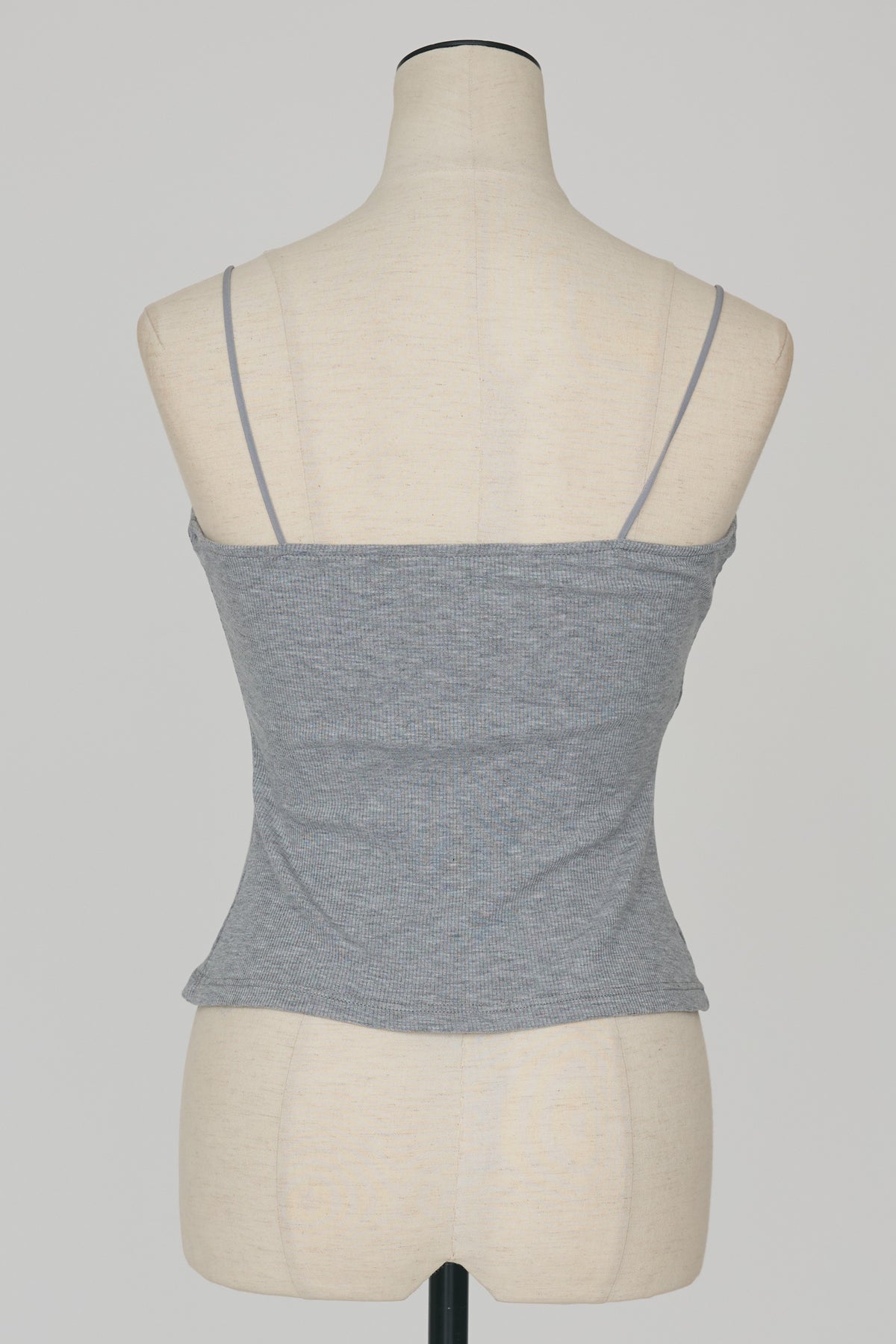 華奢なストラップとヘルシーな胸元のカットが女性らしさを引き立てる一枚。 パッド付きなので下着を気にせずこれだけで綺麗に決まります。 シアーシャツのインナーで見せたりジャケットを羽織って大人っぽく着回すのが便利。