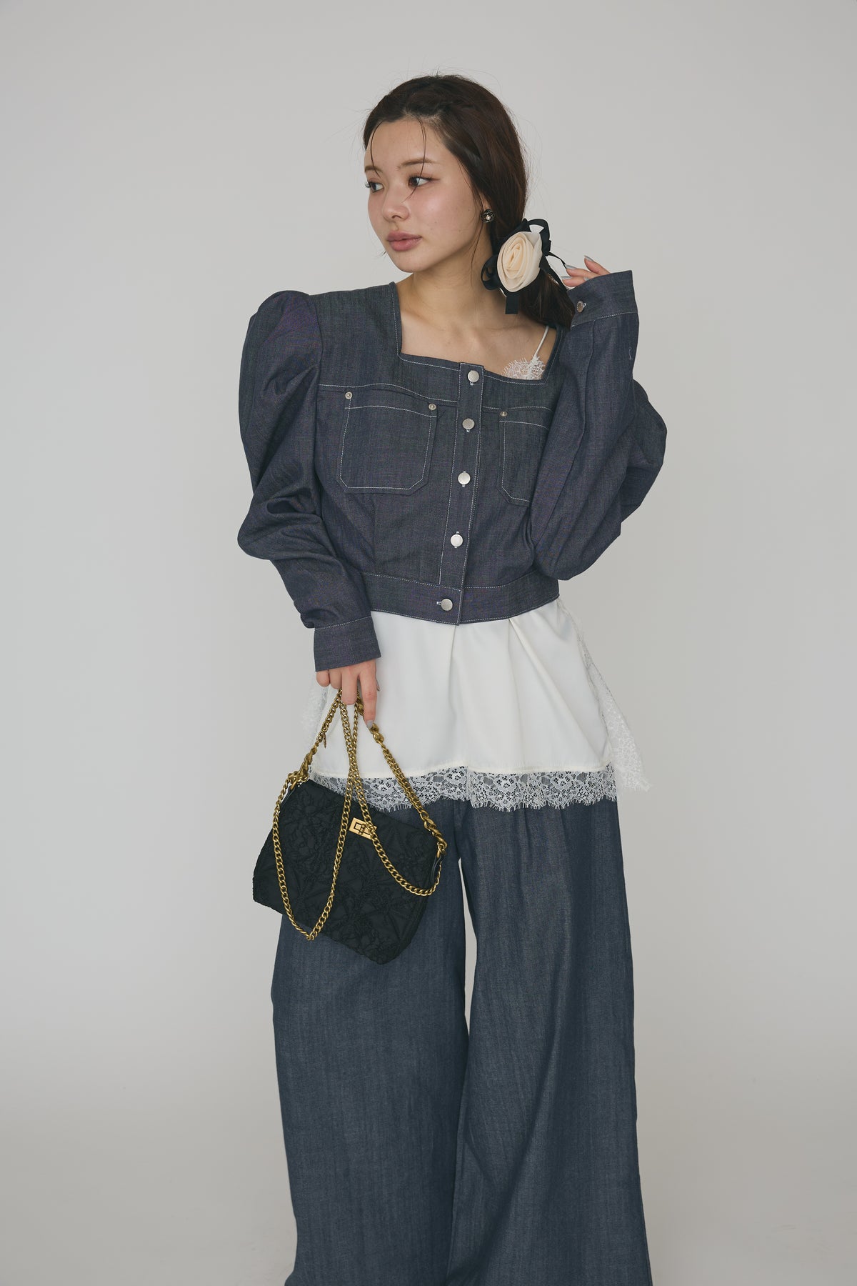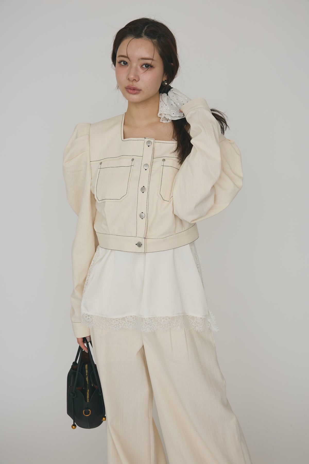 [予約]ステッチパフスリーブクロップドジャケットを含んだコーデセット商品を探す↓
