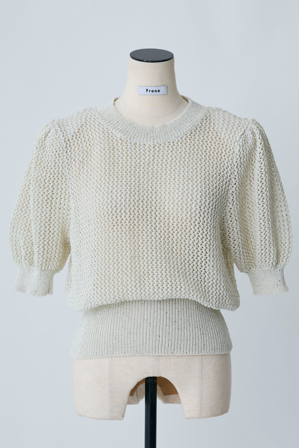 [予約]ラメ混パフスリーブハーフスリーブニット