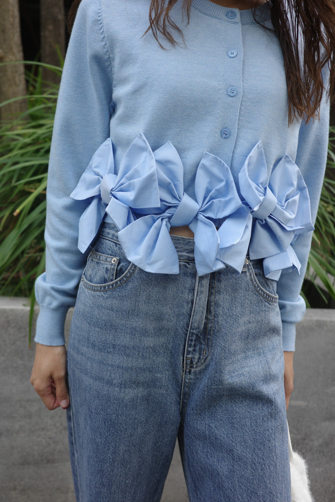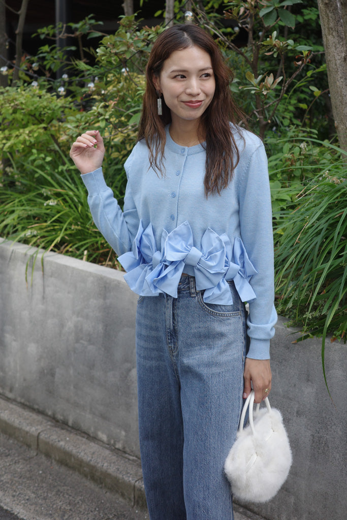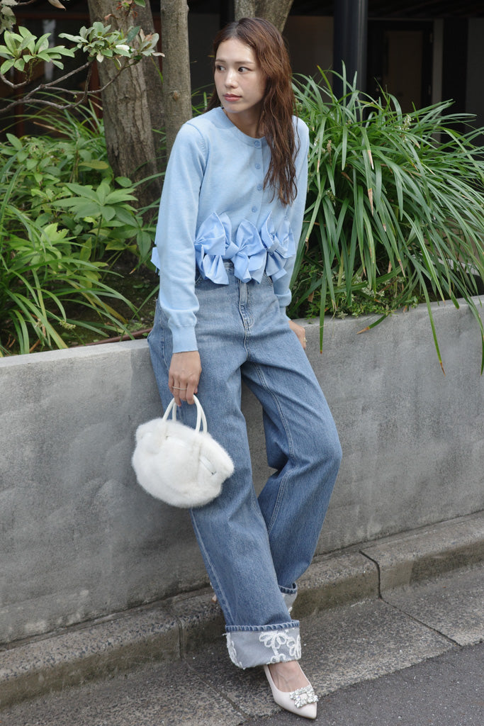 [予約/SET]ヘムリボンデザインショートカーデ+コードレースロールアップデニムパンツ(2set)
