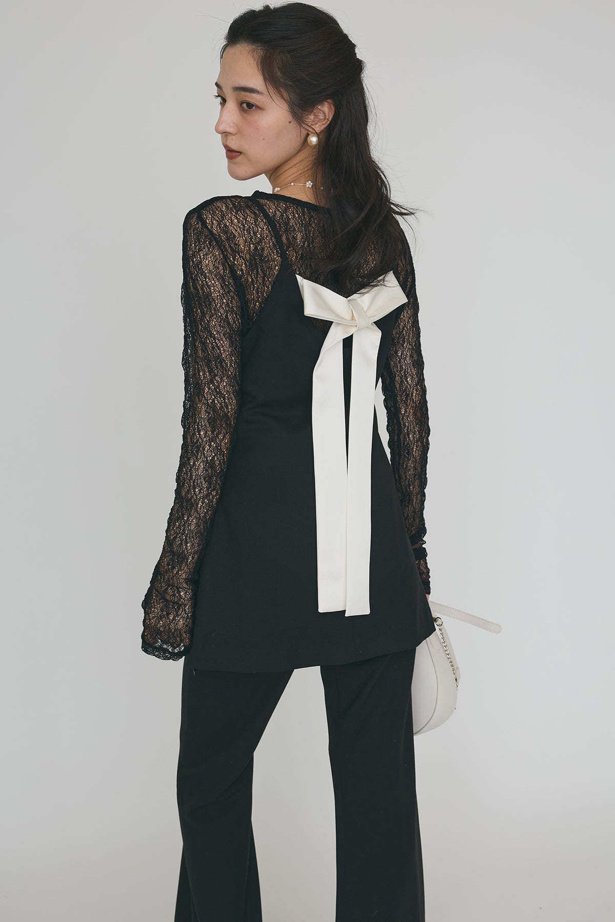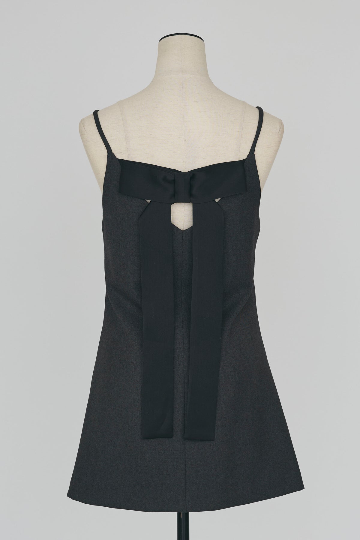 胸元を綺麗に見せるスクエアネックと、裾に向かって広がる美しいシルエットが魅力的なキャミチュニック。 背中には目を惹く大きめのリボンがあしらわれており、後ろ姿まで抜かりなく華やかに演出します。 ブラックはコントラストが映える白リボン、チャコールは落ち着いたトーンの黒リボン。 シアーインナーやシンプルなカットソーに重ねて、細身のボトムスを合わせるだけでこなれたスタイルが完成します。