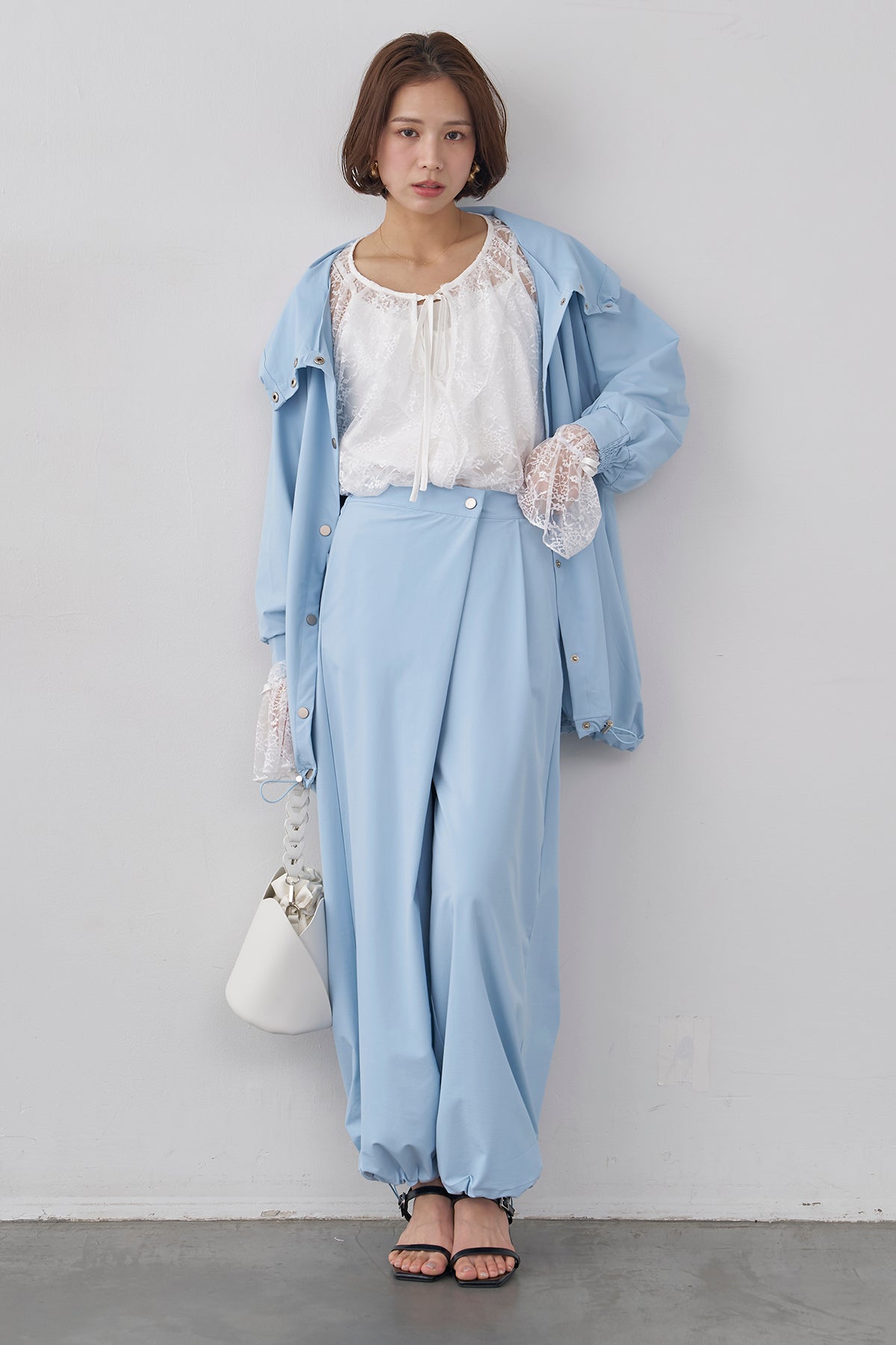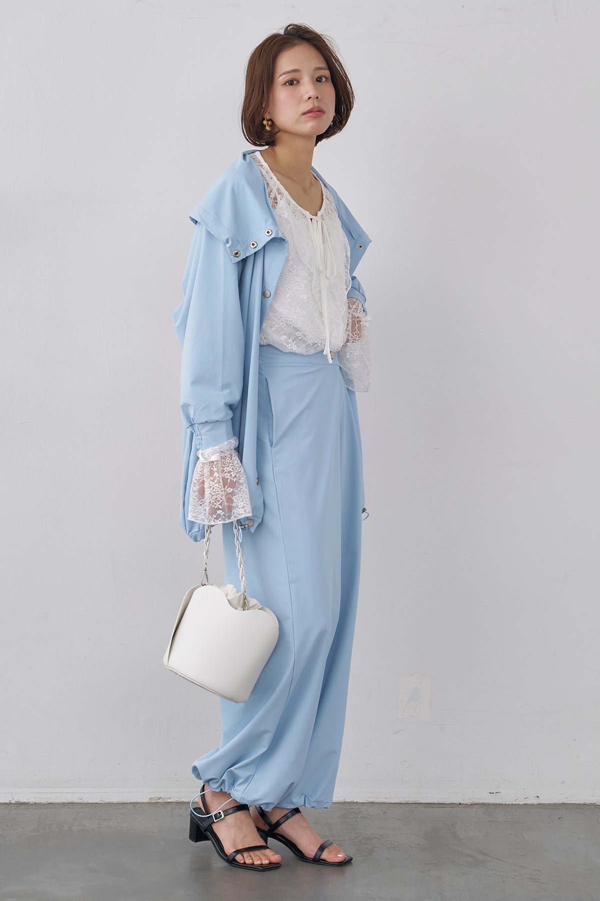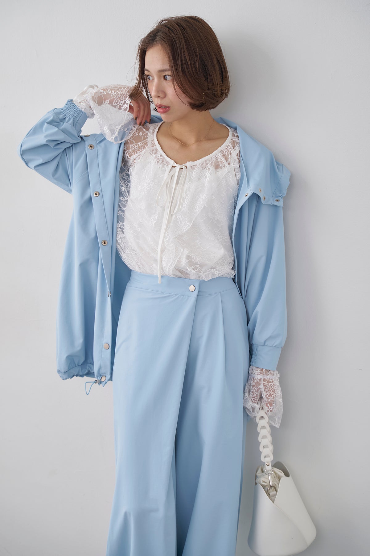 [予約/SET]ミニフリル繊細レースブラウス+撥水スタンドカラー2wayドロストブルゾン+撥水ドロストヘム2wayパンツ(3set)