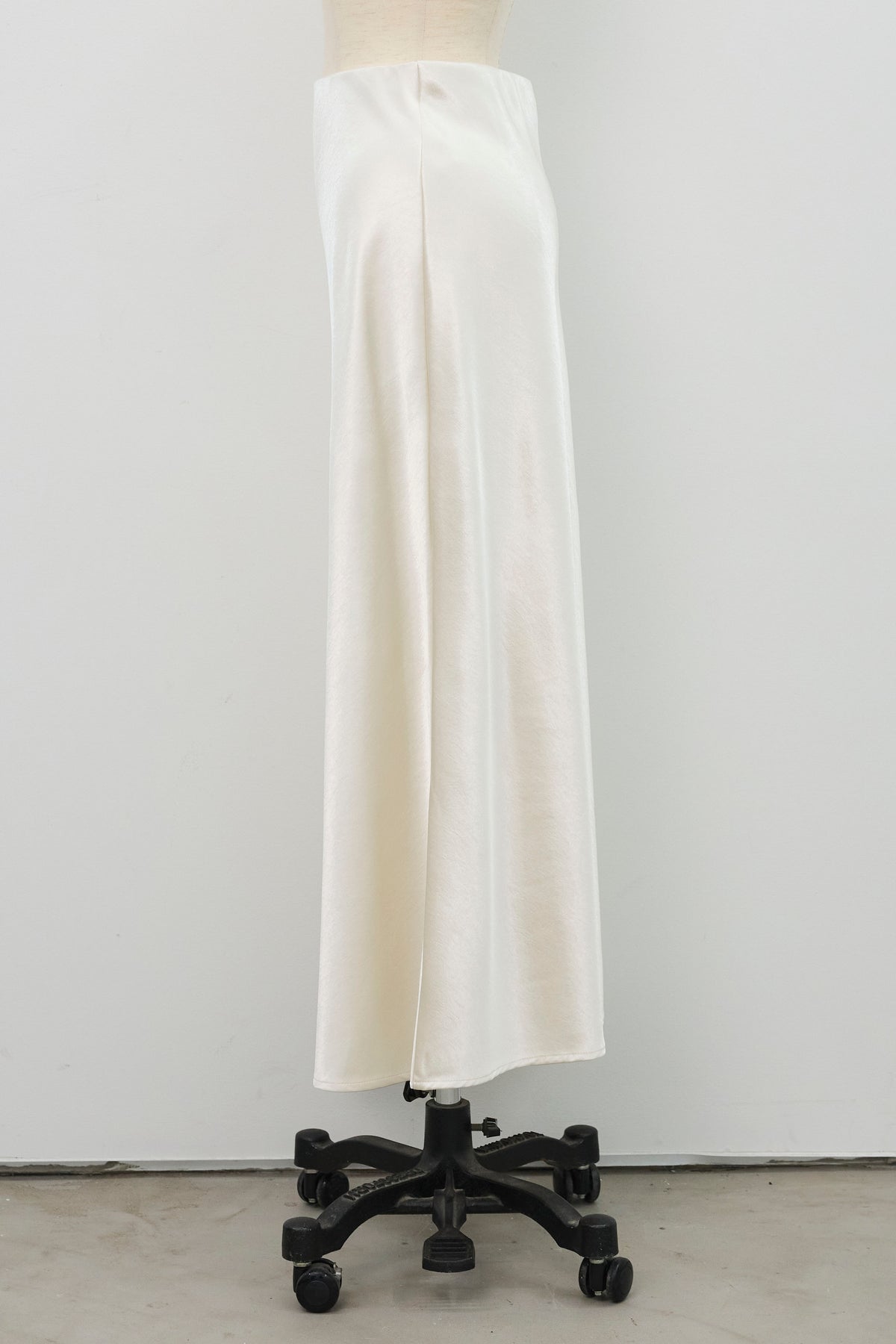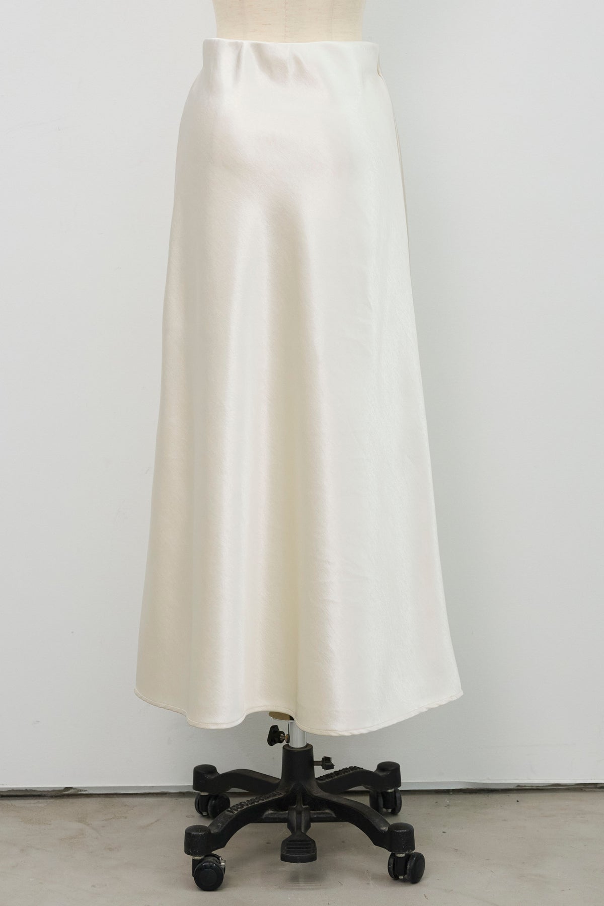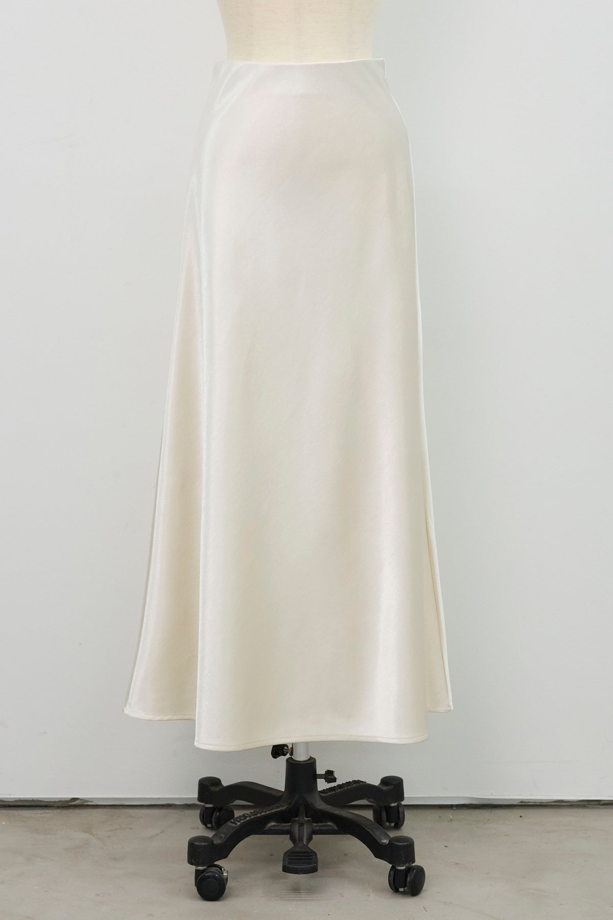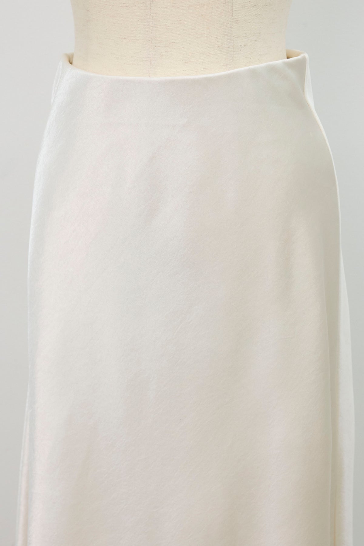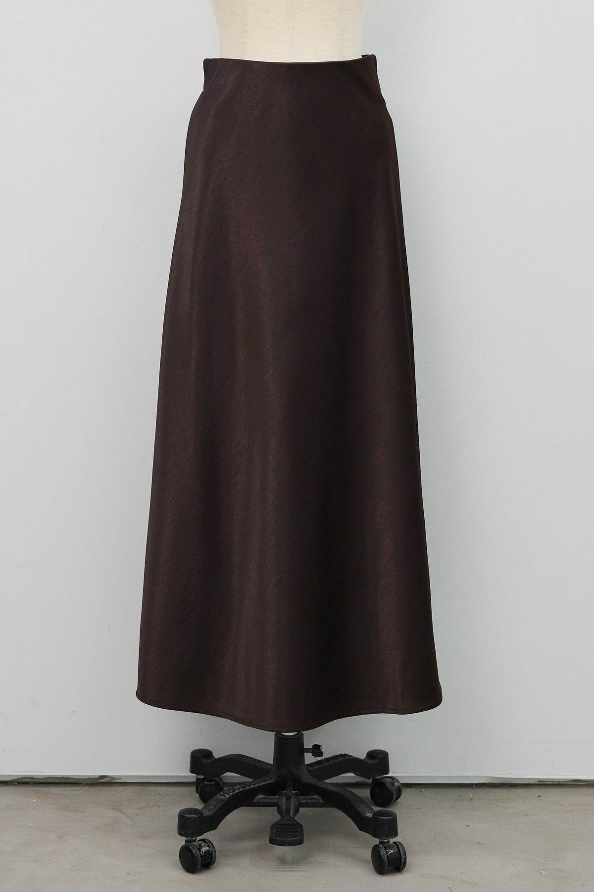 光沢感のあるサテン生地が上品に揺れるセミフレアスカート。シンプルなデザインながら、滑らかな落ち感と美しいシルエットで大人フェミニンな印象に。トップスを選ばず、オンオフ問わず着回せる万能アイテムです。