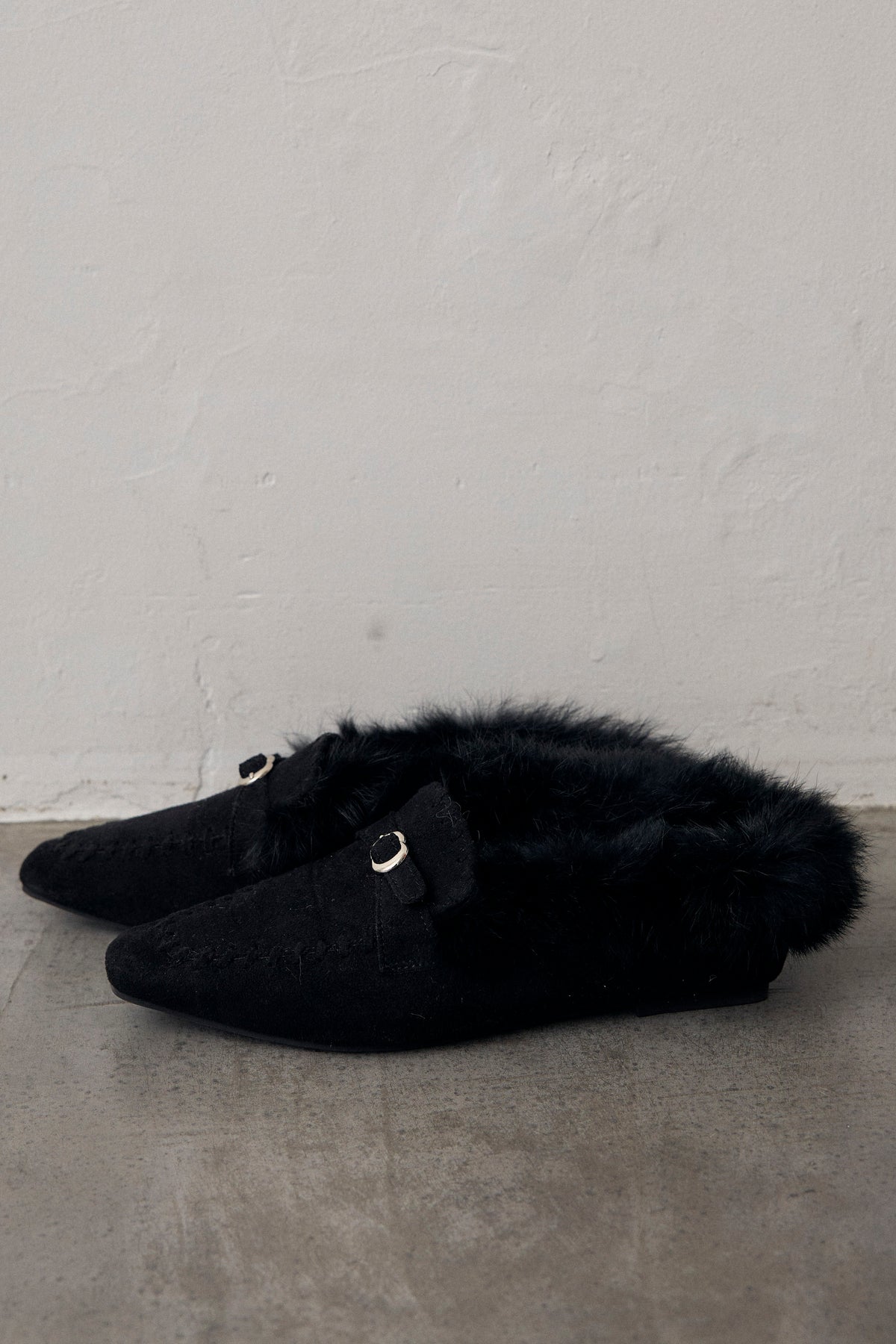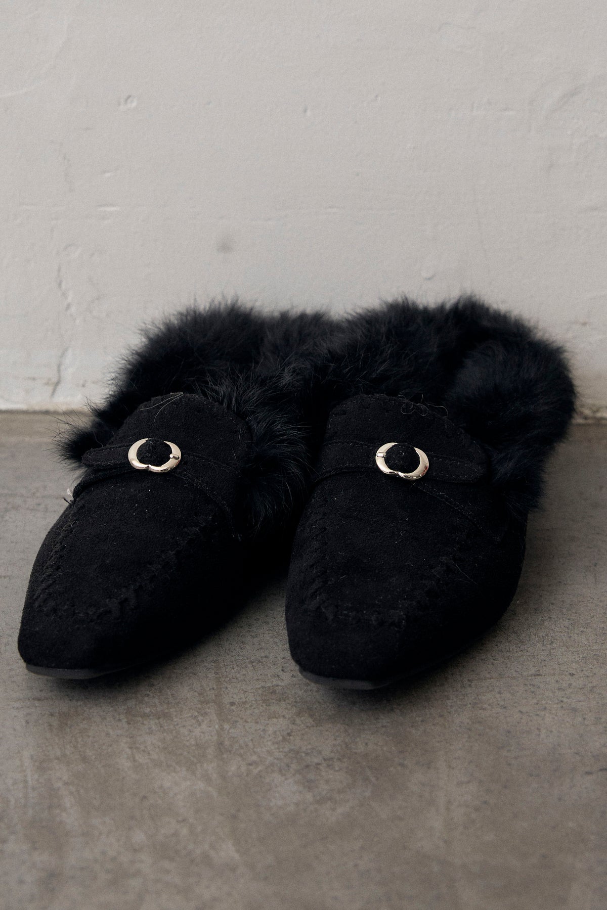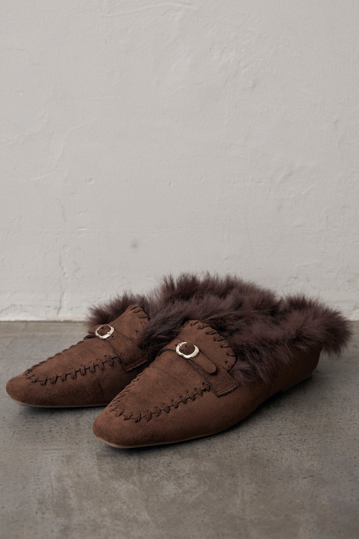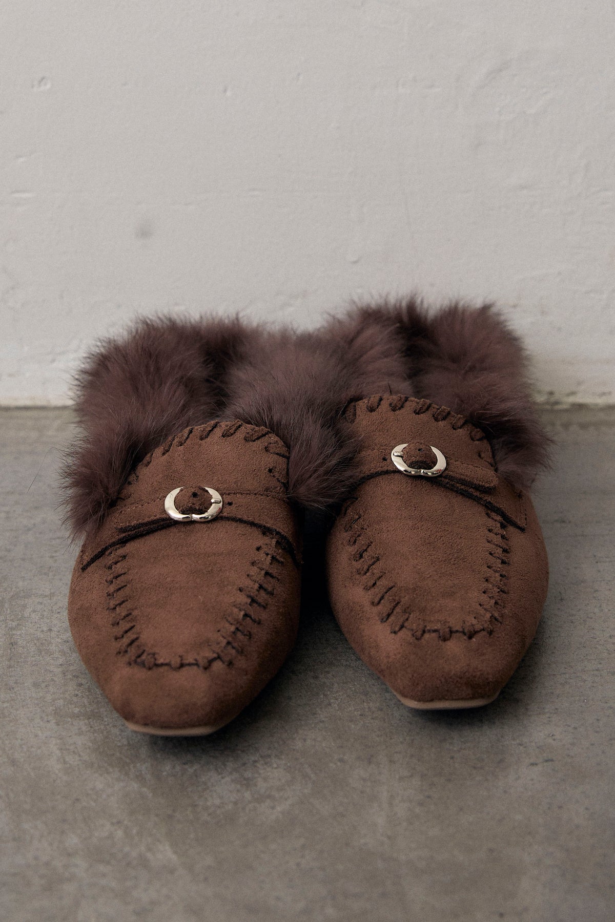 スエード×ファーのコンビが季節感のあるモカシンローファー。甲のビット金具が光を拾い、ほっこりしすぎない大人の抜けをつくります。履き口のステッチとファーのボリュームで足元にほどよい重さをプラス。ワイドパンツにもスカートにも、気負わず合わせやすい一足です。
