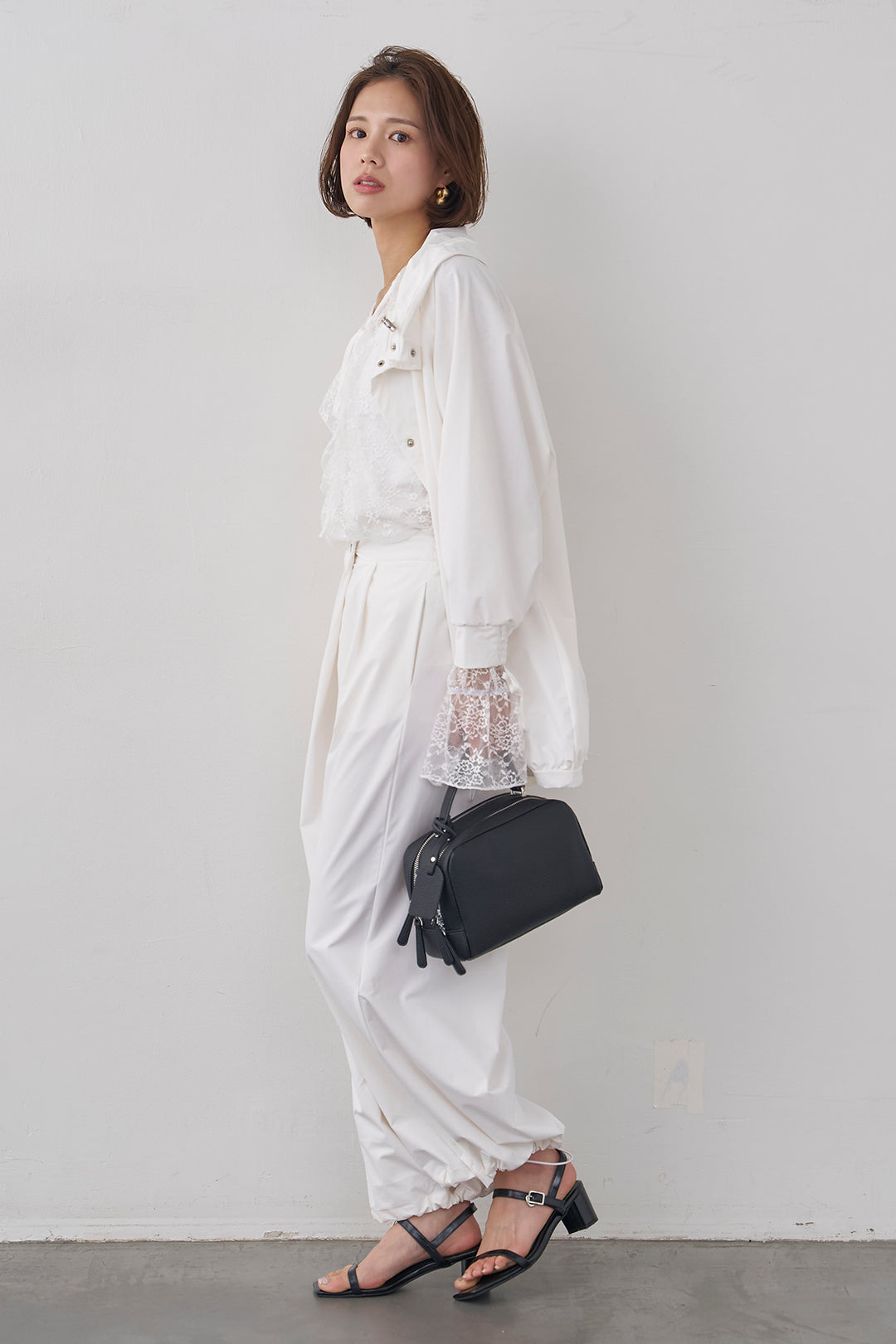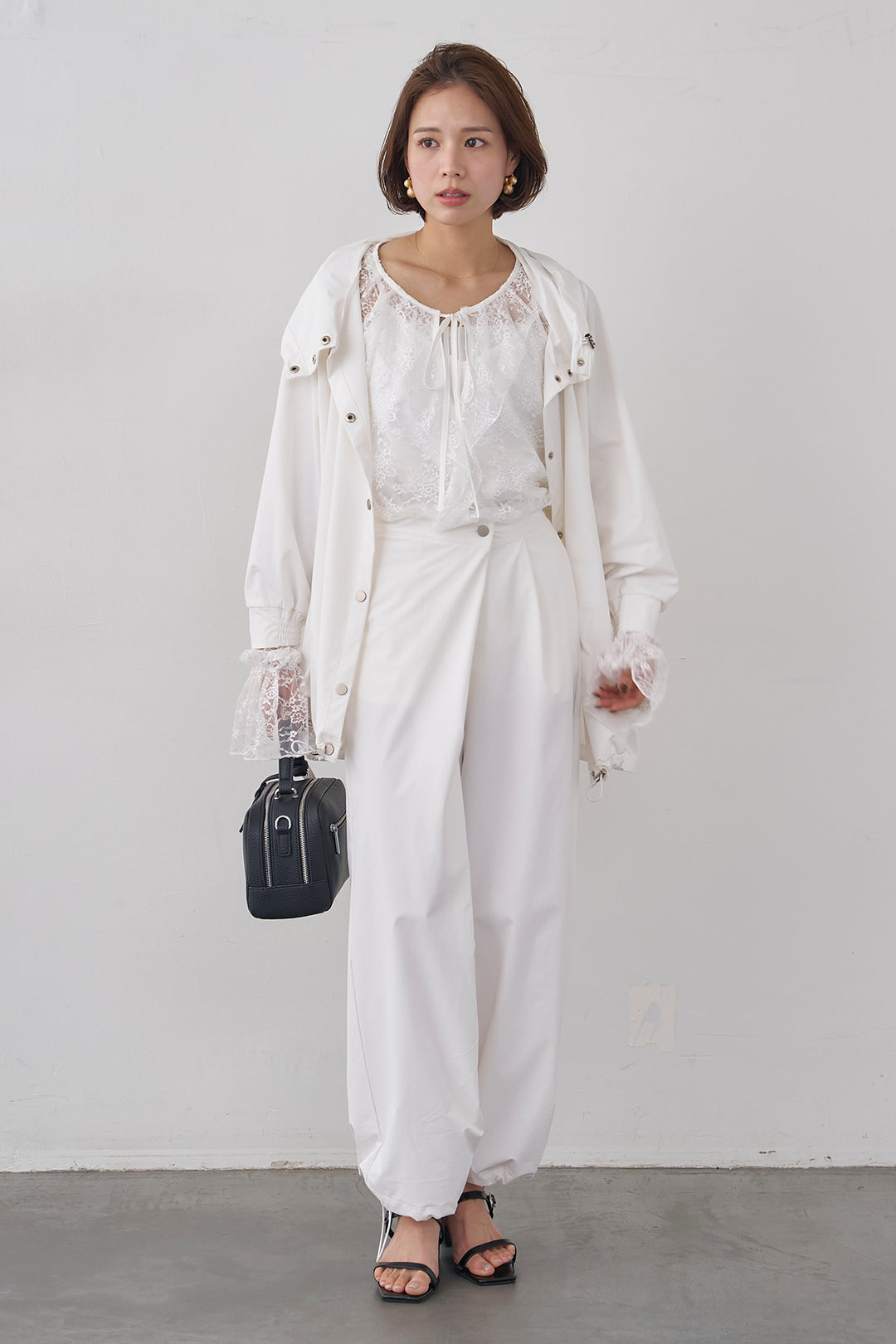 [予約/SET]ミニフリル繊細レースブラウス+撥水スタンドカラー2wayドロストブルゾン+撥水ドロストヘム2wayパンツ(3set)