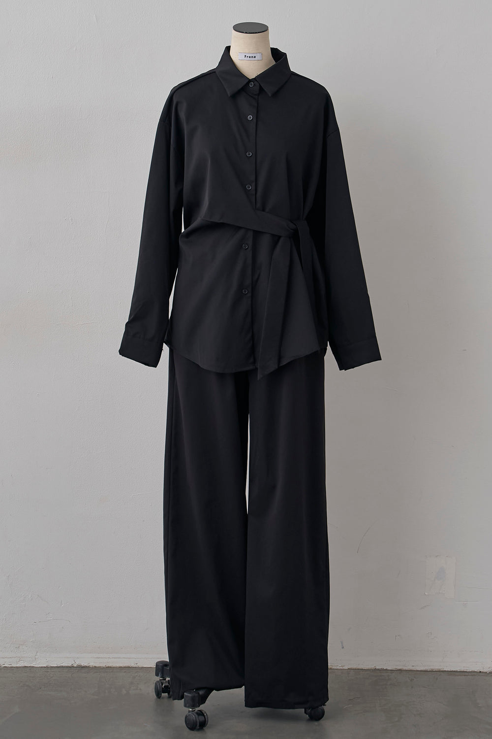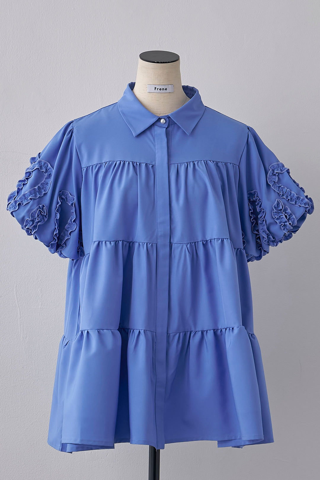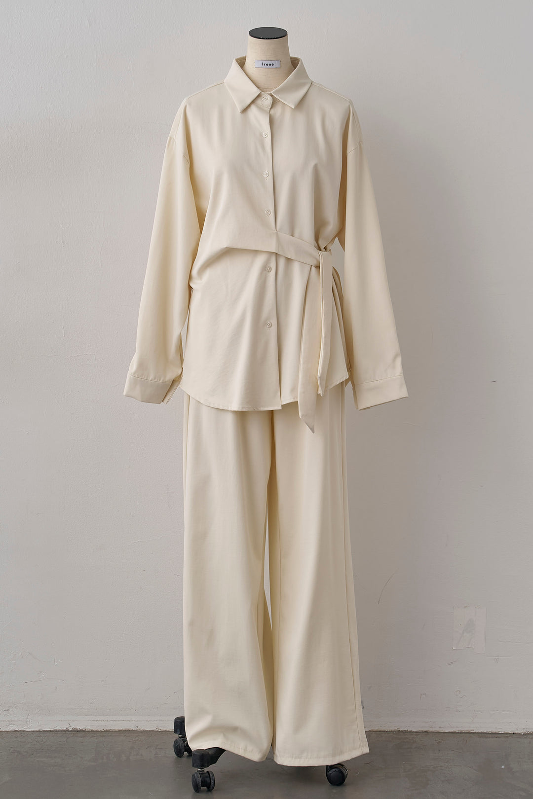 [予約/SET]フリルウェーブスリーブティアードブラウス+フラワー刺繍ツイルストレートパンツ(2set)