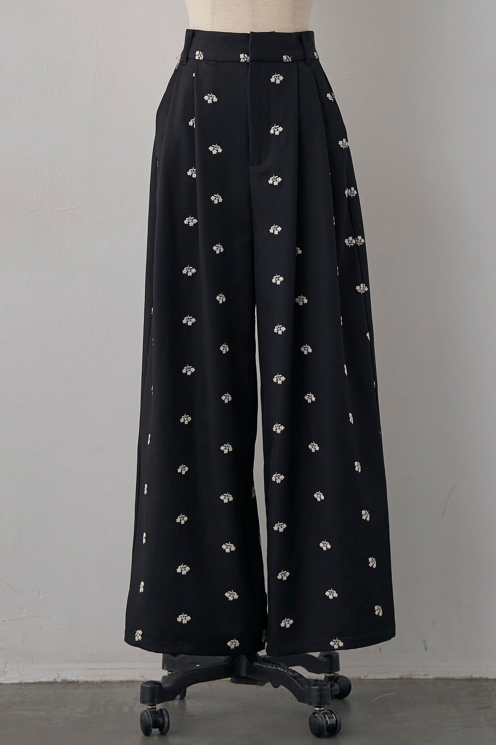 [予約/SET]フラワー刺繍ツイルテーラードジャケット+フラワー刺繍ツイルストレートパンツ(2set)