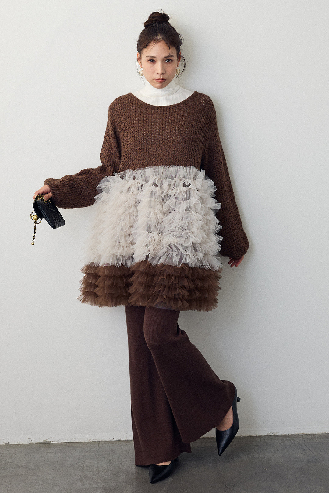 [予約/SET]ゴールドボタンラメシャギーニット+バックリボンストレートパンツ(2set)