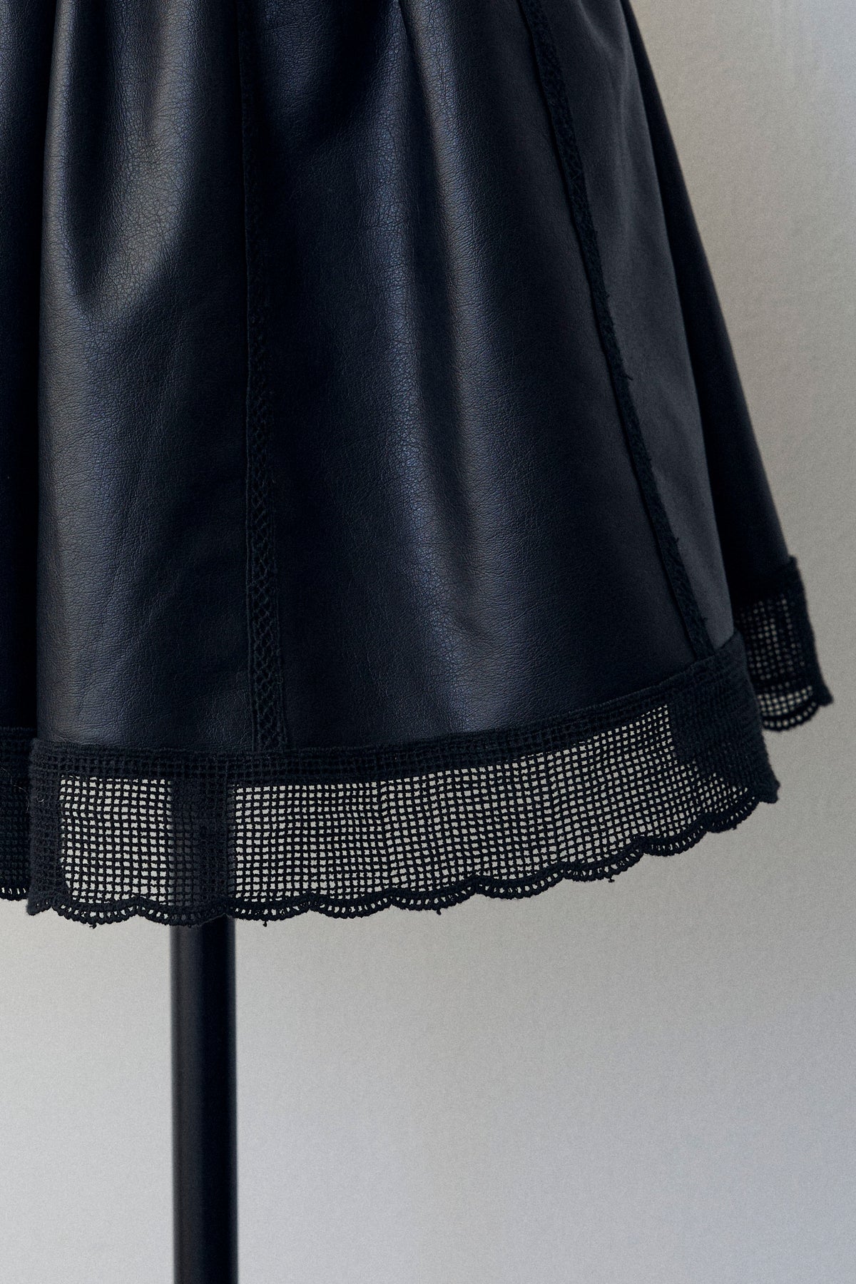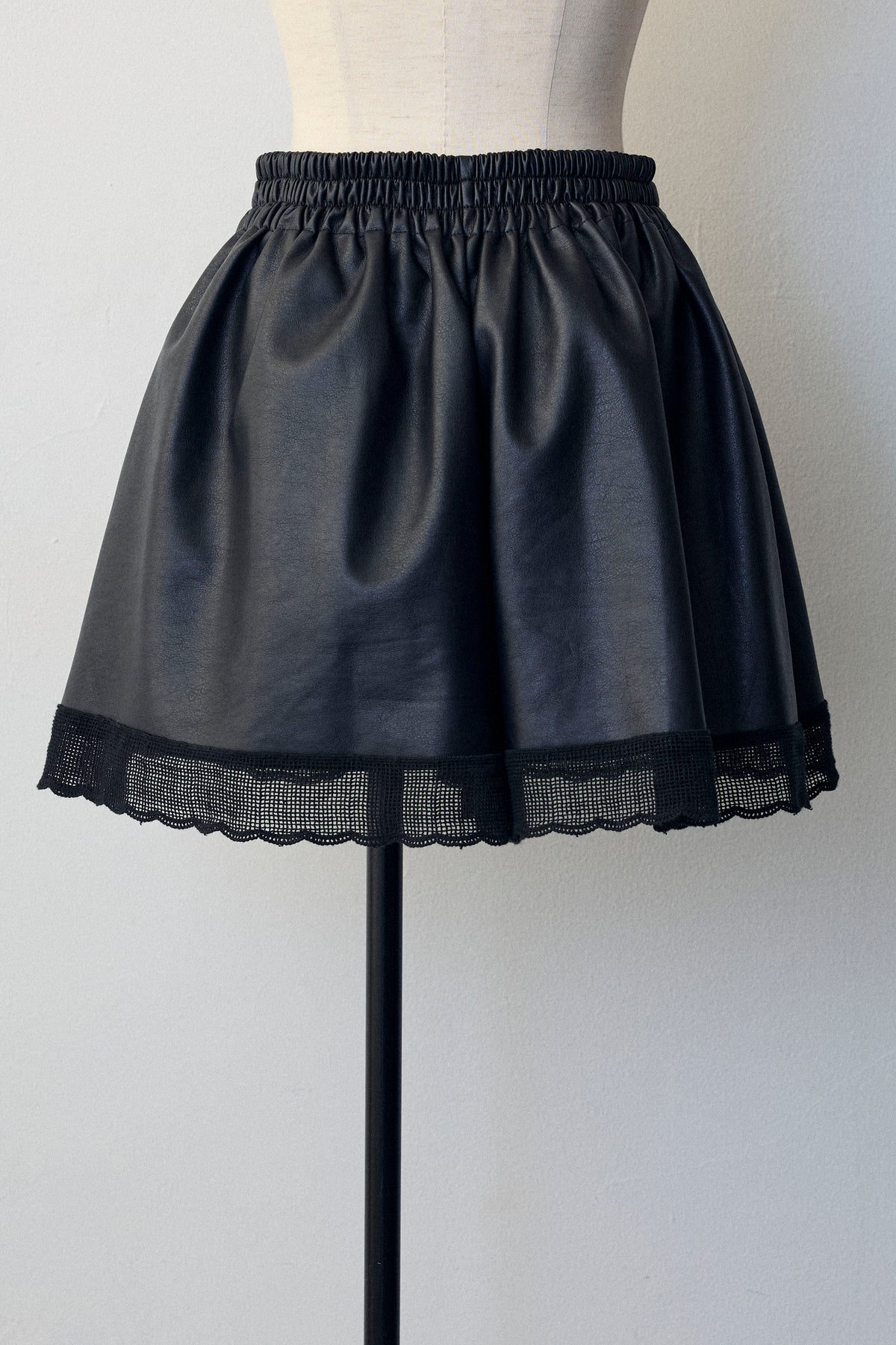 レザーの質感を感じるフレアショートパンツ。程よい光沢と柔らかな素材感で、カジュアルなスタイリングにモードな雰囲気をプラスします。ウエスト周りはすっきり見えるデザインに仕上げ、裾に向かって広がるフレアシルエットが脚のラインをきれいに見せてくれます。軽やかなショート丈で、季節の装いに合わせやすく、さまざまなトップスと相性の良い一着です。