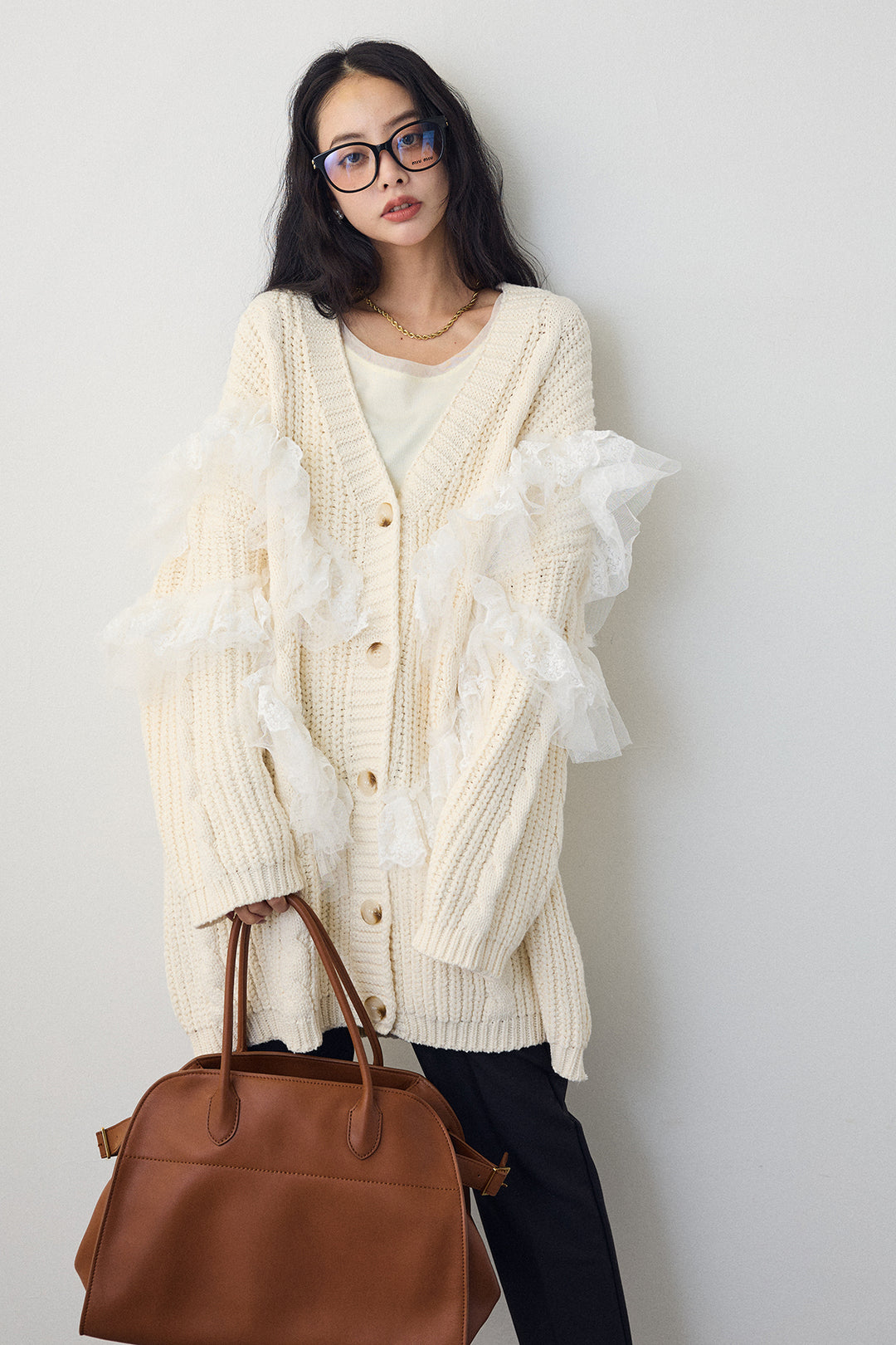 [予約]ラッフルレースドッキングニットBIGカーデ