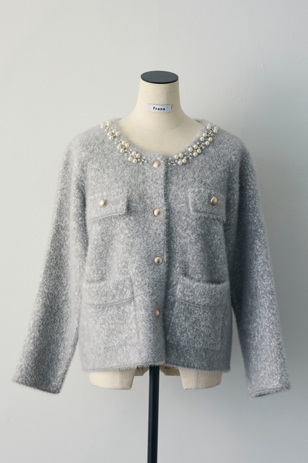 [予約]パールビジューネックニットジャケット