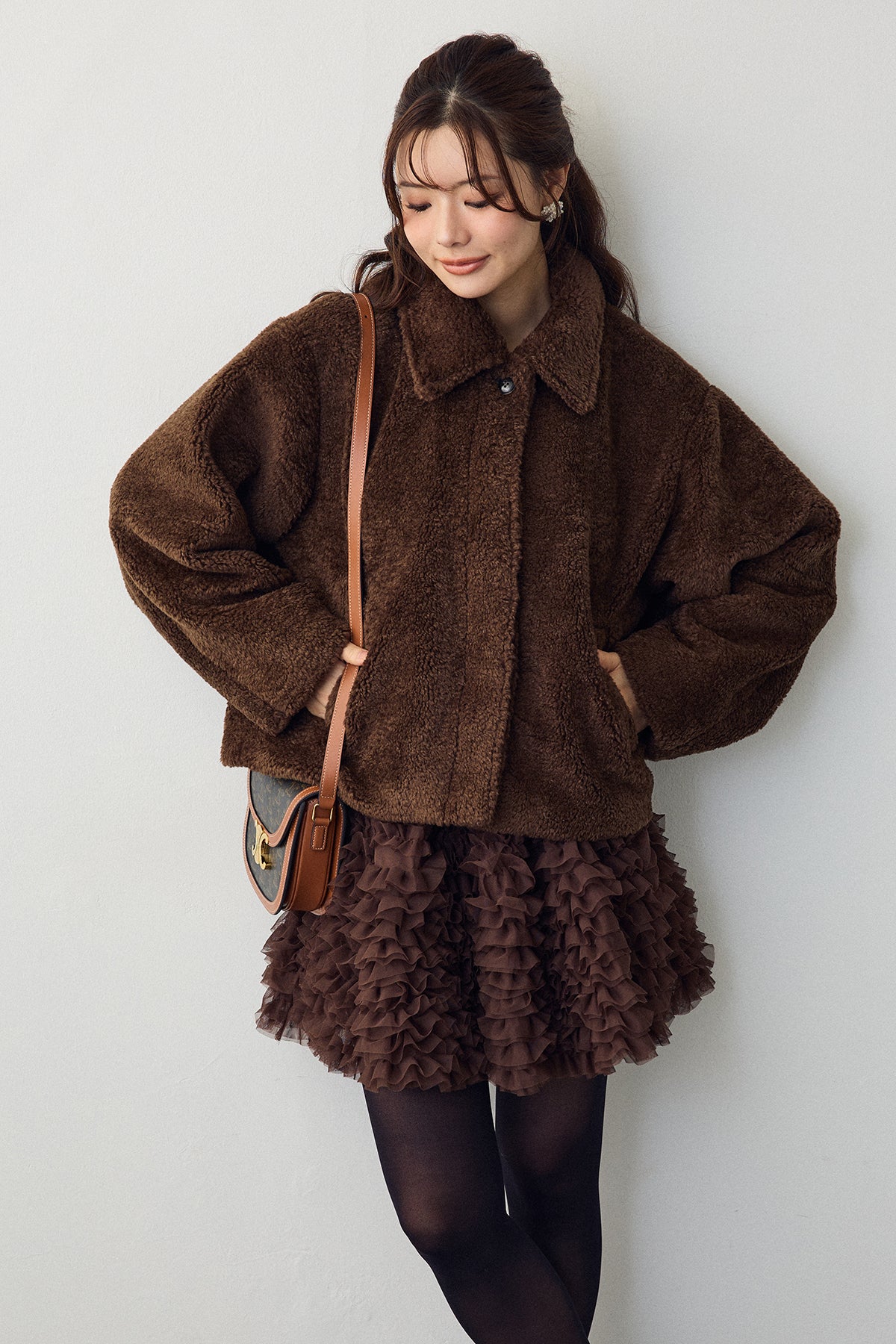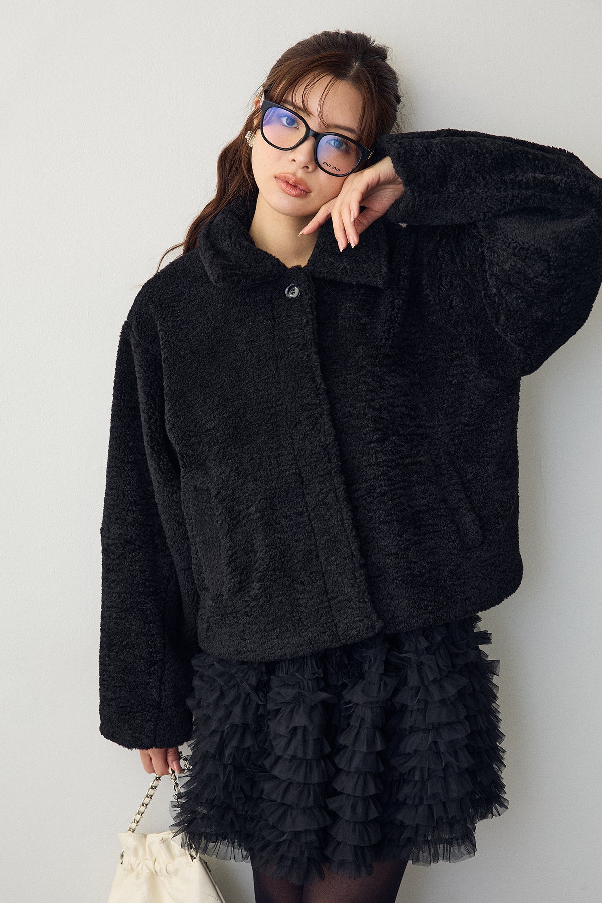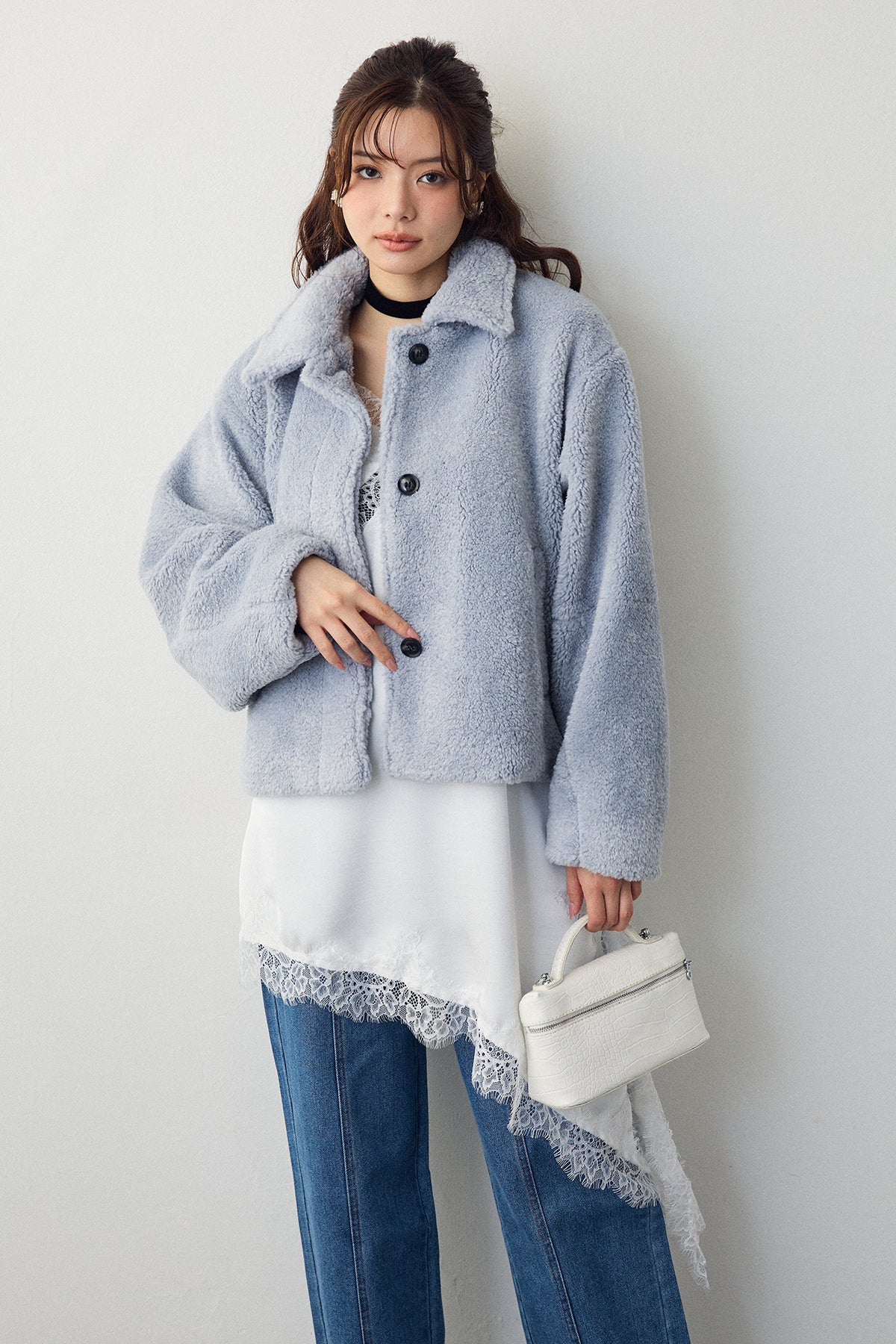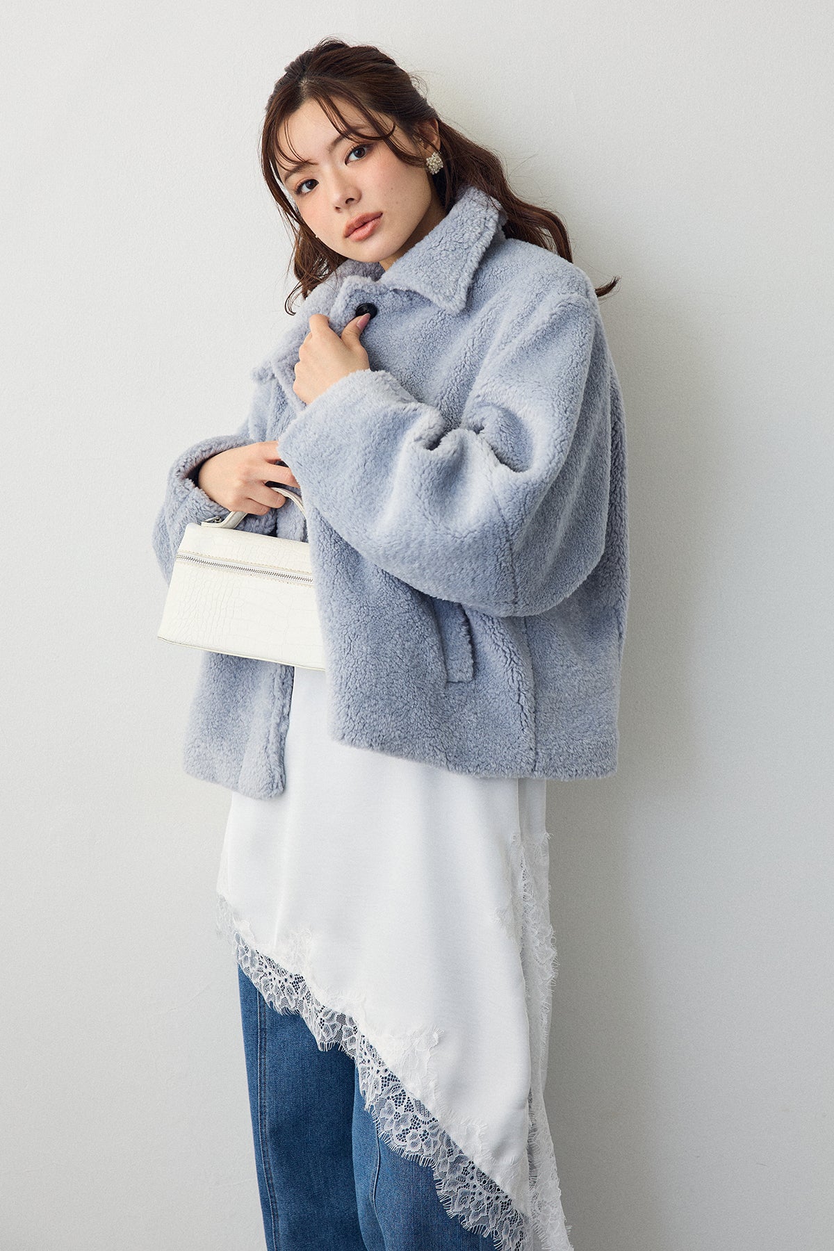 ふんわりボアの柔らかさと、丸みのあるシルエットが愛らしいジャケット。 ゆとりのあるコクーンスリーブが、着るだけでこなれた雰囲気に仕上げてくれます。 ショート丈なので、ミニボトムやワンピースとも好バランス。 軽やかな着心地でさっと羽織れて、秋冬のお出かけスタイルにぴったりの1枚です。