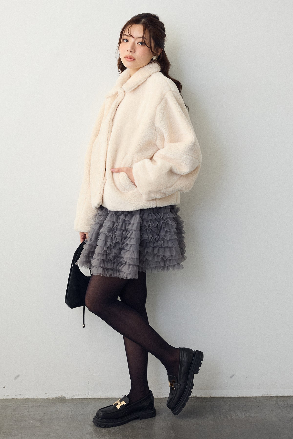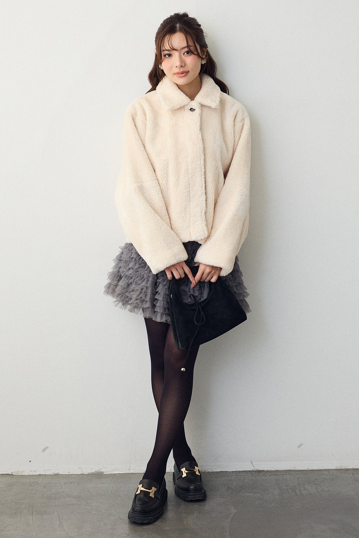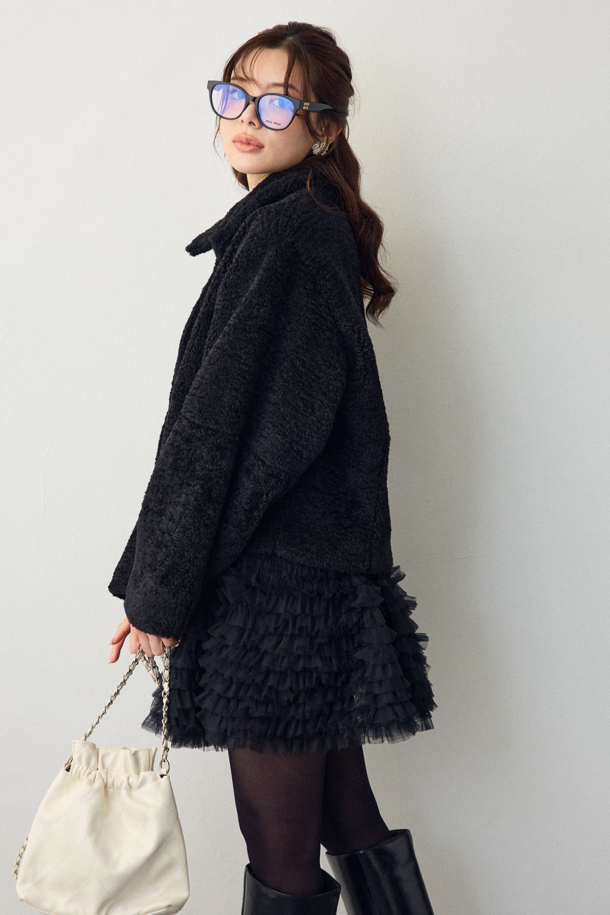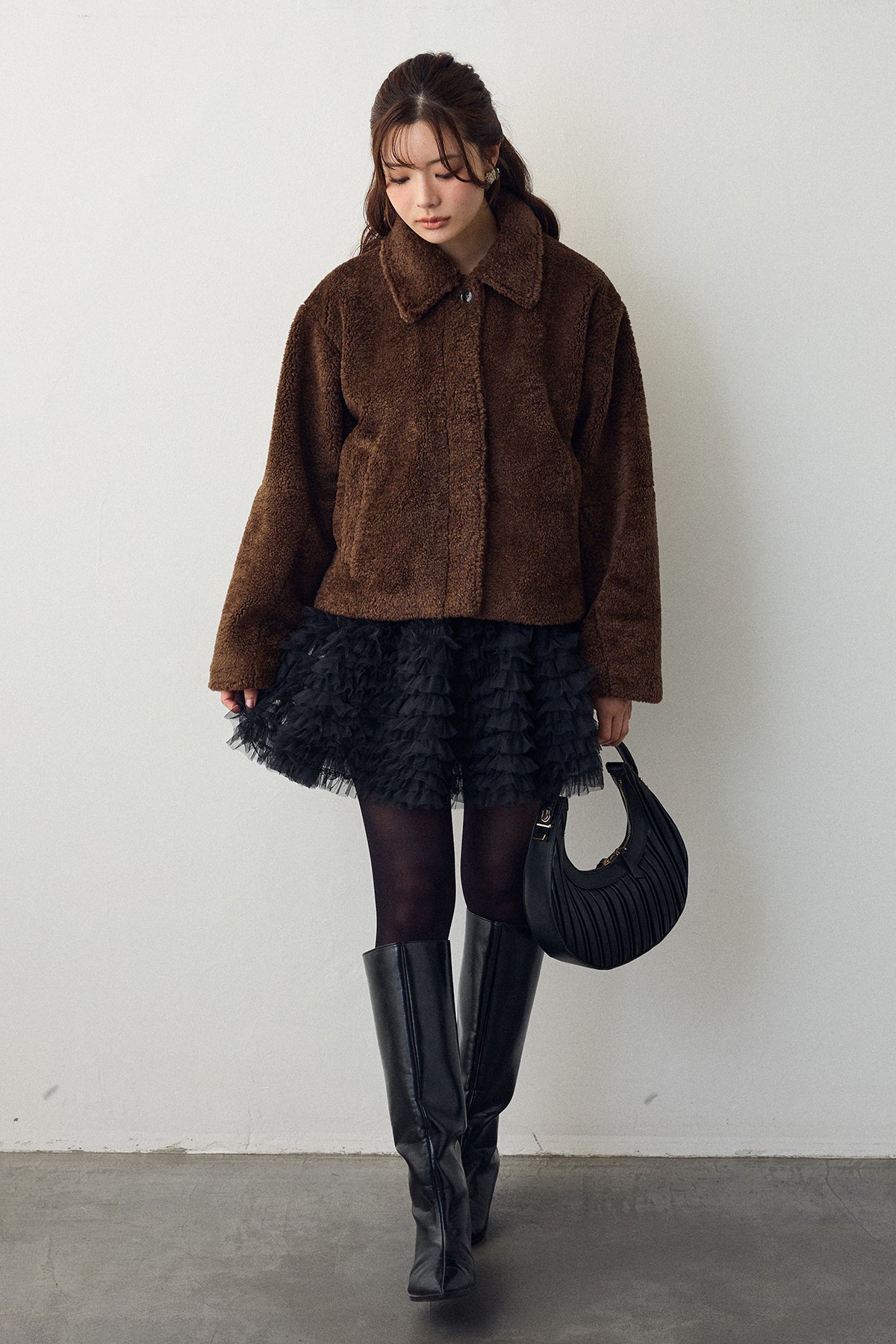 ふんわりボアの柔らかさと、丸みのあるシルエットが愛らしいジャケット。 ゆとりのあるコクーンスリーブが、着るだけでこなれた雰囲気に仕上げてくれます。 ショート丈なので、ミニボトムやワンピースとも好バランス。 軽やかな着心地でさっと羽織れて、秋冬のお出かけスタイルにぴったりの1枚です。
